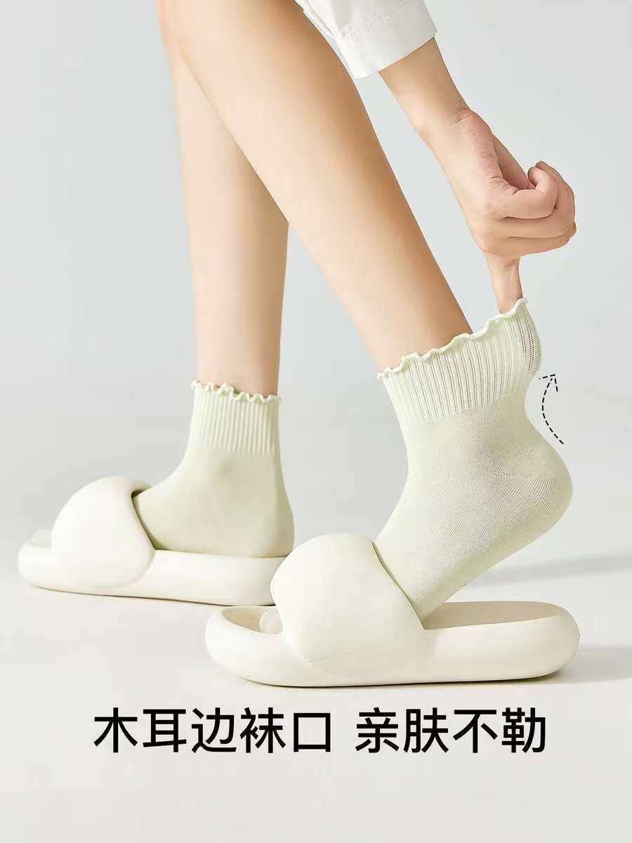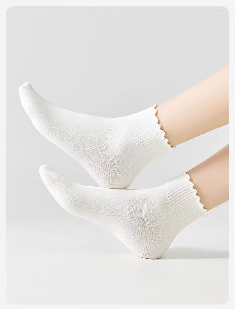 Calcetines con Borde de Volante para Mujer Calcetines de Algodón al Tobillo Primavera Verano Delgados Transpirables Absorbentes del Sudor Calcetines a Media Pantorrilla Combinan con Zapatos de Cuero Pequeños Calcetines de Algodón Nuevo