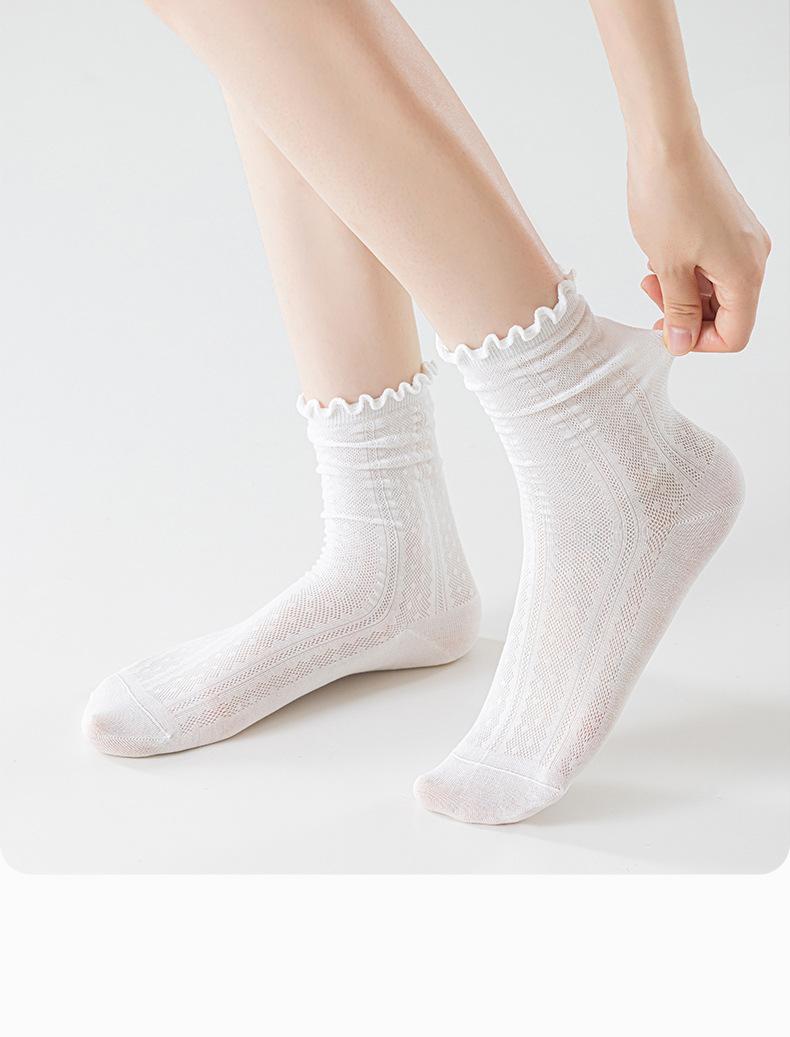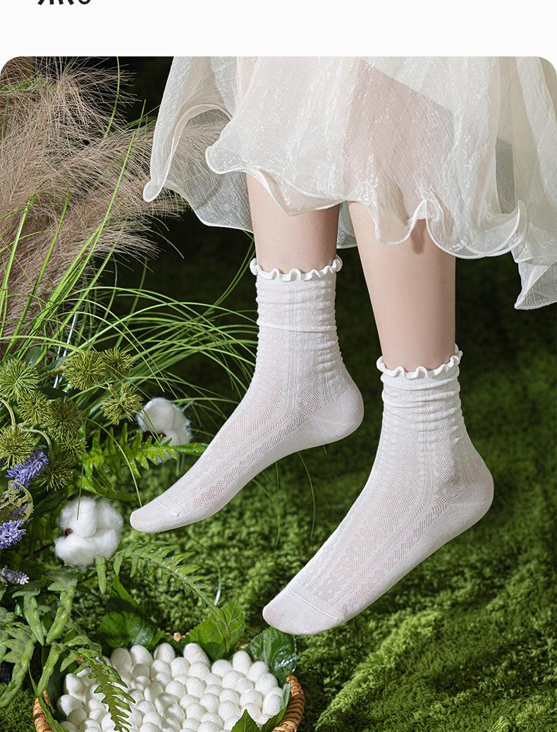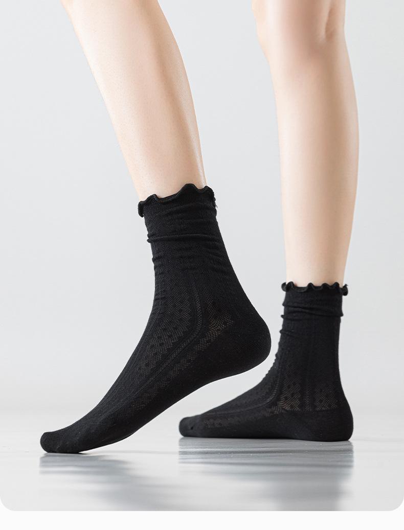 Calcetines de Seda de Morera Sin Costuras para Mujer al Mayoreo con Malla, Absorbentes de Sudor, Calcetines Finos de Verano hasta Media Pantorrilla con Bordes Rizados