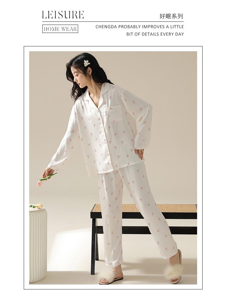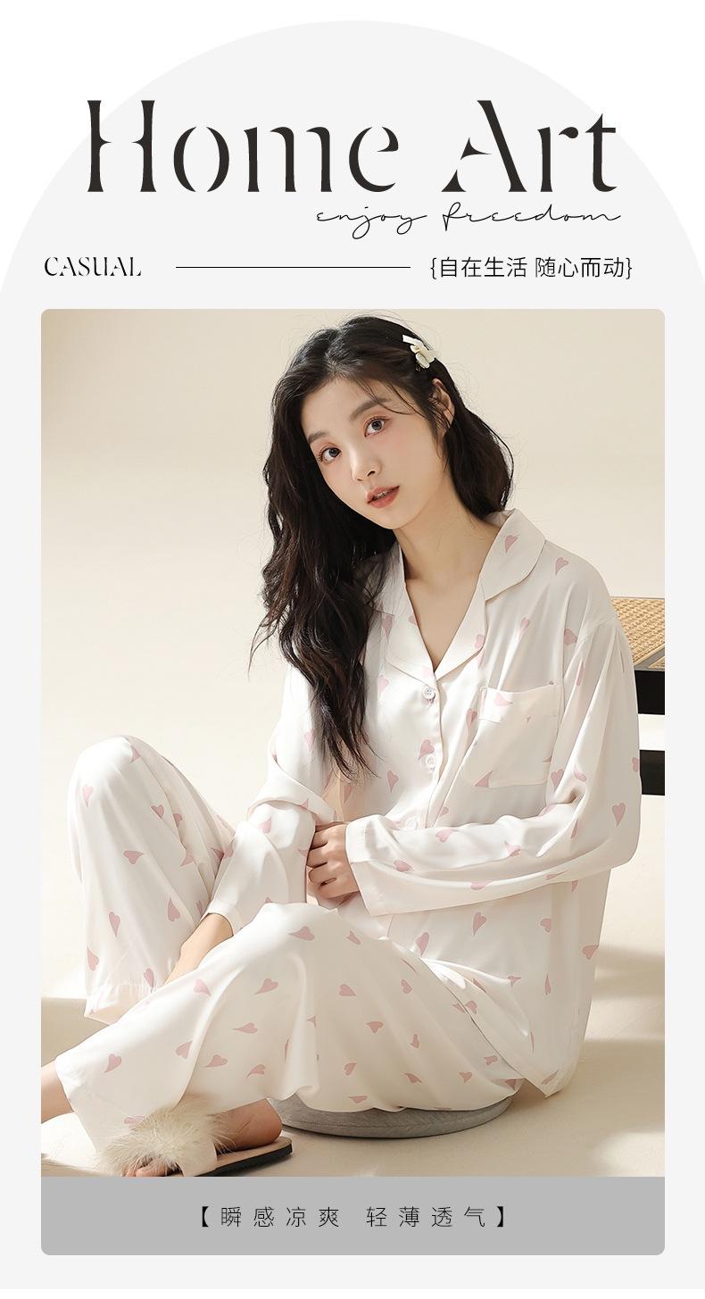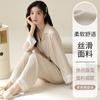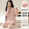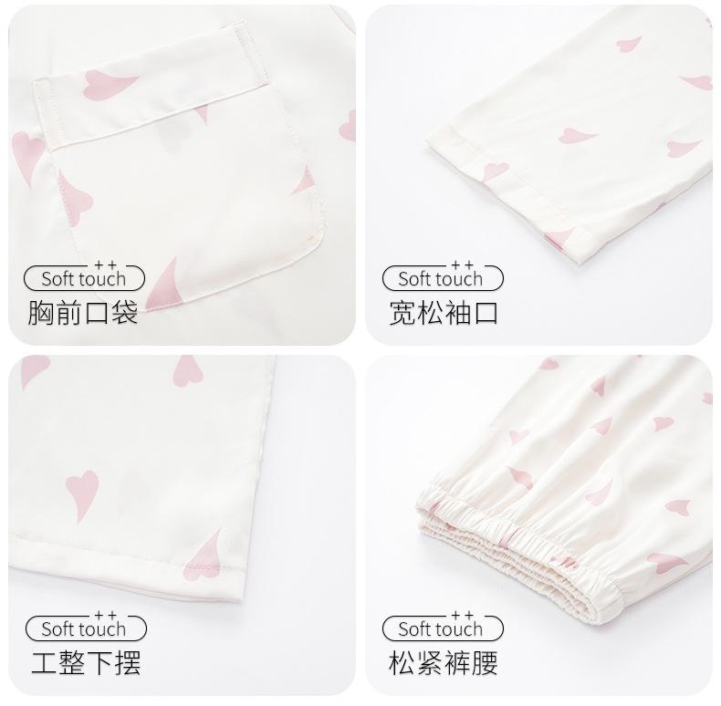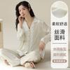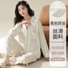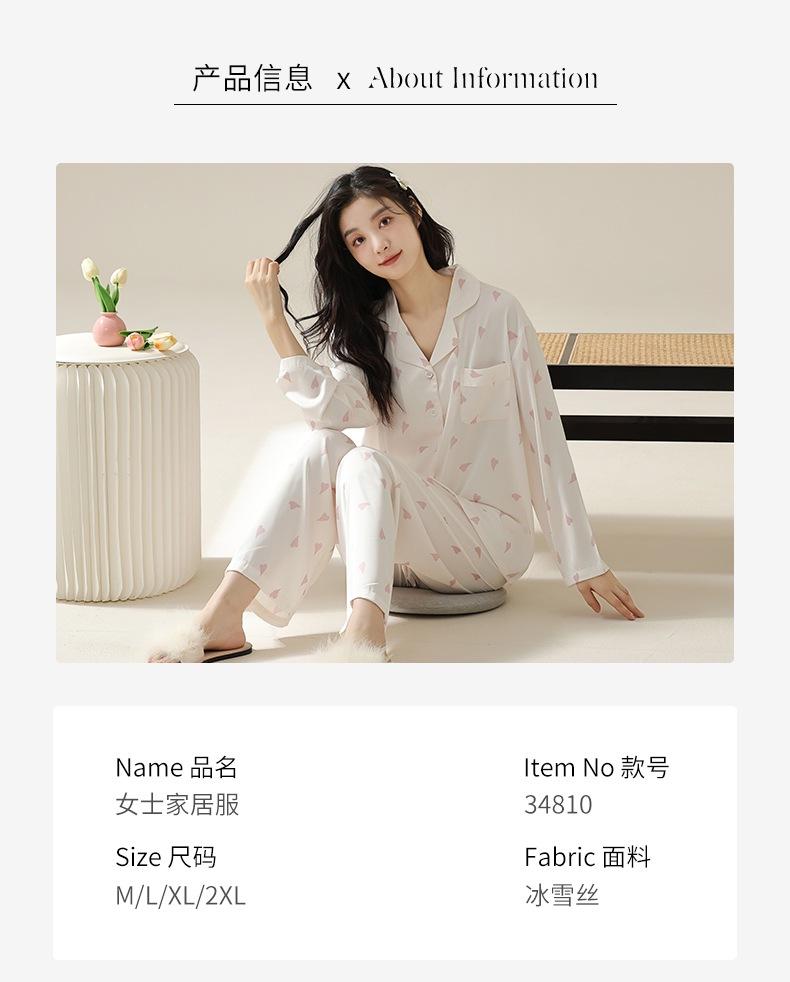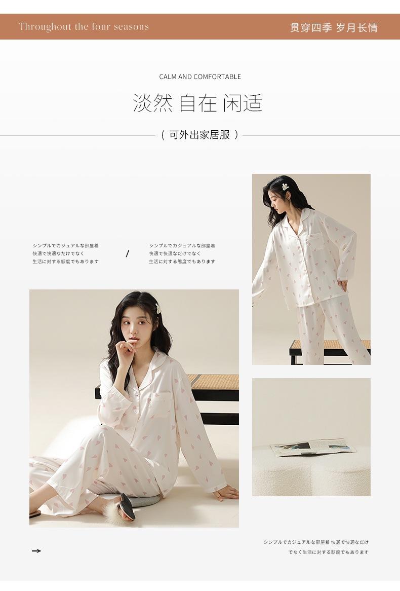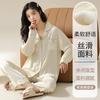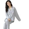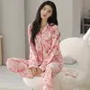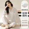 Cárdigan sólido al por mayor de punto otoño y primavera de seda de hielo, dulce de dibujos animados, manga larga, conjunto de ropa para el hogar, pijamas para mujer, imitación
