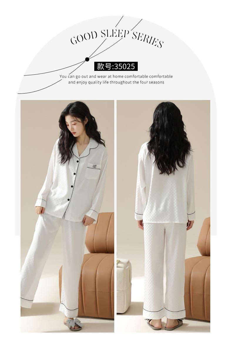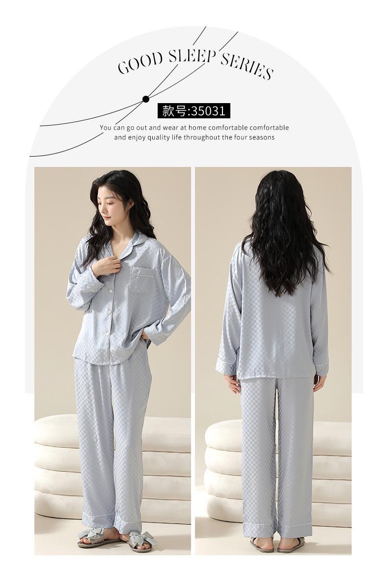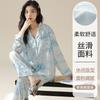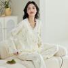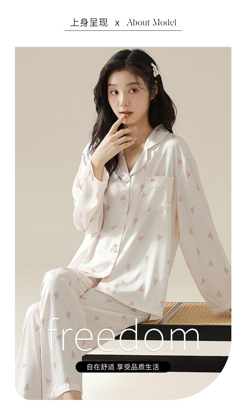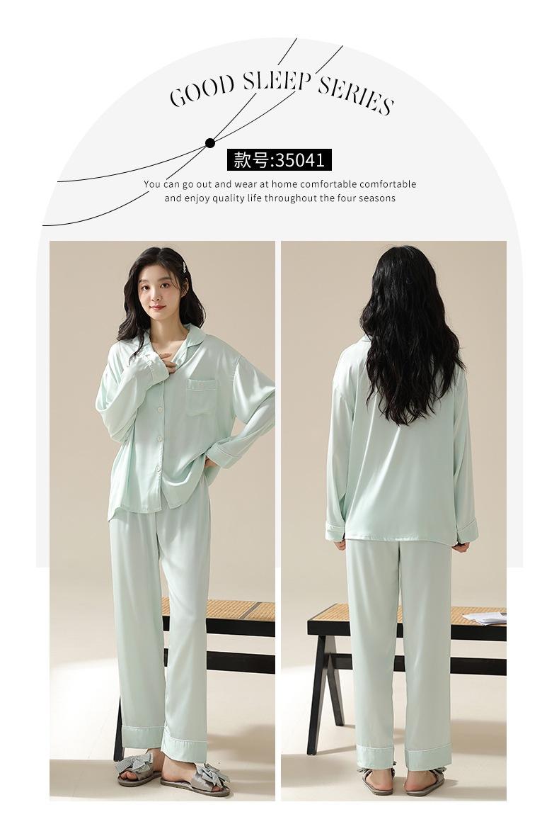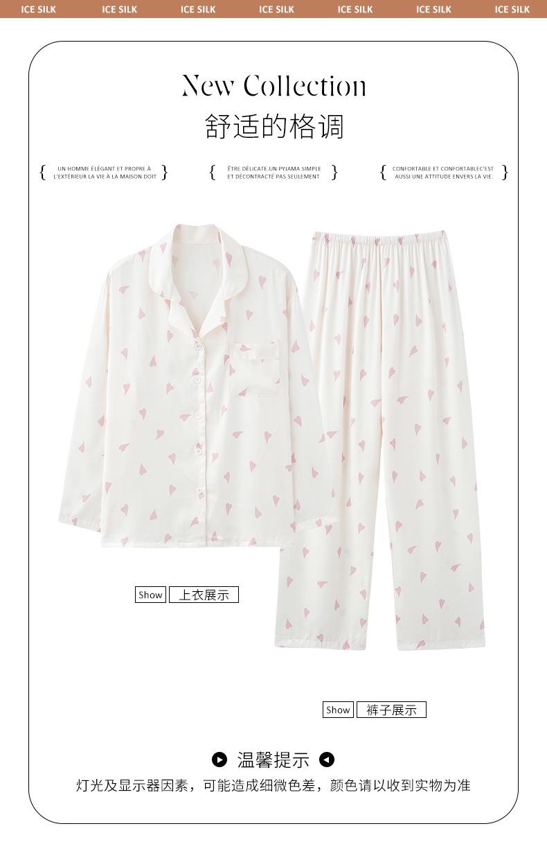 Cárdigan sólido al por mayor de punto otoño y primavera de seda de hielo, dulce de dibujos animados, manga larga, conjunto de ropa para el hogar, pijamas para mujer, imitación