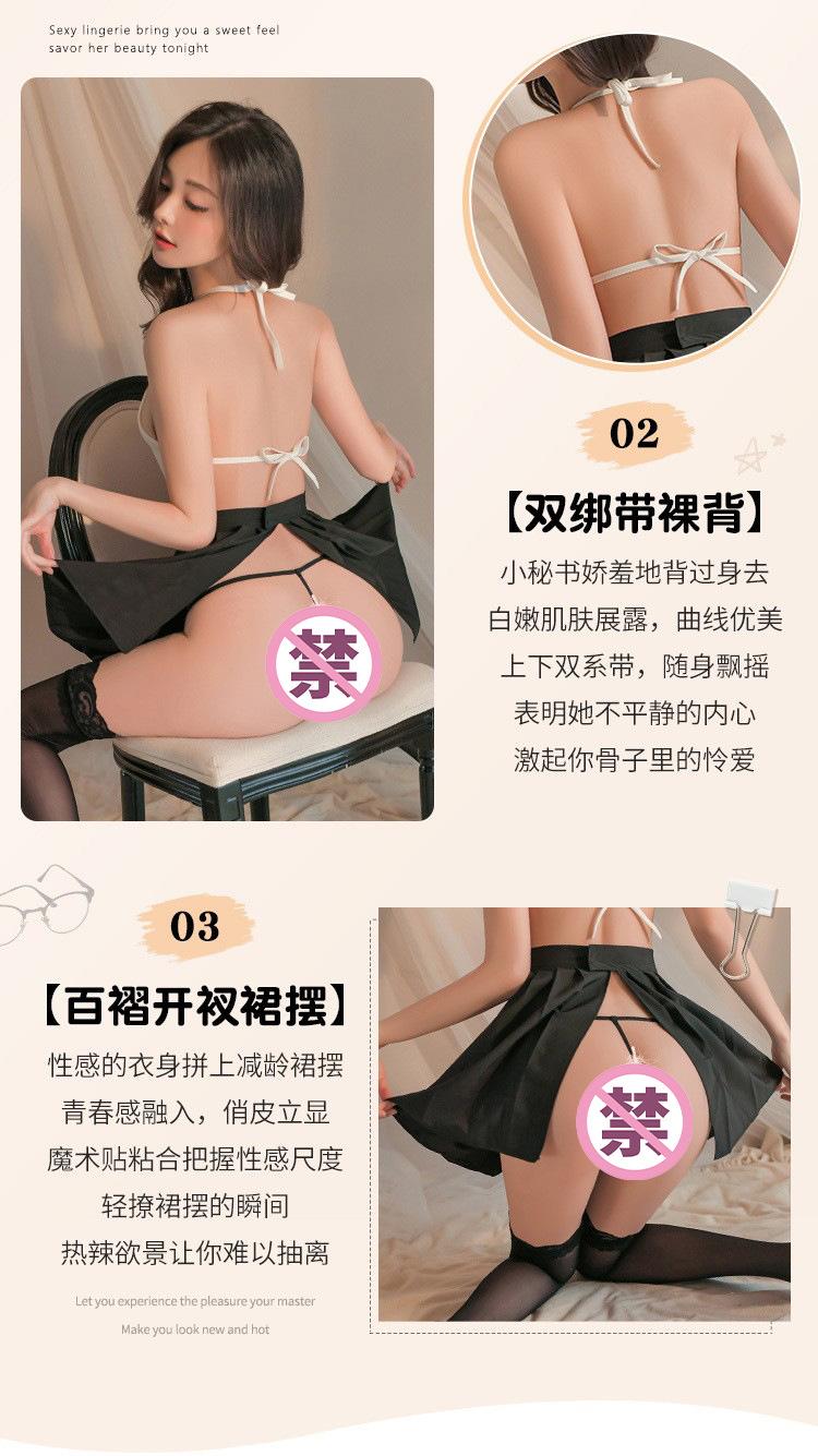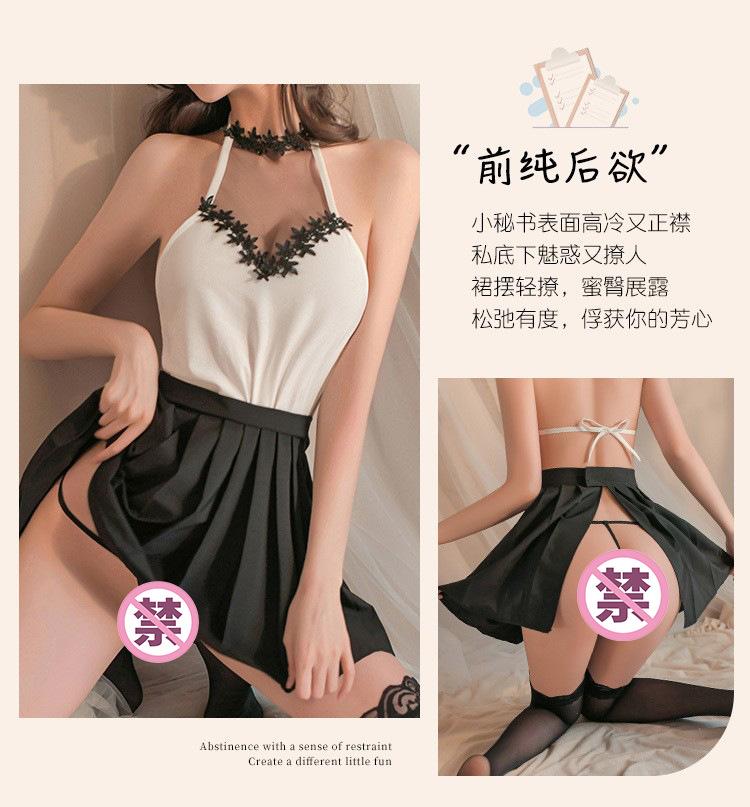 Lencería Sexy Mujer Nuevo Encaje Uniforme de Secretaria Tentación Transparente Halter Atado Cama Coqueteo Vestido 5392