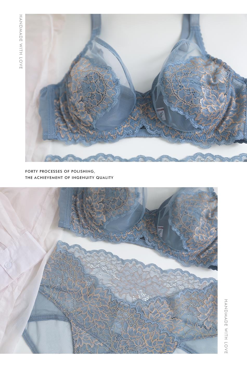Lencería para Mujer Busto Grande Luce Pequeño Conjunto Delgado Copa Recogedora Soporte Lateral Anticaída Super Delgado con Varilla