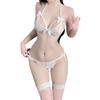 Lencería Erótica Sexy de Encaje Tentación Conjunto de Pijama Transparente de Tres Piezas Sujetador Panty para Mujer Venta al por Mayor Envío Directo Tentación
