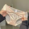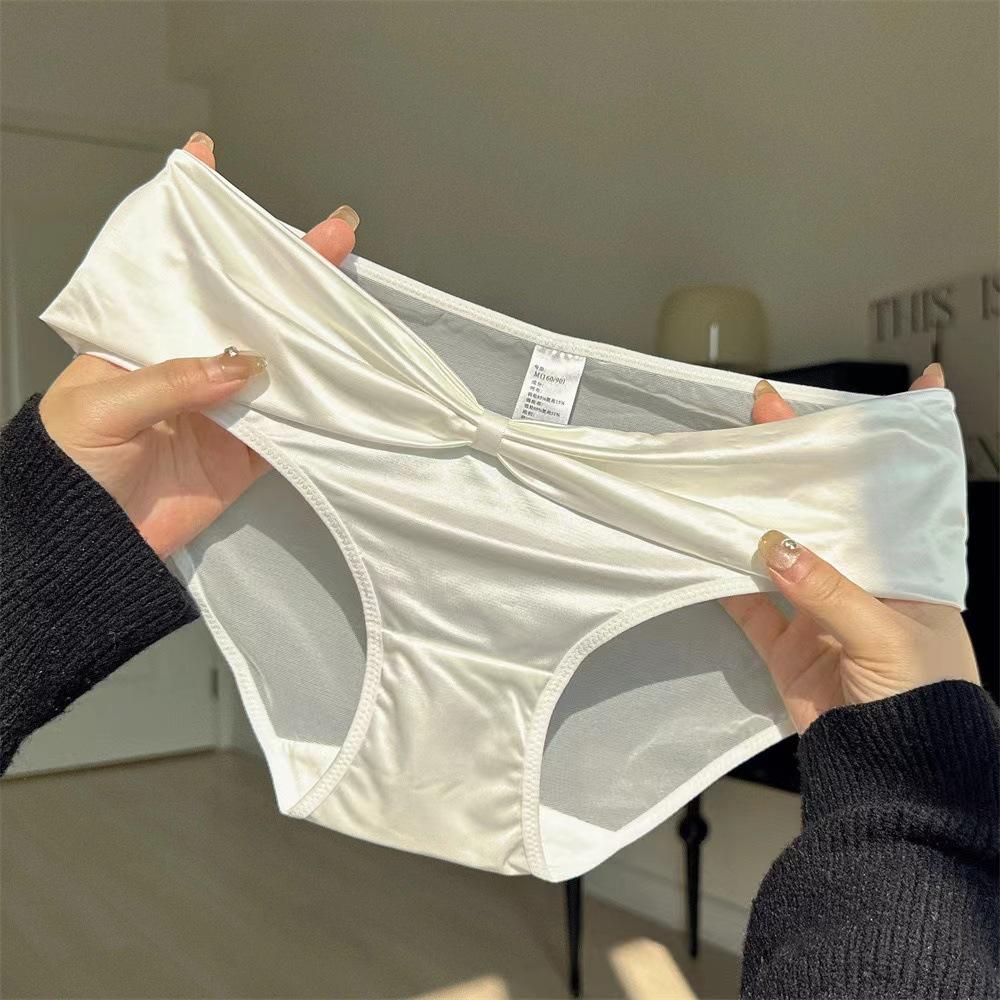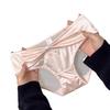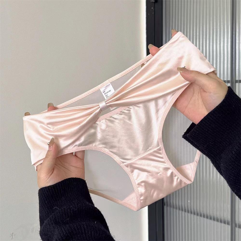 Ropa interior de satén puro estilo francés para mujer, de talle medio, delgada, transpirable, con entrepierna de algodón puro, calzones tipo funda de encaje hueco sexy para mujer