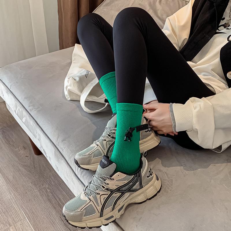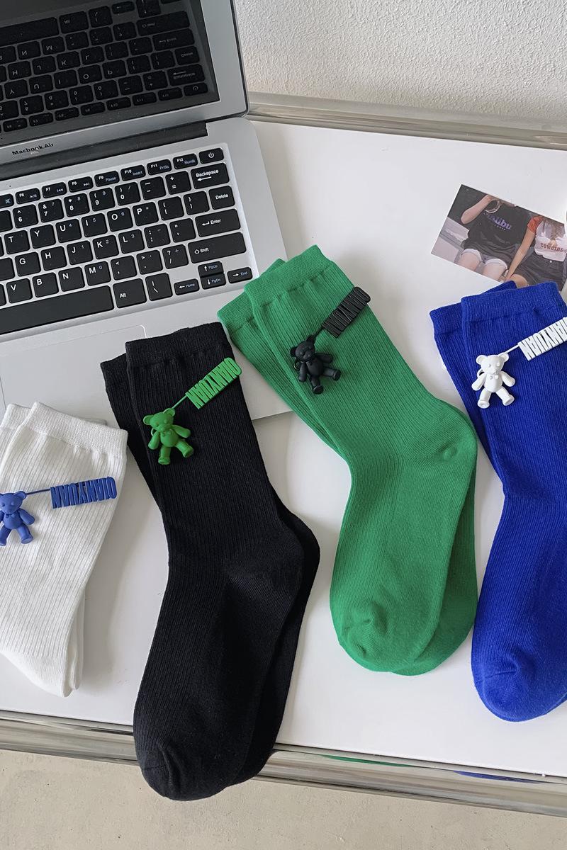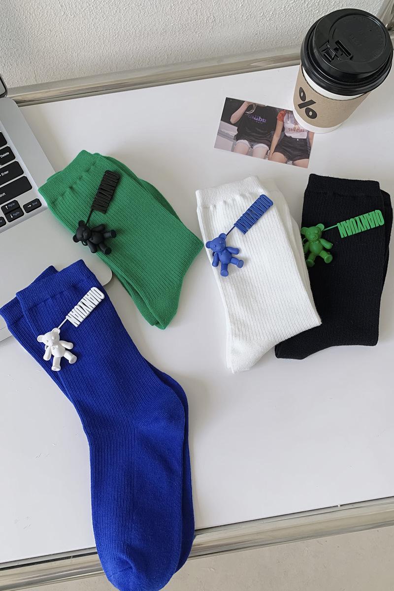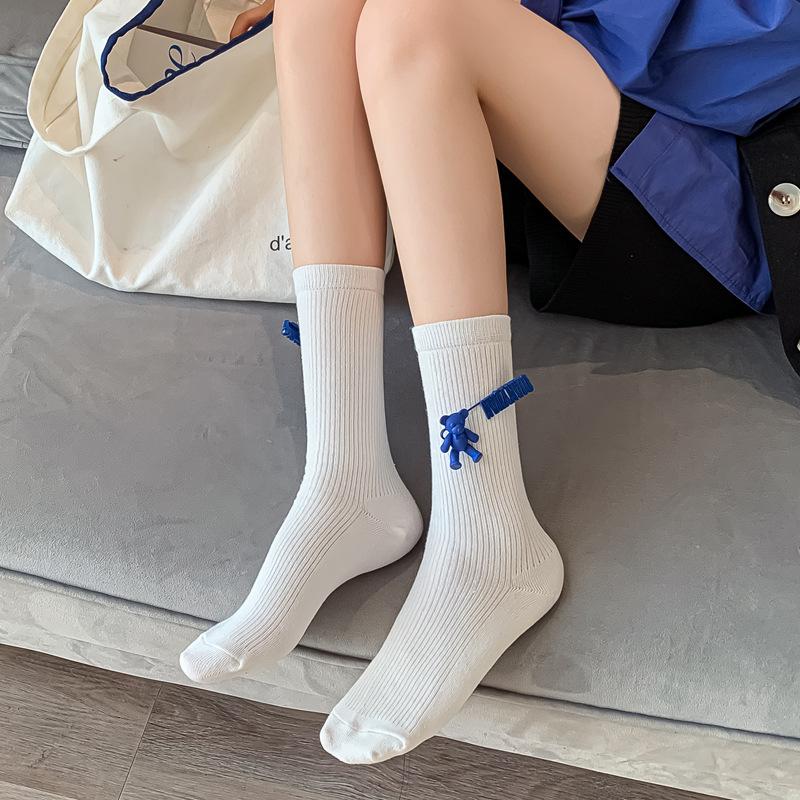 Otoño Nuevos Calcetines Estilo Coreano 3D Imperdible Oso Calcetines de Media Caña para Mujer Azul Klein de Canalé Alto Venta al por Mayor