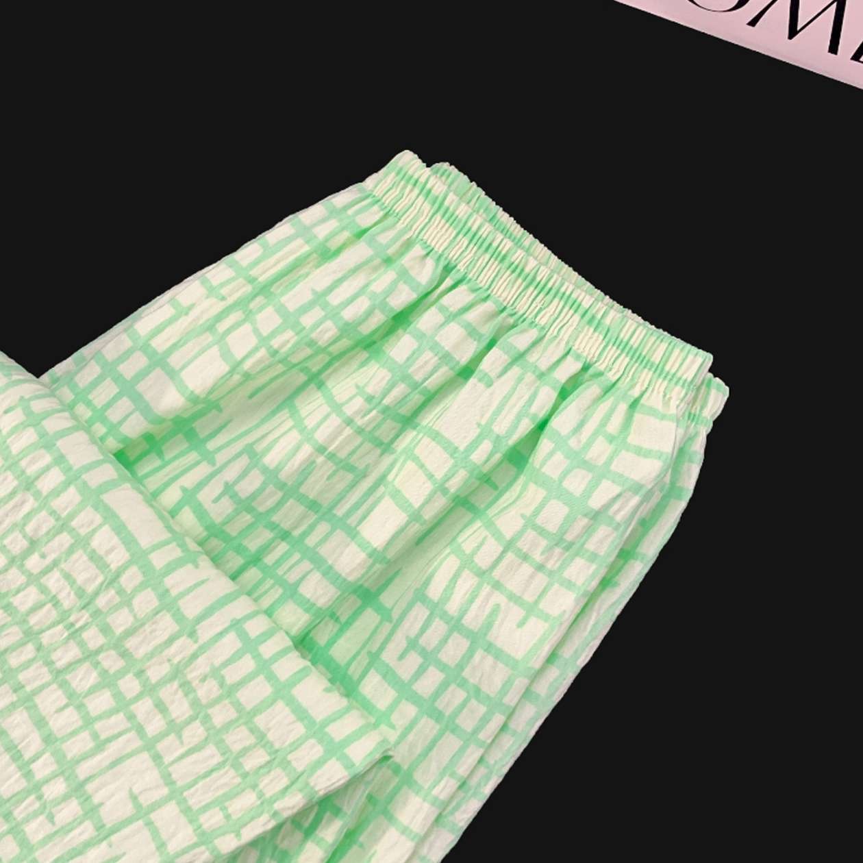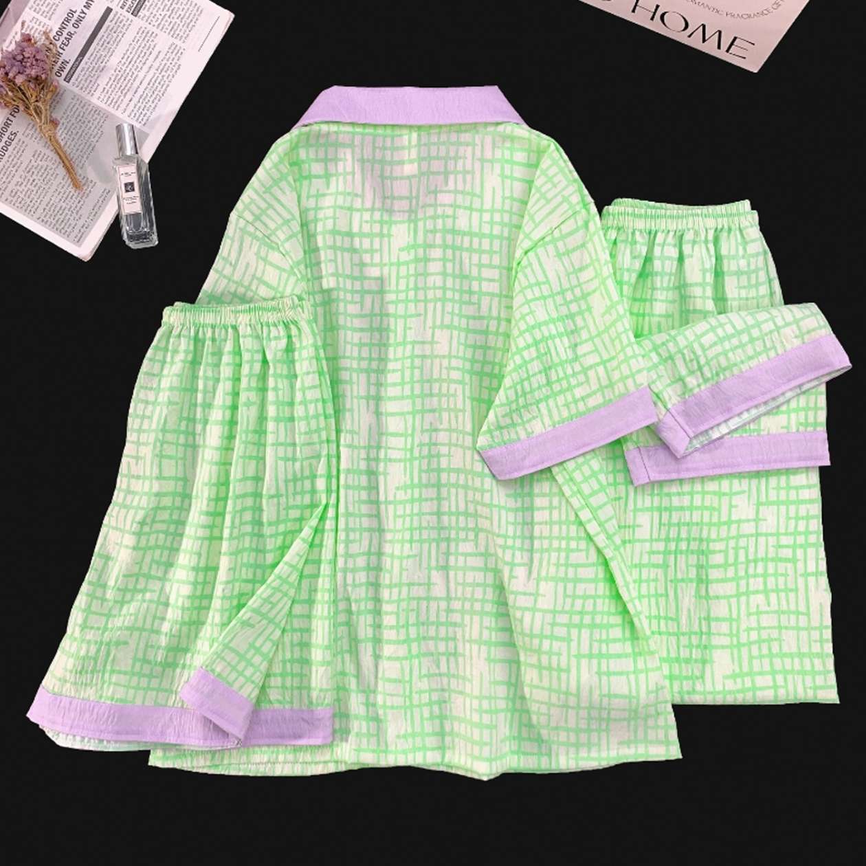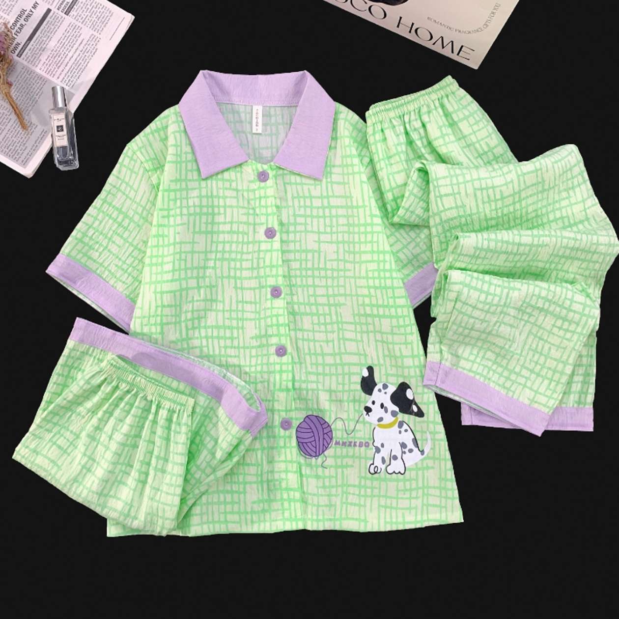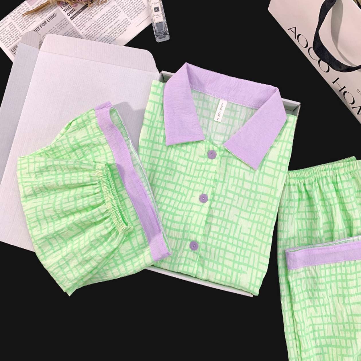 Pijama Dálmata de Bloques de Color para Mujer, Conjunto de Tres Piezas, Algodón Nube, Manga Corta, Shorts, Pantalón Largo, Lindo Conjunto para Estar en Casa