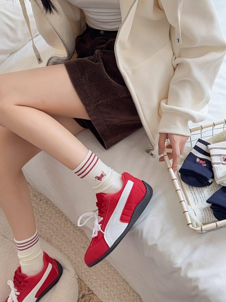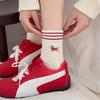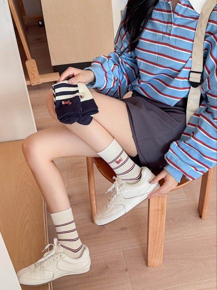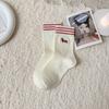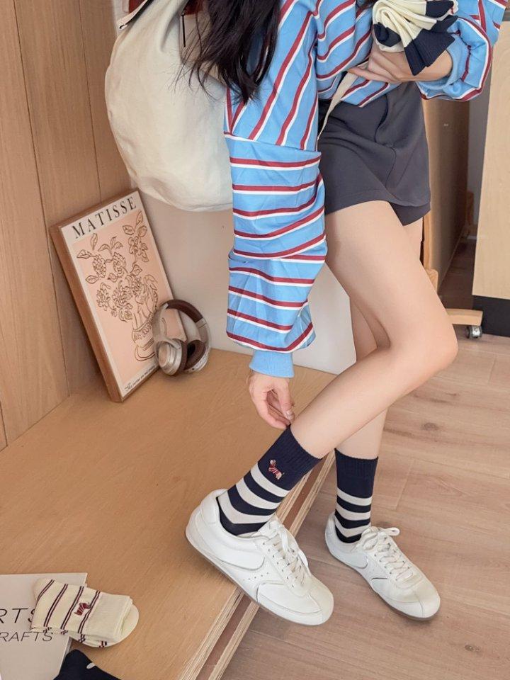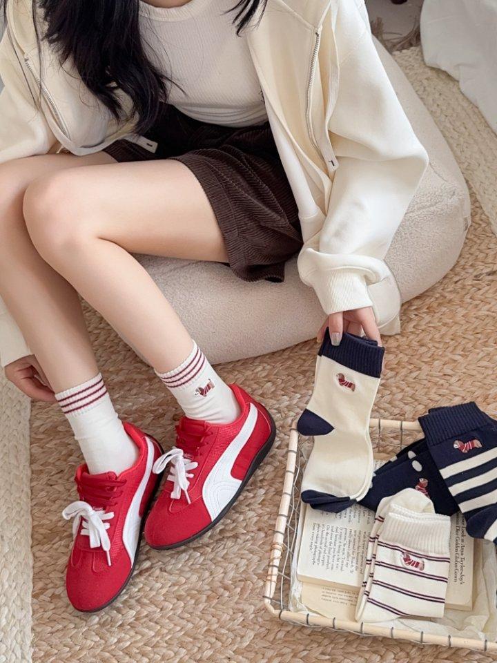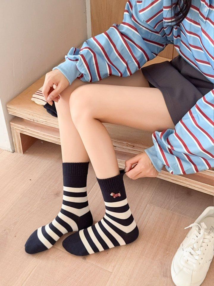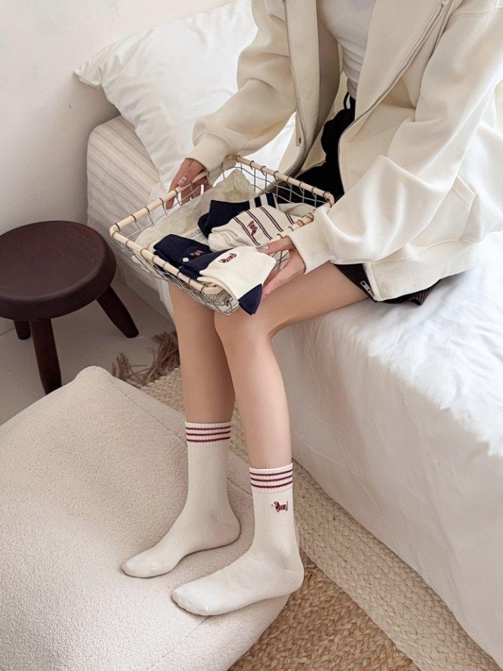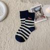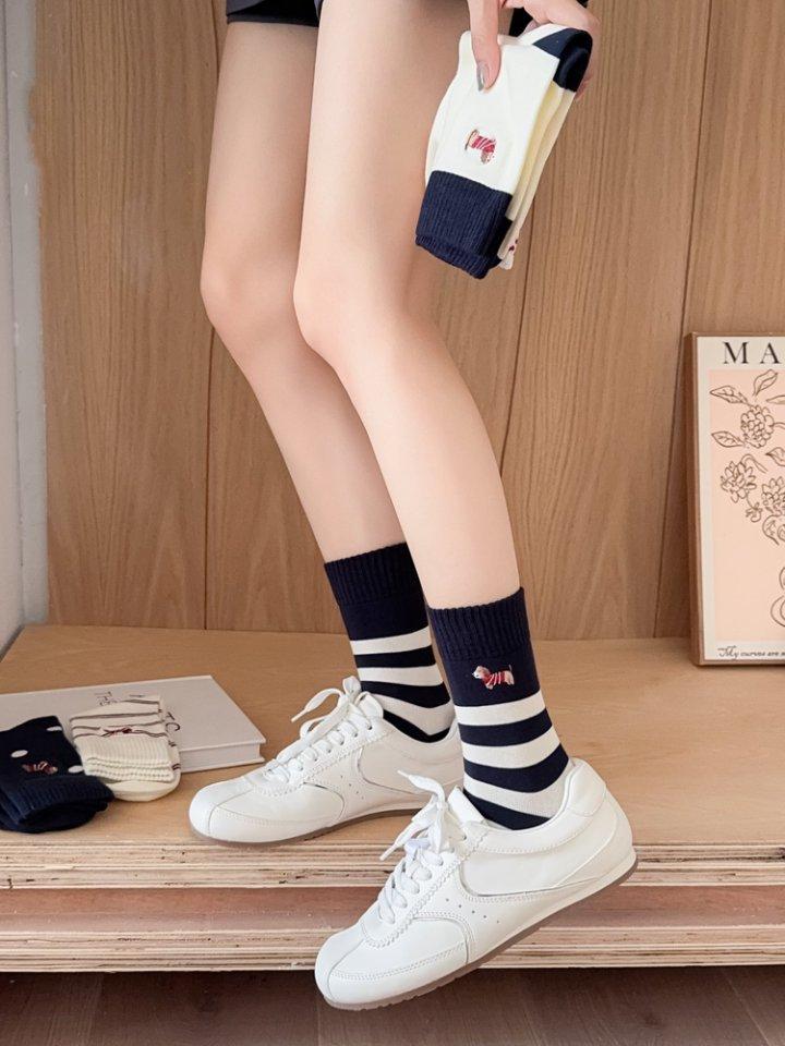 Calcetines de media pantorrilla a rayas de estilo coreano ins de moda para otoño e invierno con bordado de dibujos animados de cachorro de teckel lindo, calcetines largos holgados estilo universitario