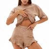 Conjunto de dos piezas de verano europeo y americano transfronterizo de manga corta y shorts para estar en casa para mujer, conjunto holgado y cómodo