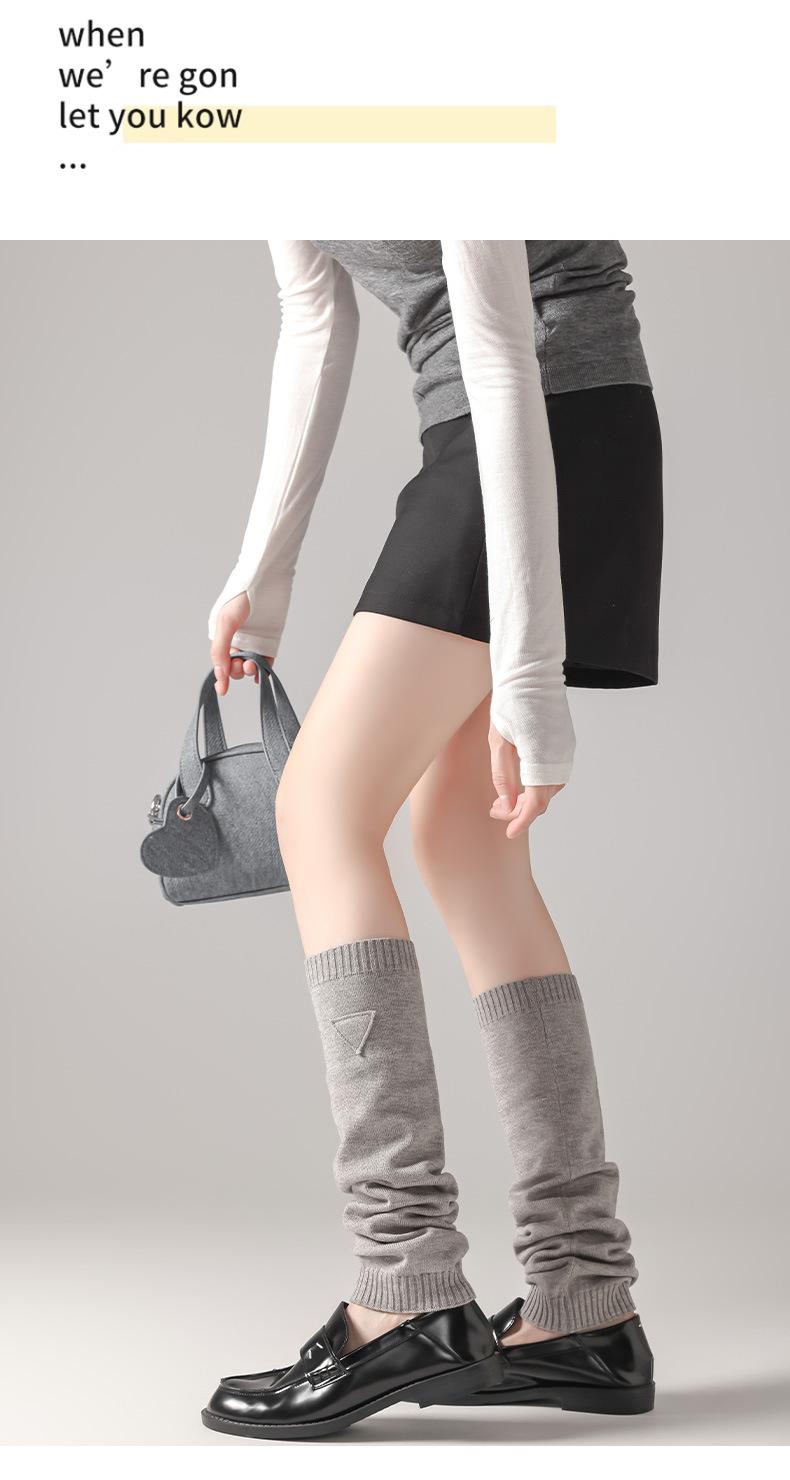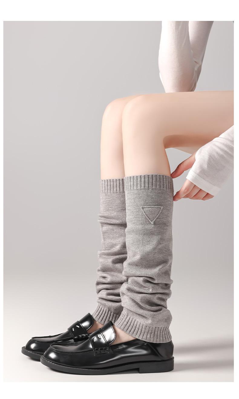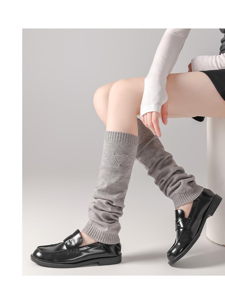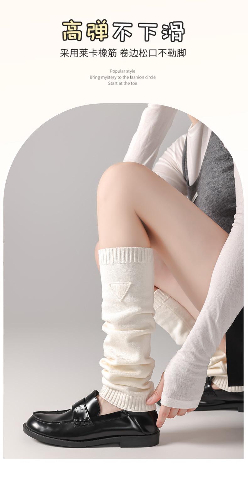 Calcetín Tobillero con Logo de Triángulo Mujer 2025 Otoño Nuevo Estilo Coreano Color Sólido Niña Calcetines de Rizo Lolita Versátil Calentadores Adelgazantes para Piernas