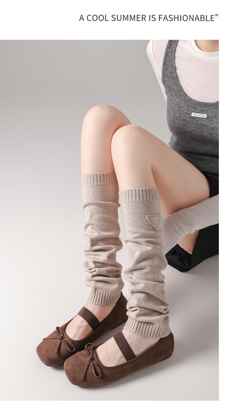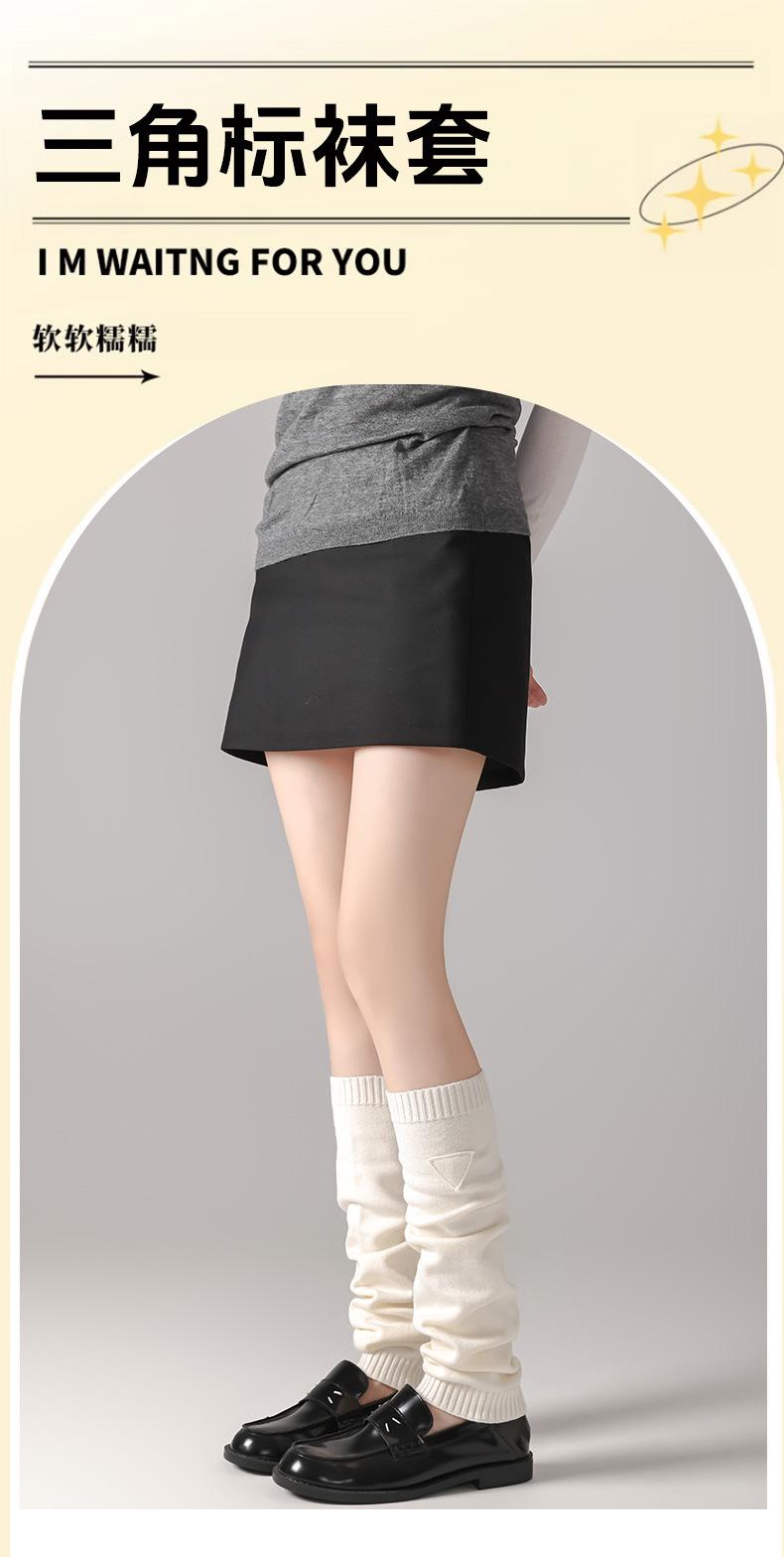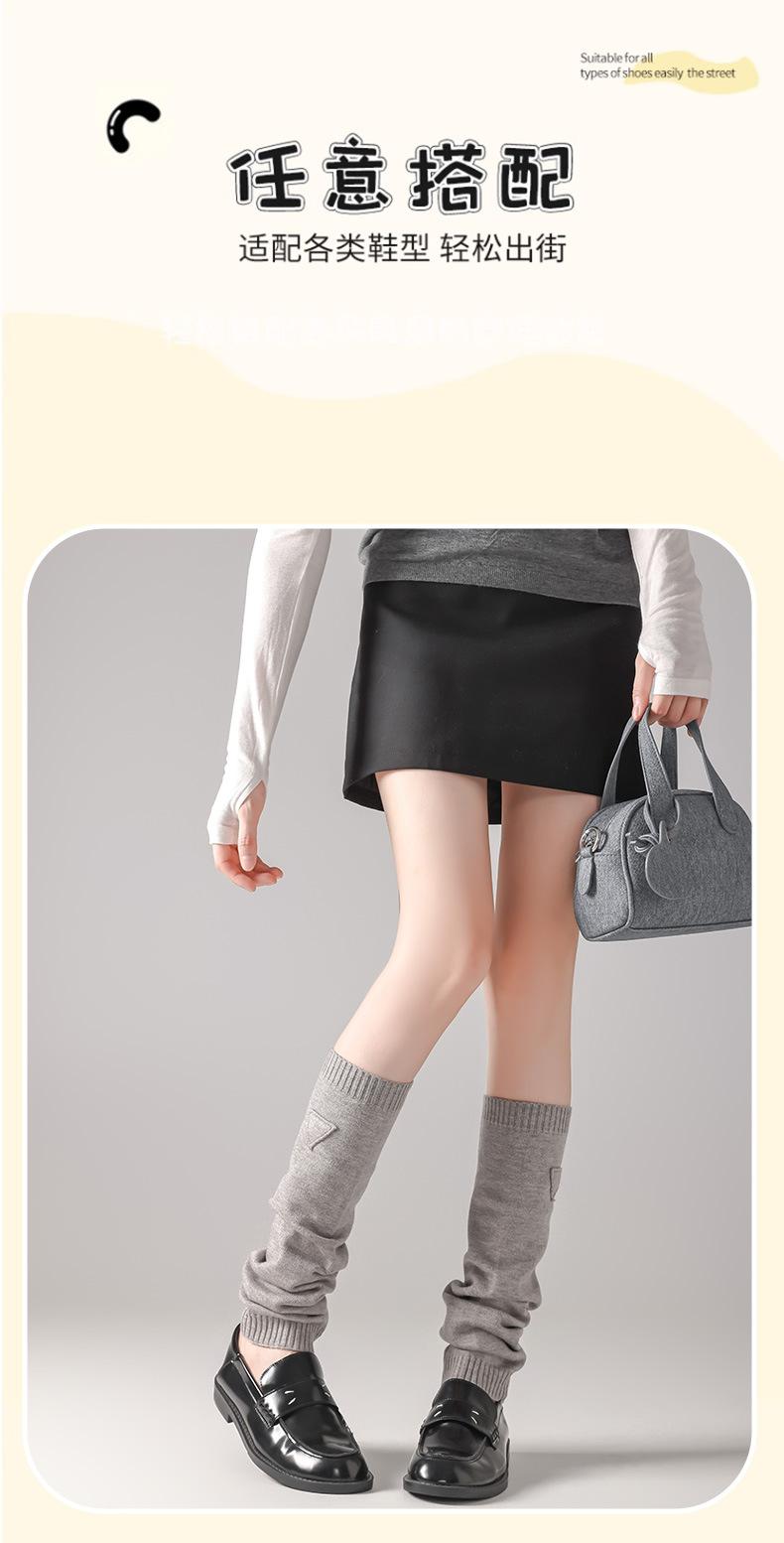 Calcetín Tobillero con Logo de Triángulo Mujer 2025 Otoño Nuevo Estilo Coreano Color Sólido Niña Calcetines de Rizo Lolita Versátil Calentadores Adelgazantes para Piernas