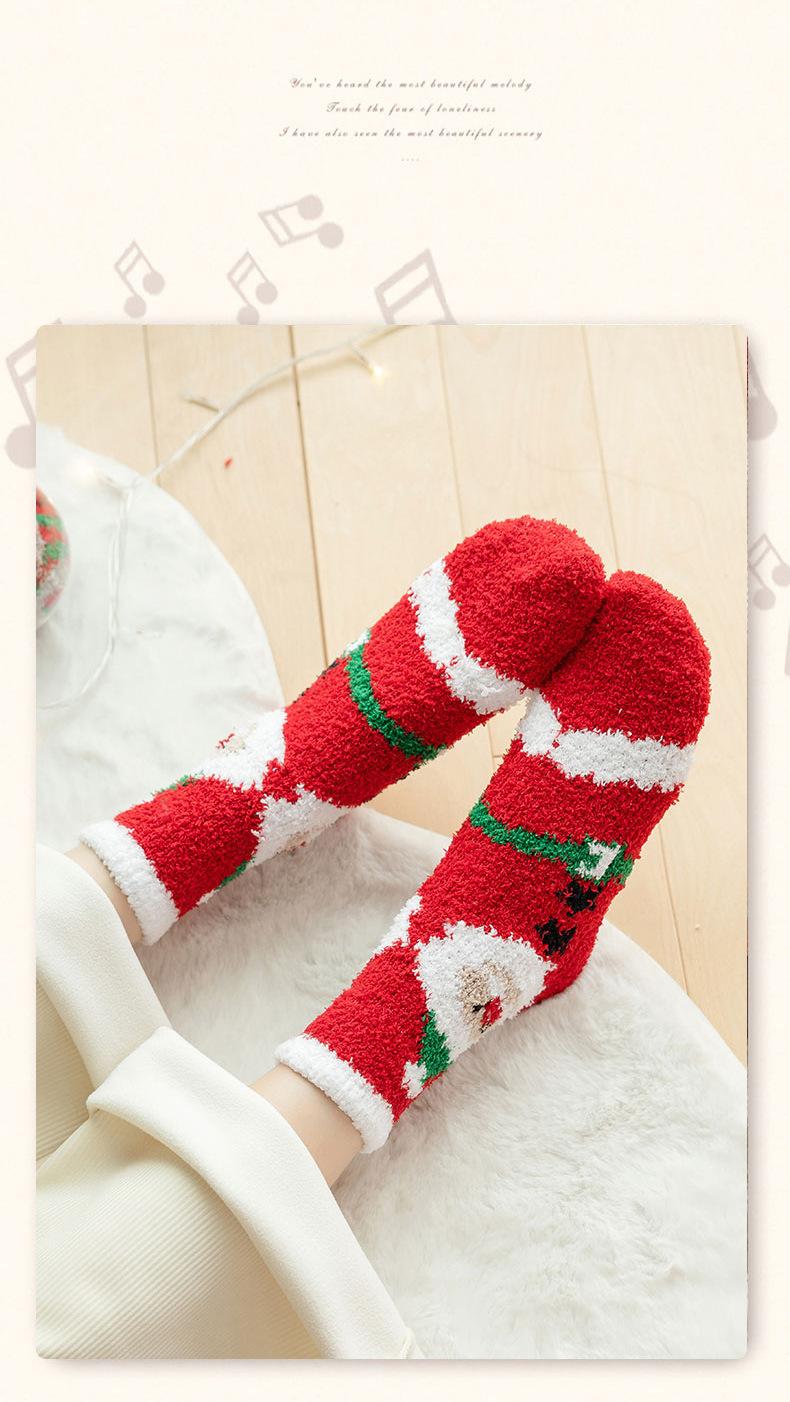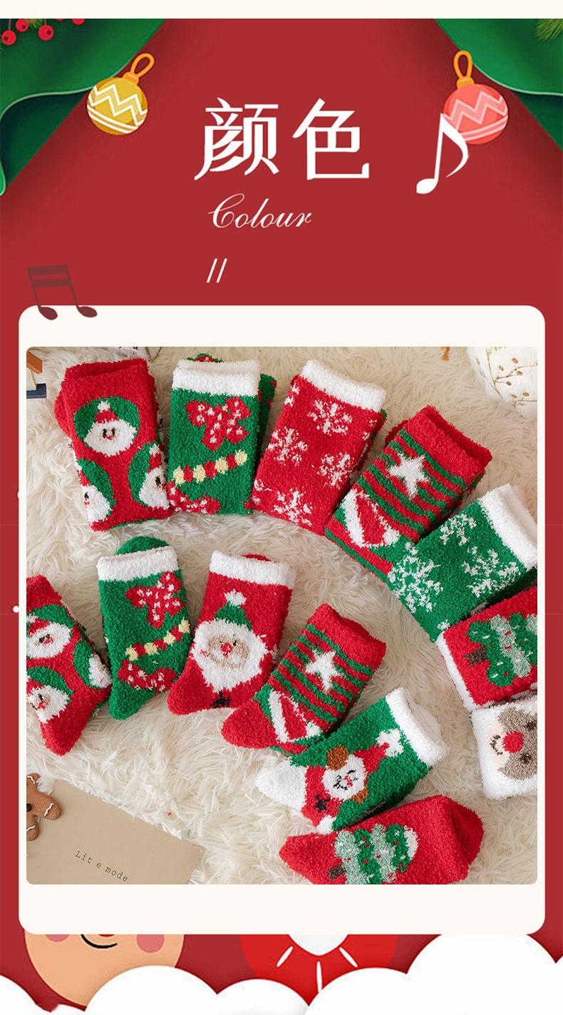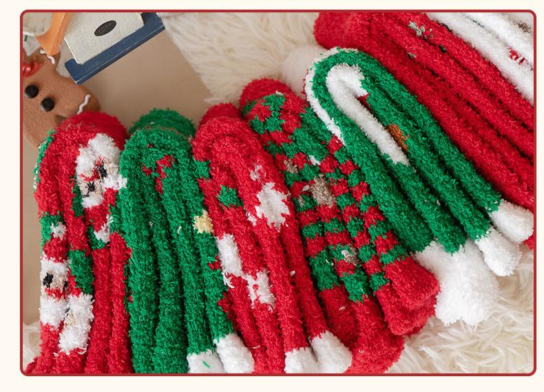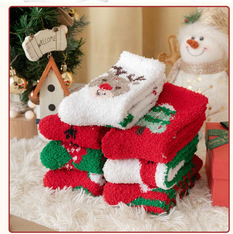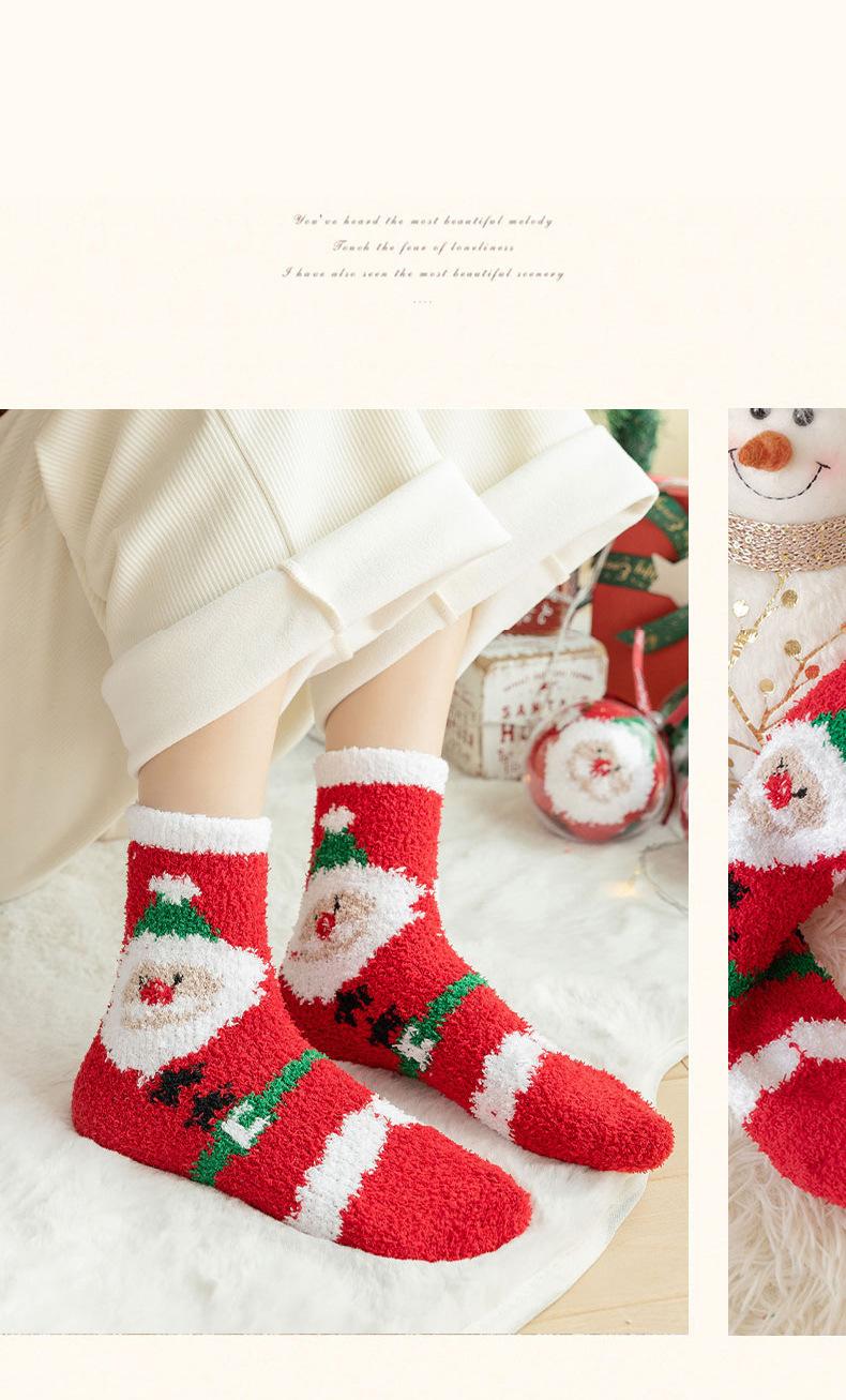 Suministro transfronterizo de calcetines navideños nuevos de otoño e invierno, calcetines lindos y coloridos de vellón coral de dibujos animados de Papá Noel, venta al por mayor en stock