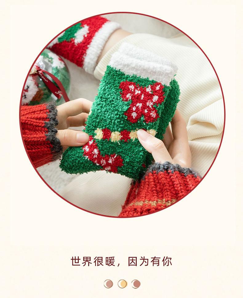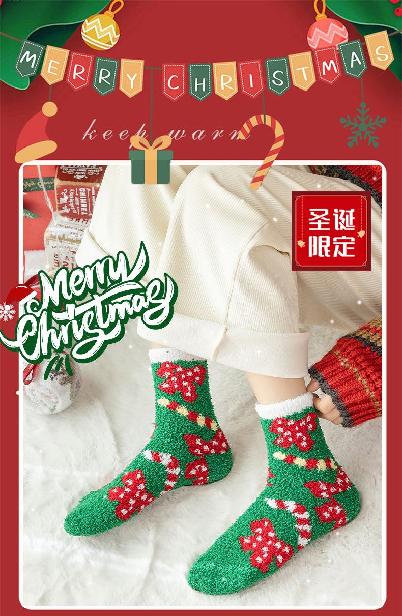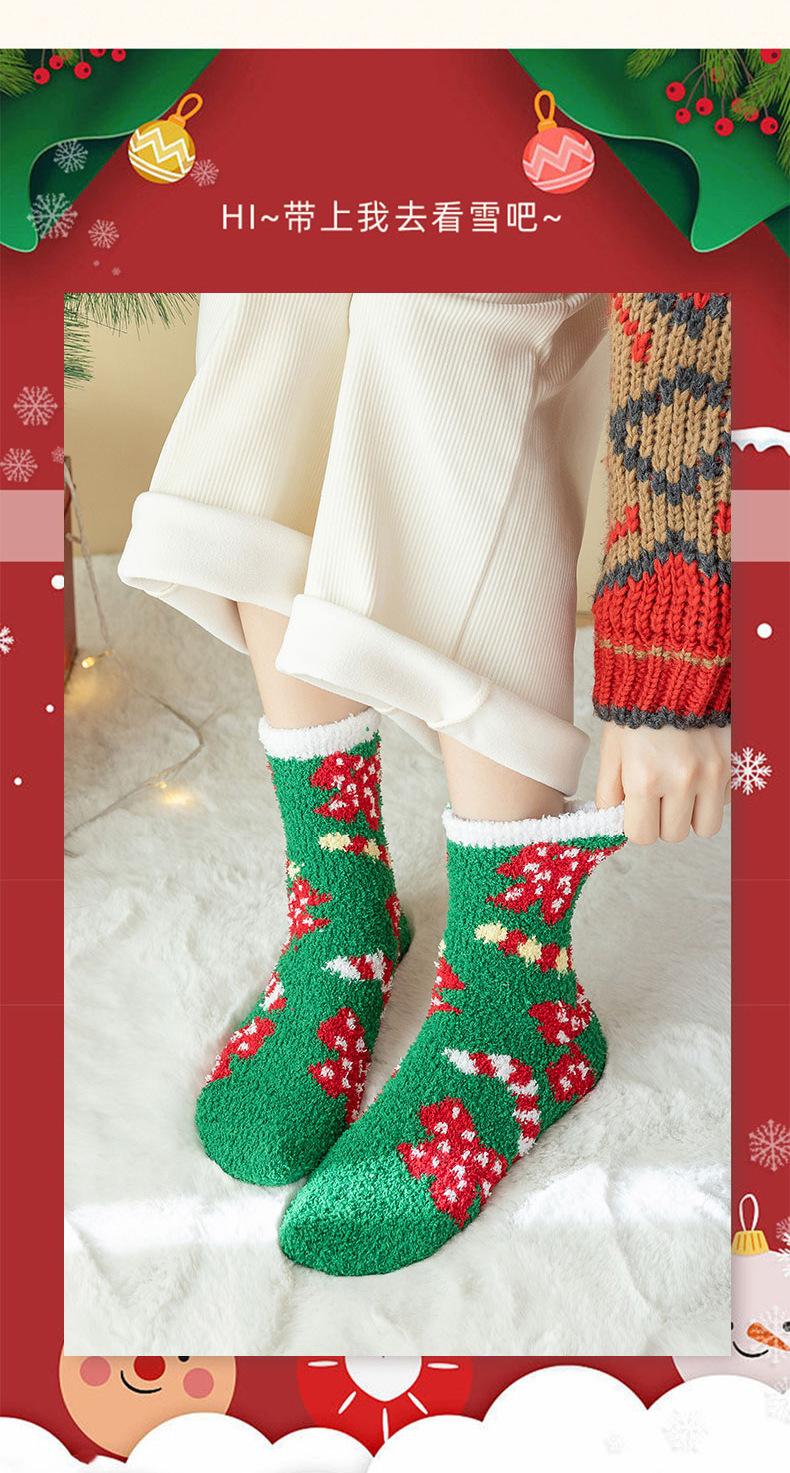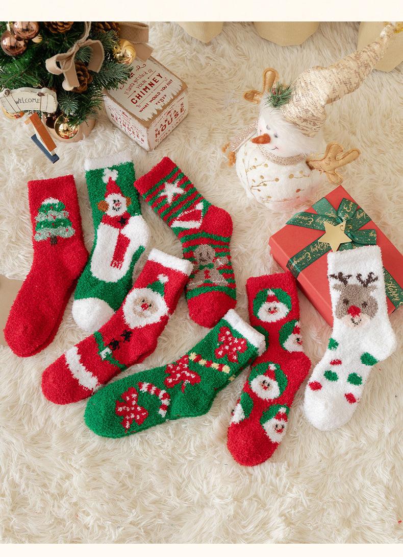 Suministro transfronterizo de calcetines navideños nuevos de otoño e invierno, calcetines lindos y coloridos de vellón coral de dibujos animados de Papá Noel, venta al por mayor en stock