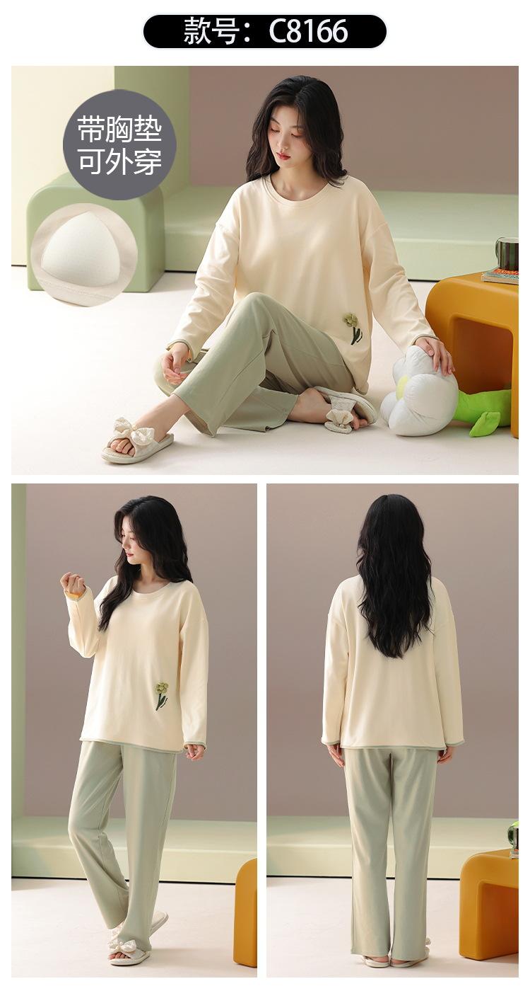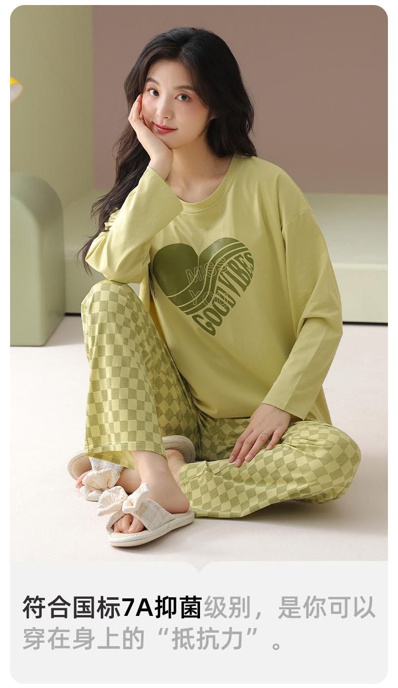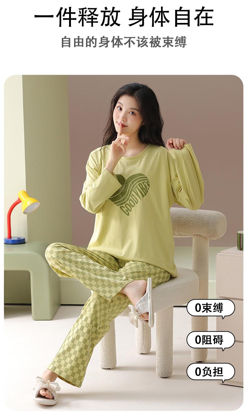 Pijama de Manga Larga de Algodón Puro Transpirable y Delicado con la Piel para Primavera y Otoño para Mujer, Estilo Nuevo 2025, Conjunto Casual de Ropa para el Hogar para Dama