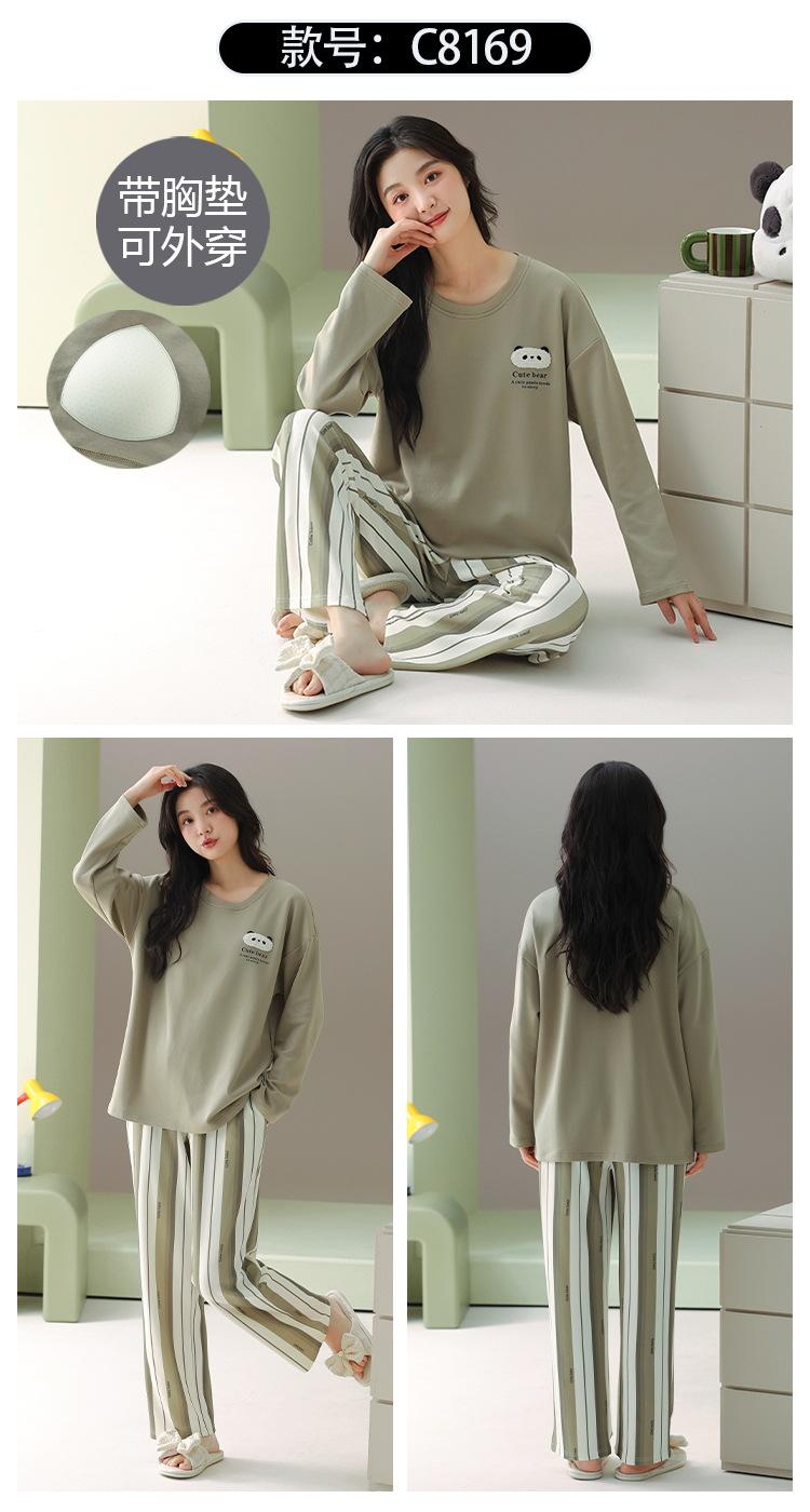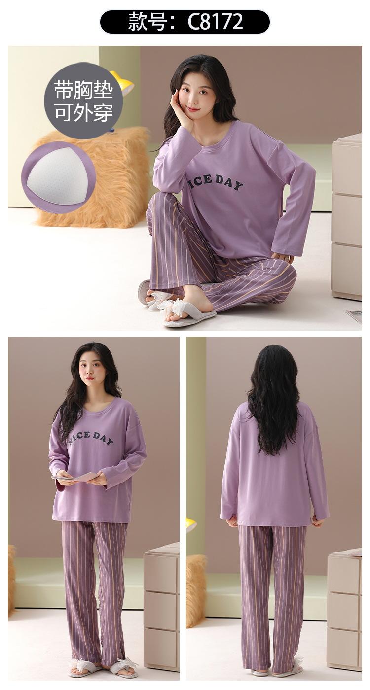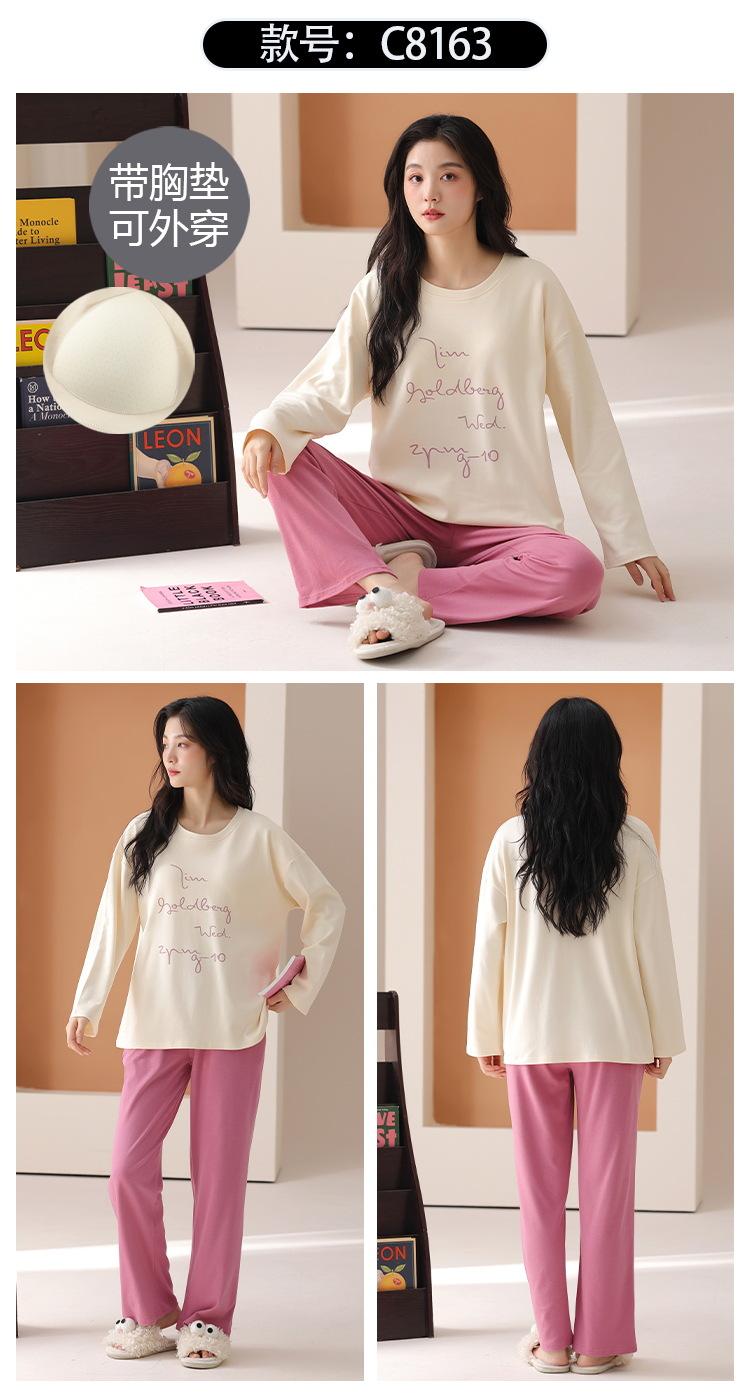 Pijama de Manga Larga de Algodón Puro Transpirable y Delicado con la Piel para Primavera y Otoño para Mujer, Estilo Nuevo 2025, Conjunto Casual de Ropa para el Hogar para Dama
