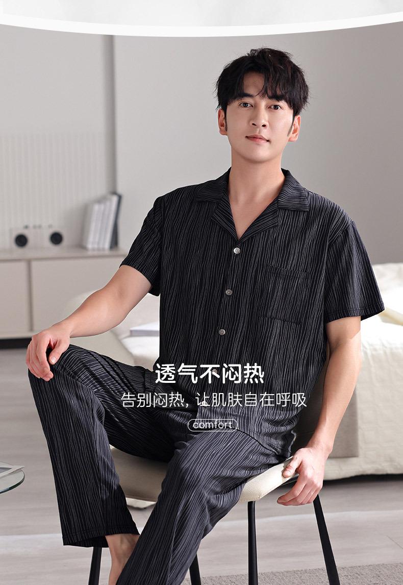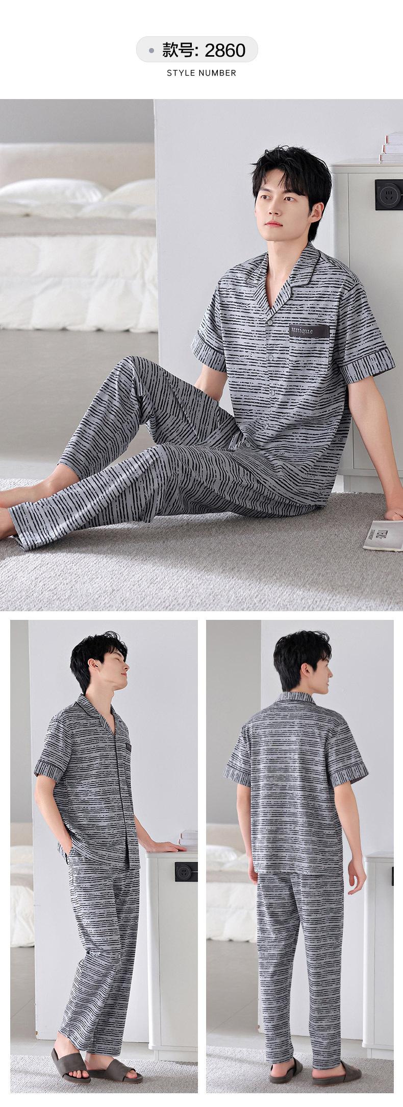Pijama de Verano para Hombre Algodón Puro Manga Corta Pantalones Delgados Algodón de Verano para Hombre Se Puede Usar Afuera Talla Grande Conjunto de Ropa para el Hogar
