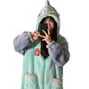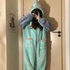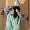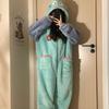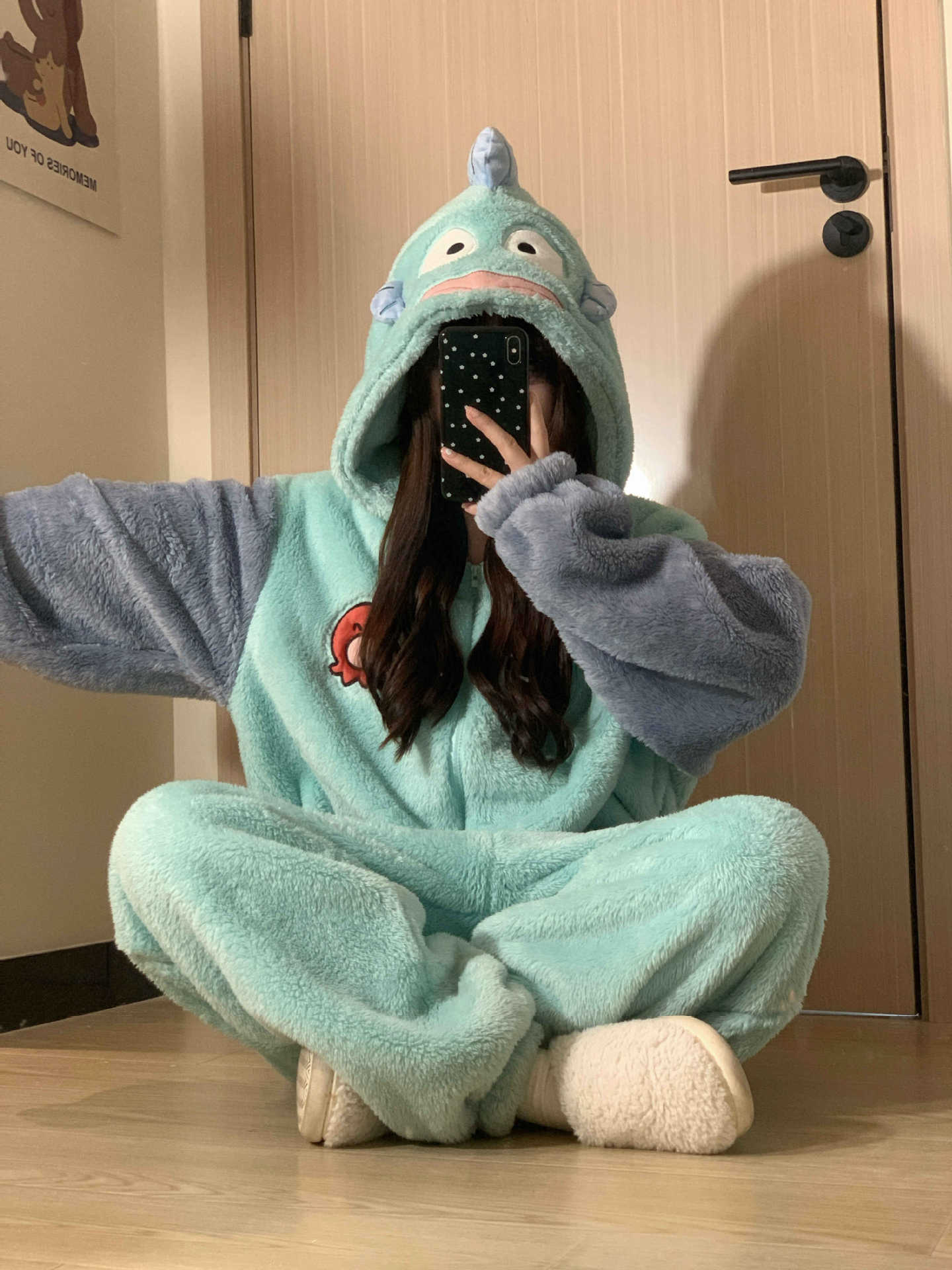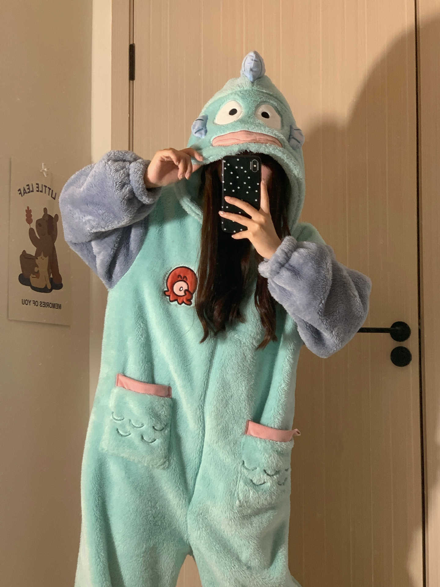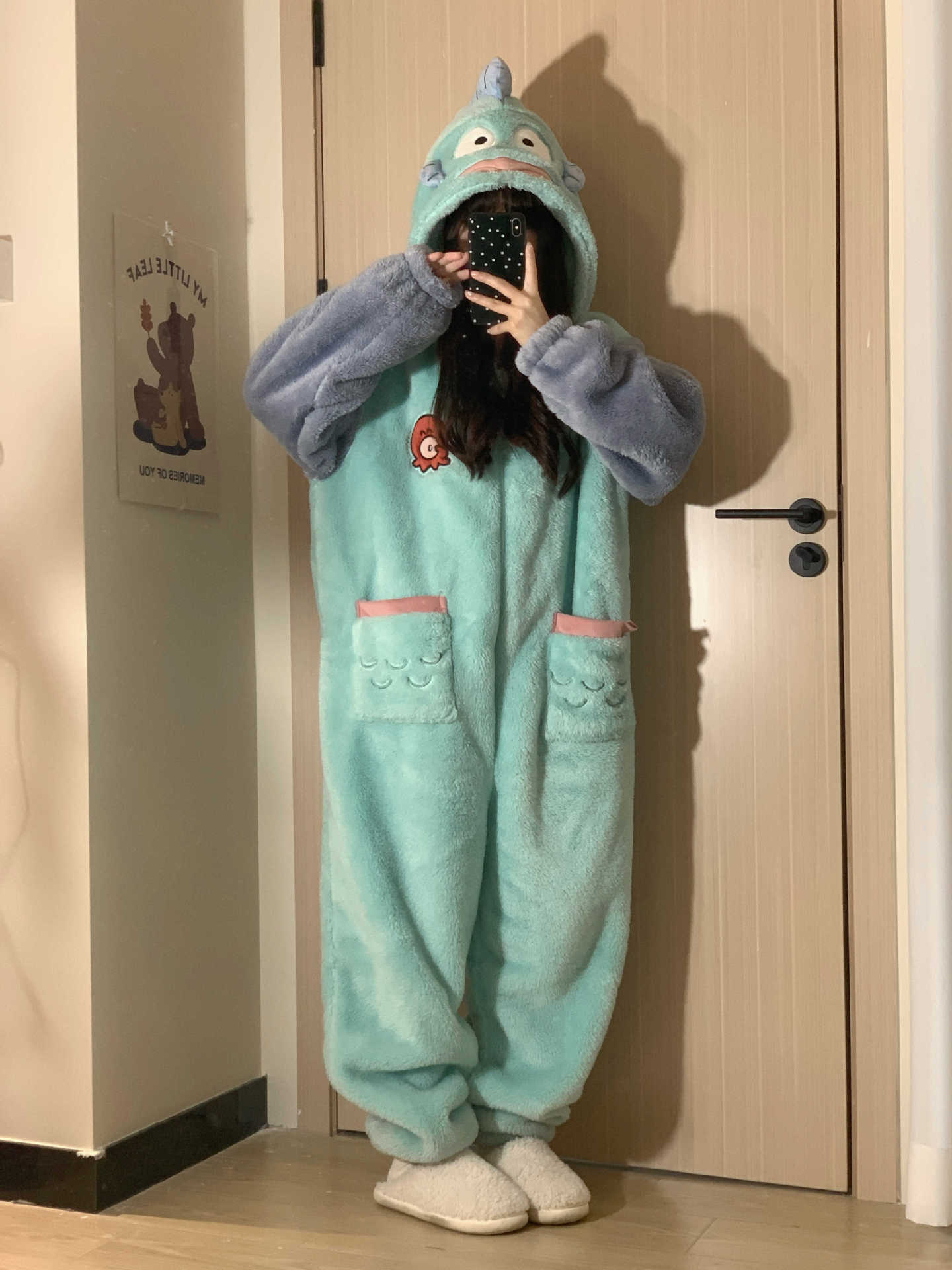 Pijama de forro polar coral con diseño de pez feo de dibujos animados para mujer, pijama de invierno grueso de terciopelo con diseño de sirena divertido, conjunto para el hogar