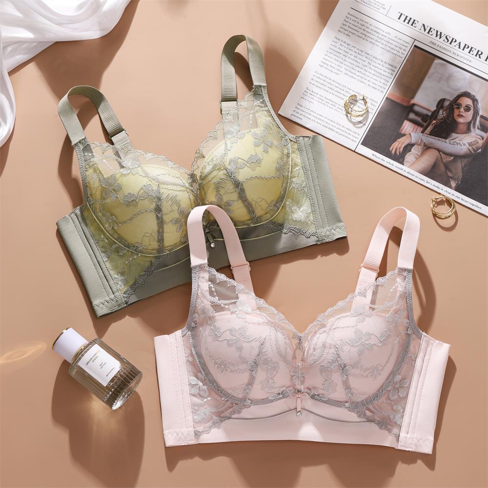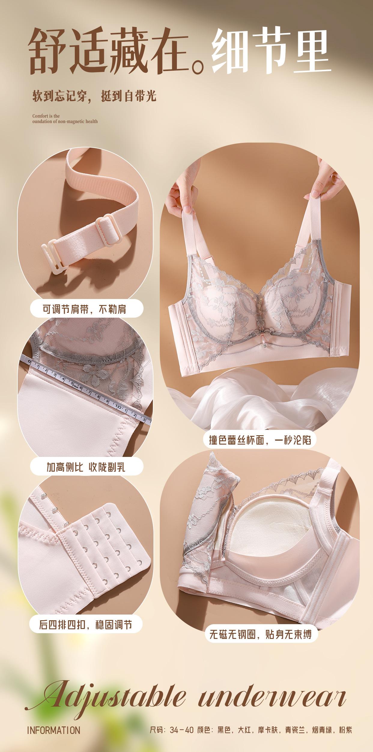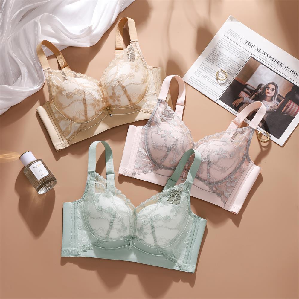 Sujetador Ajustable Recolector Cómodo Sin Varillas Copa Lisa Mediana-Gruesa Ropa Interior Soporte Lateral Encaje Sujetador Sexy