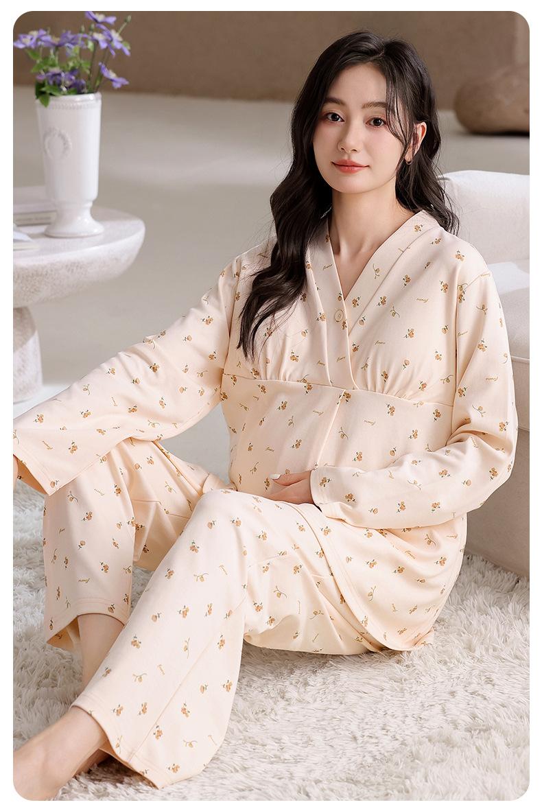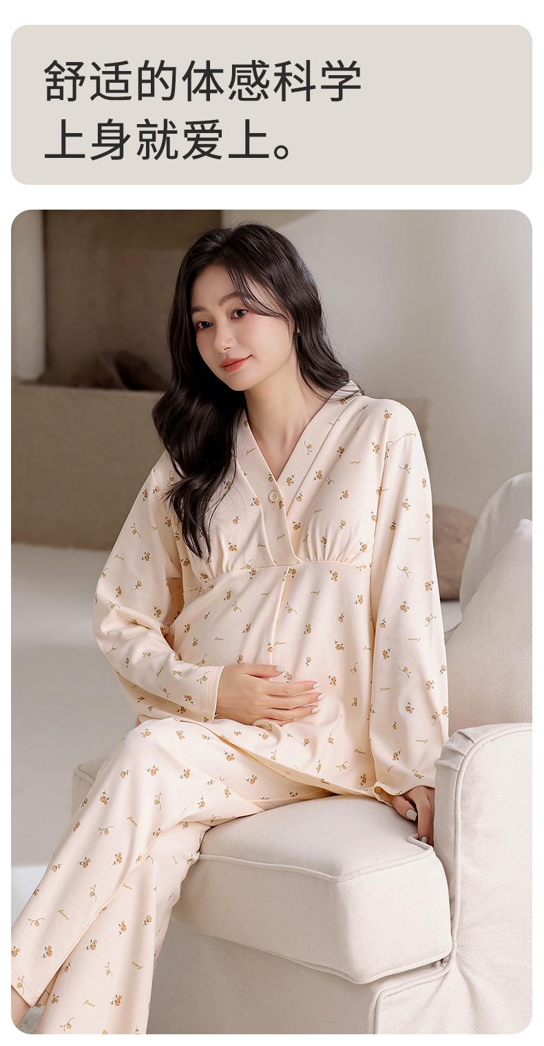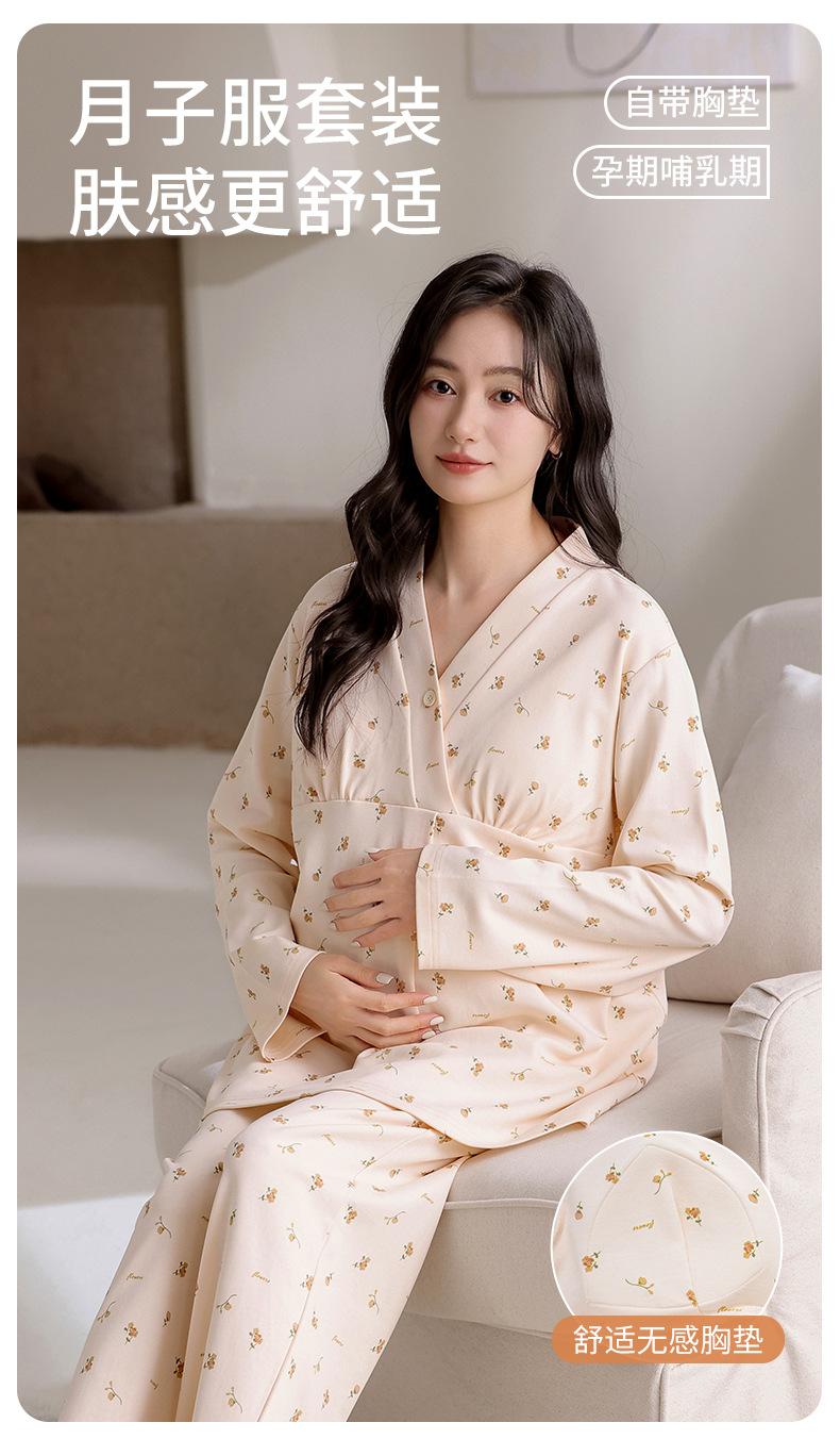 Feliz Luna 2025 Venta al por Mayor Maternidad Algodón Puro con Almohadillas para el Busto Ropa Postparto Otoño Maternidad Confinamiento Pijamas Especiales Conjunto de Dos Piezas