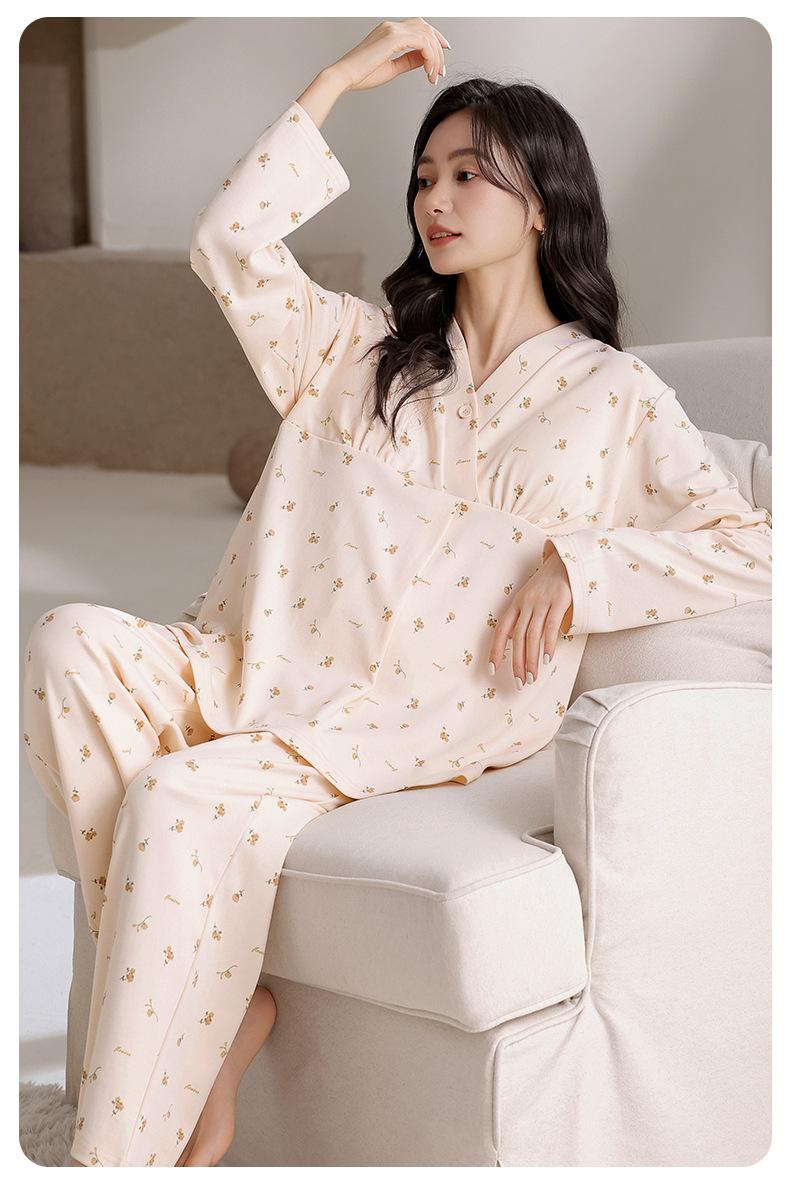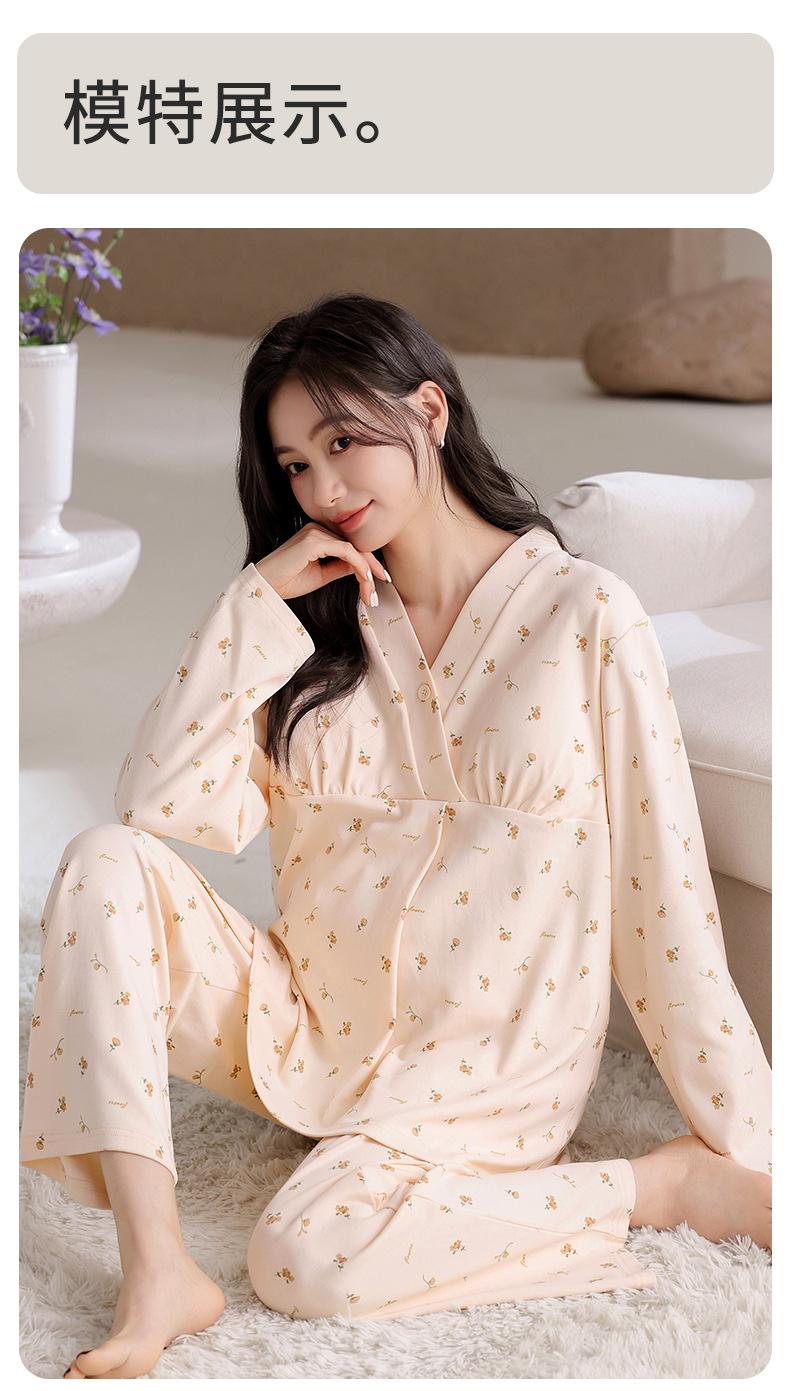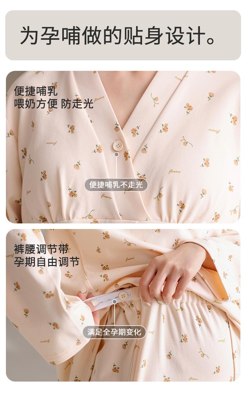 Feliz Luna 2025 Venta al por Mayor Maternidad Algodón Puro con Almohadillas para el Busto Ropa Postparto Otoño Maternidad Confinamiento Pijamas Especiales Conjunto de Dos Piezas