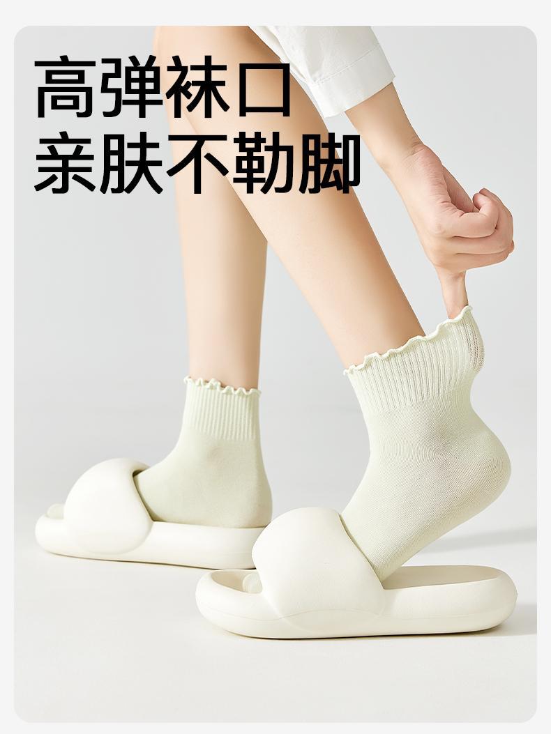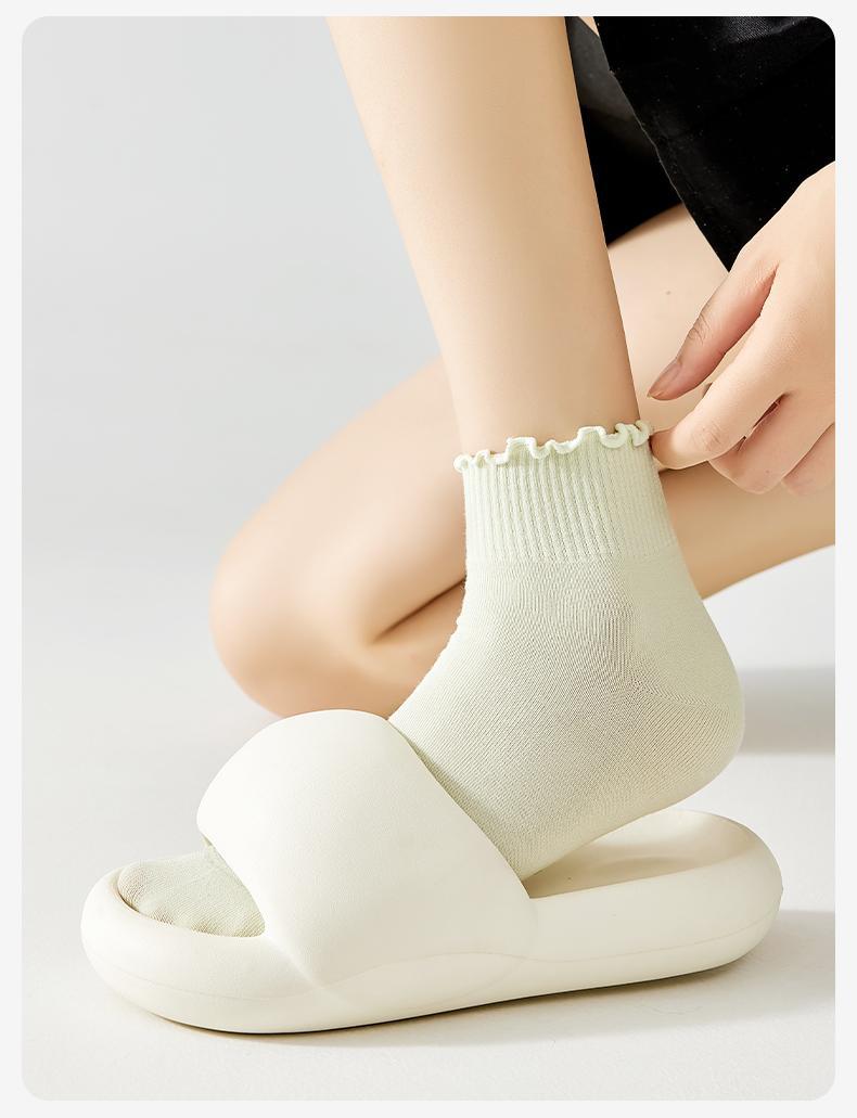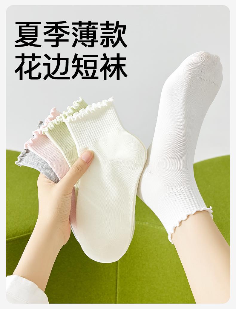 Calcetines con Borde de Volante para Mujer Calcetines de Algodón al Tobillo Primavera Verano Delgados Transpirables Absorbentes del Sudor Calcetines a Media Pantorrilla Combinan con Zapatos de Cuero Pequeños Calcetines de Algodón Nuevo