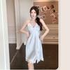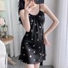 Camisón Sexy de Seda de Hielo para Mujer con Almohadilla en el Pecho Verano Estampado Caliente Mariposa Estilo Deseo Puro Camisón de Tirantes de Seda Puede ser Ropa de Casa Transfronteriza