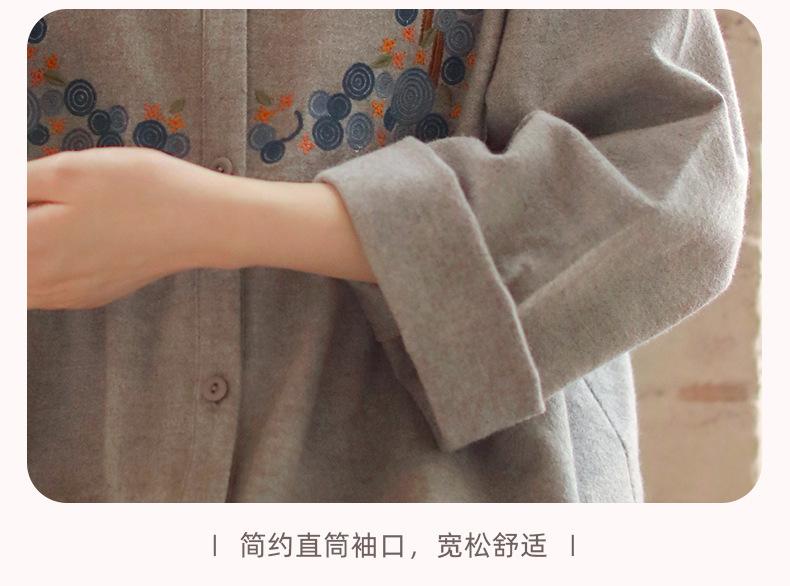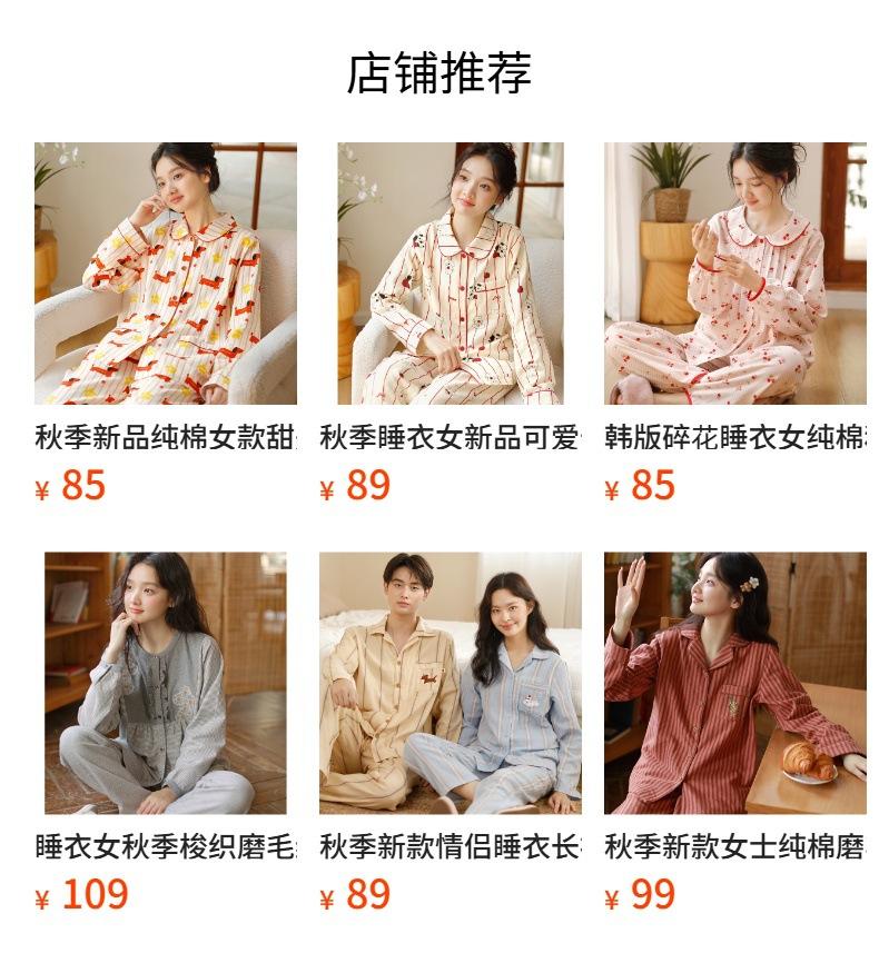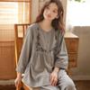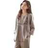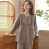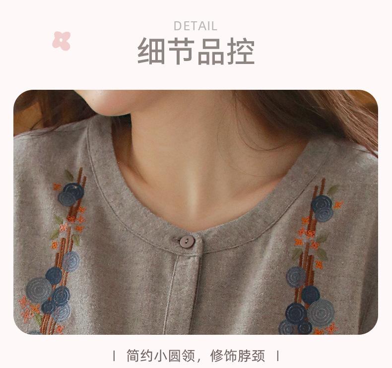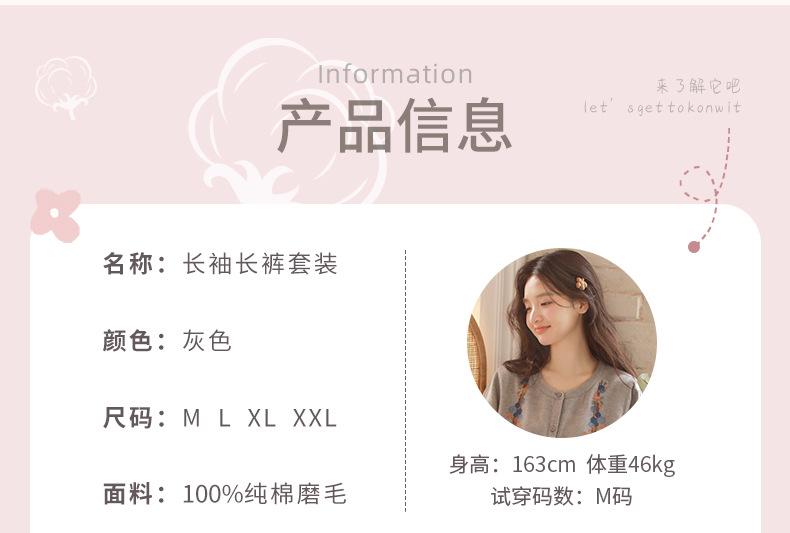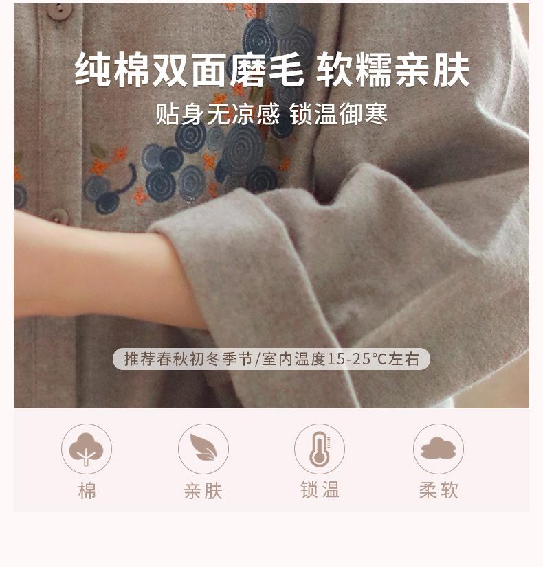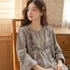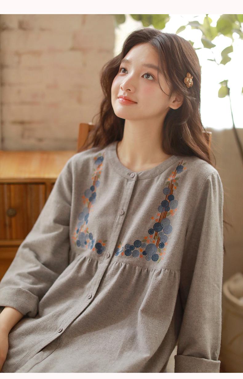 Otoño Nuevo Pijama de Mujer Algodón Franela Bordado de Alta Gama Manga Larga Ropa de Casa Set de Cuello Redondo