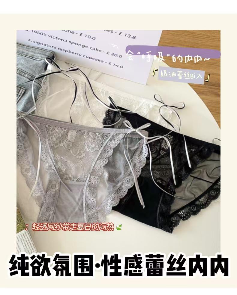 Braguitas de malla con abertura alta para mujer, verano para mujer, ultradelgadas, cintura media-baja, encaje sexy, estilo deseo puro, calzones triangulares para niña