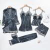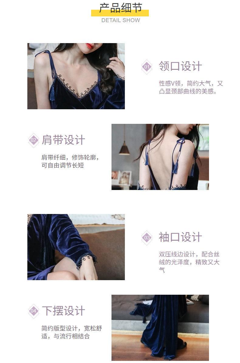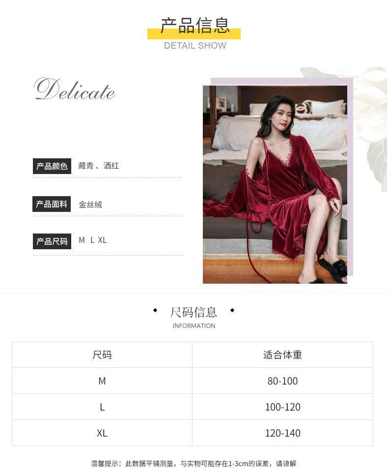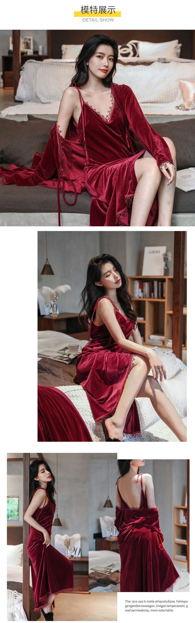 Pijama de Terciopelo Dorado para Mujer Otoño e Invierno Nuevo Sexy Camisola Profunda con Cuello en V Vestido de Noche Largo hasta la Rodilla Bata Conjunto de Dos Piezas Ropa para el Hogar