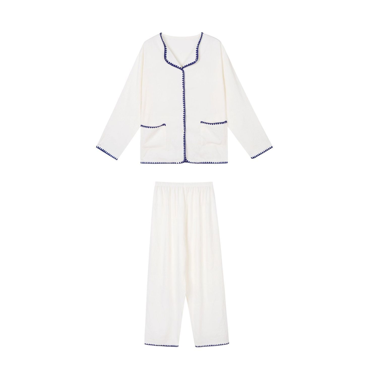 Compra Pijama de encaje de bloque de color estilo ins coreano de manga larga delgada para mujer primavera otoño dulce cómodo se puede usar fuera conjunto de ropa de casa al por mayor en Joom.pro