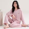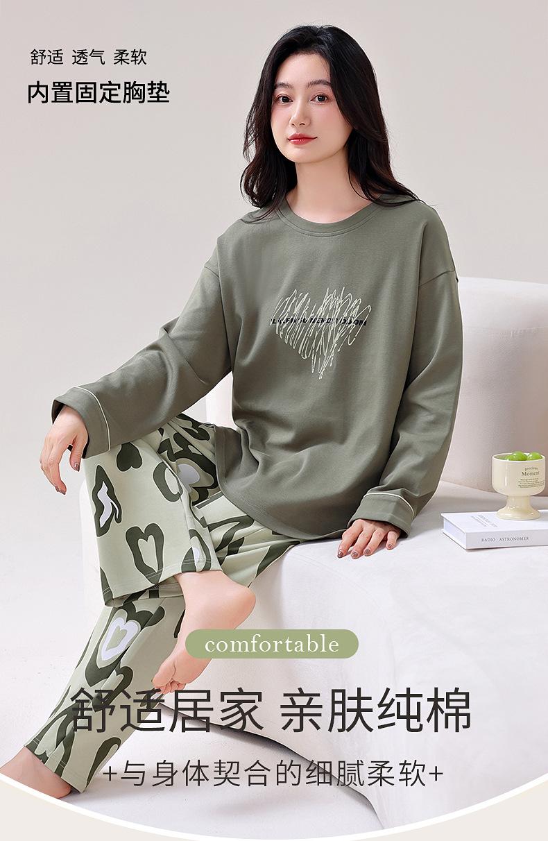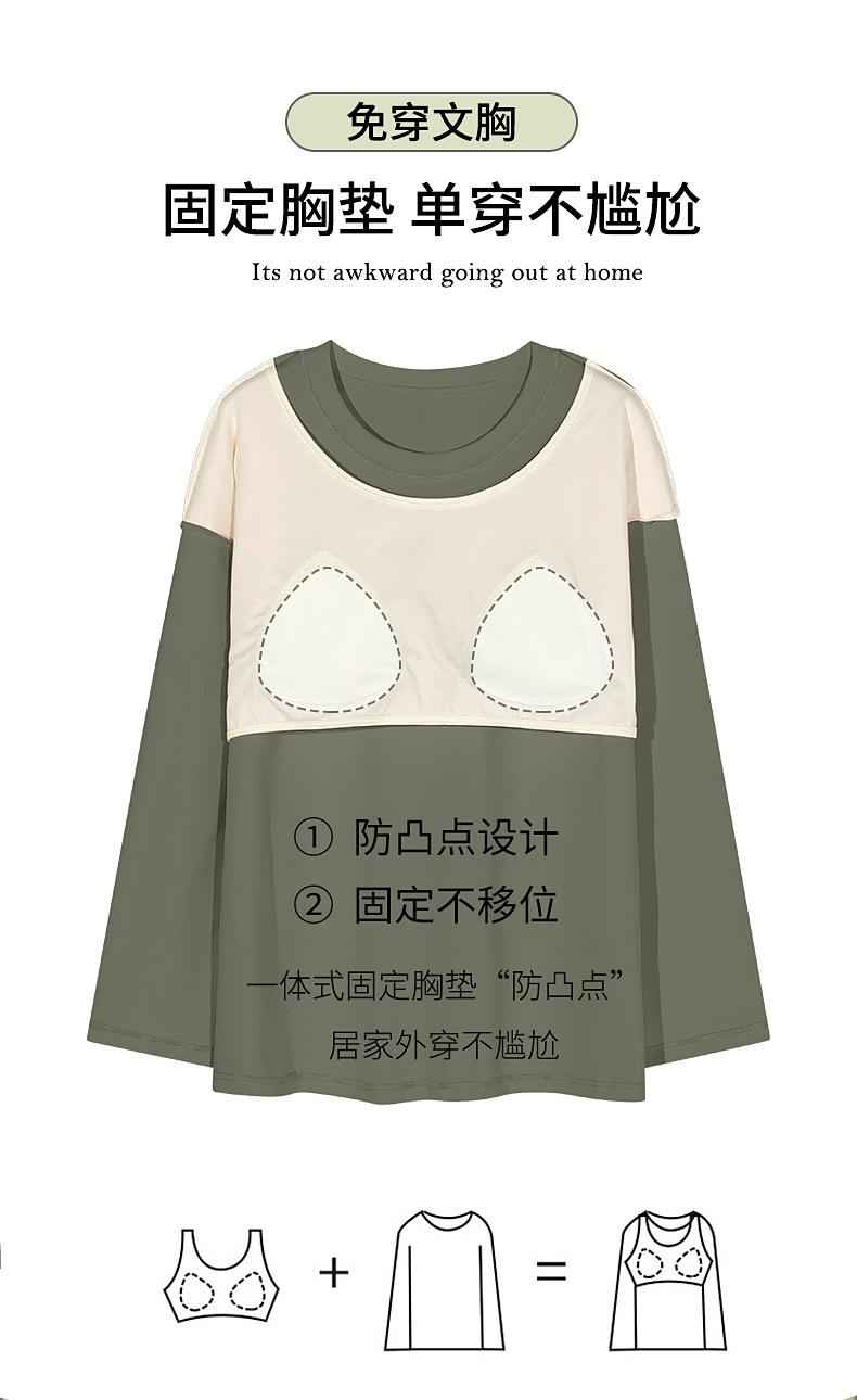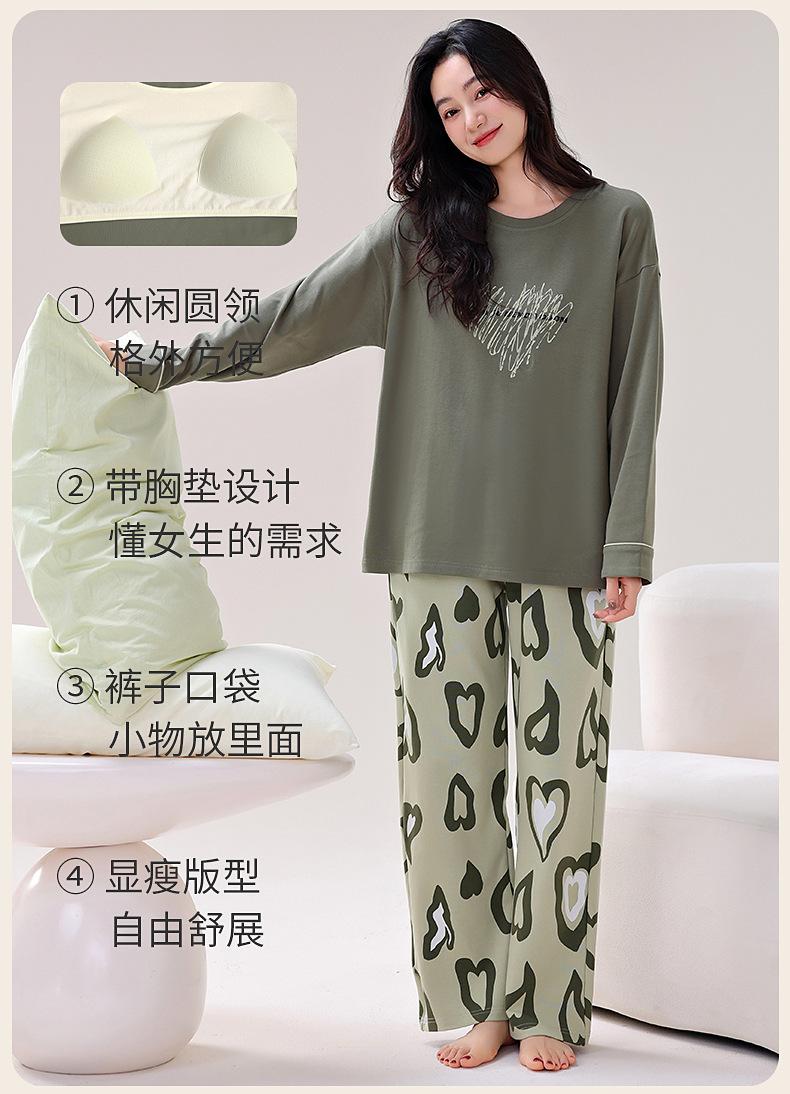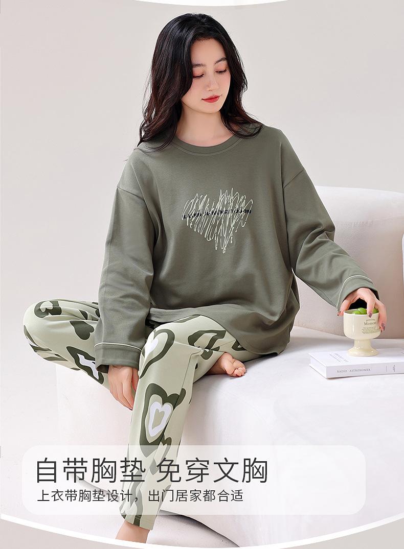 Pijamas de Primavera y Otoño para Mujer Algodón Puro para Dama Manga Larga Fino Estilo Nuevo 2025 con Copas Finas Integradas Conjunto para Estar en Casa