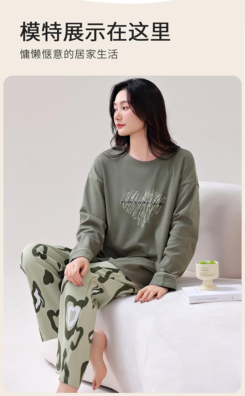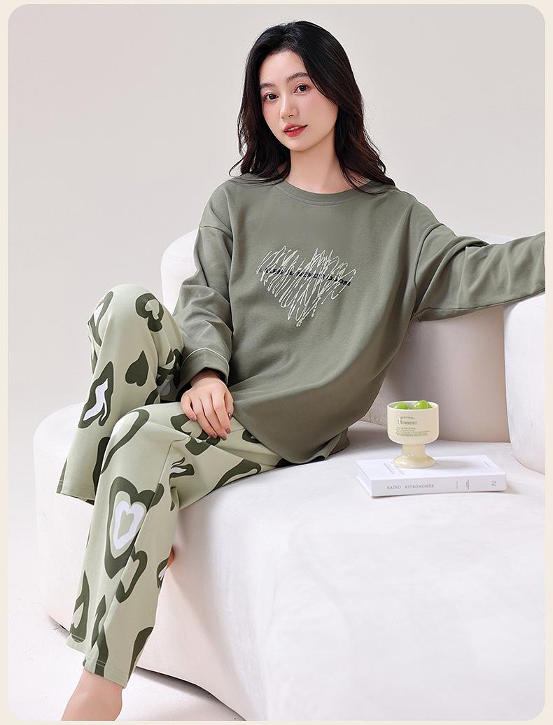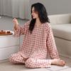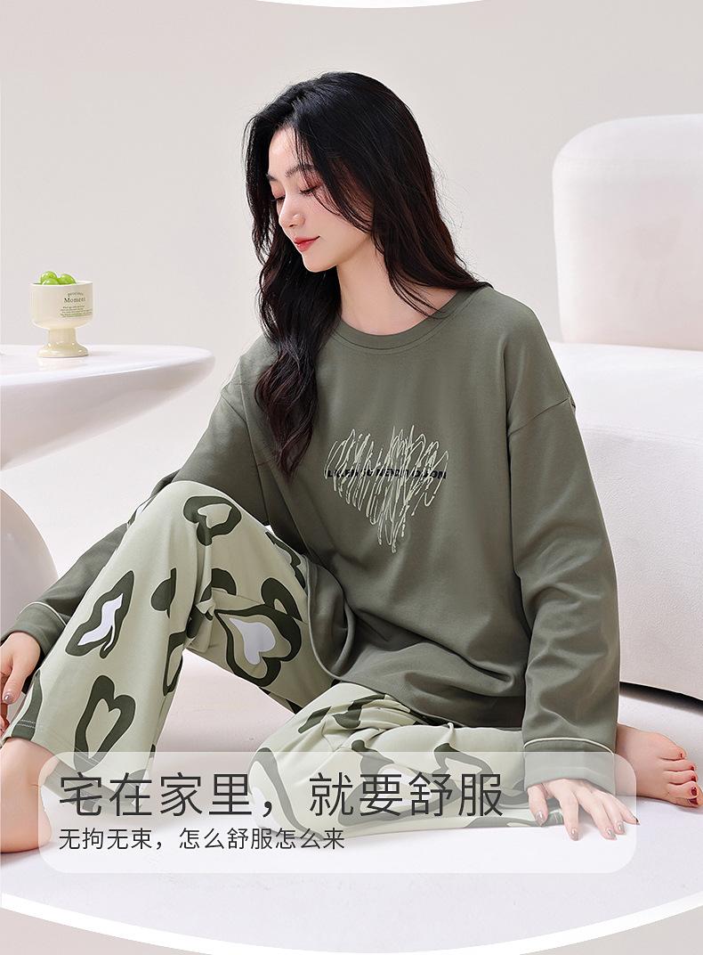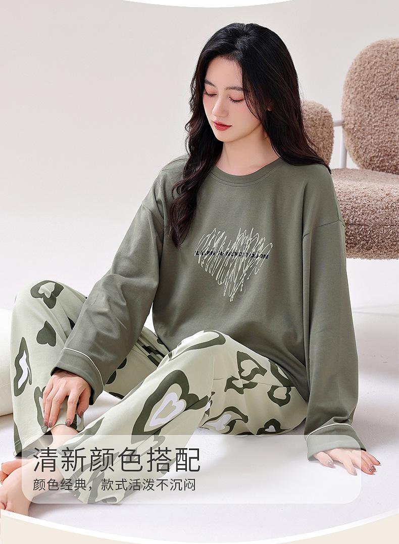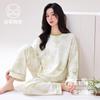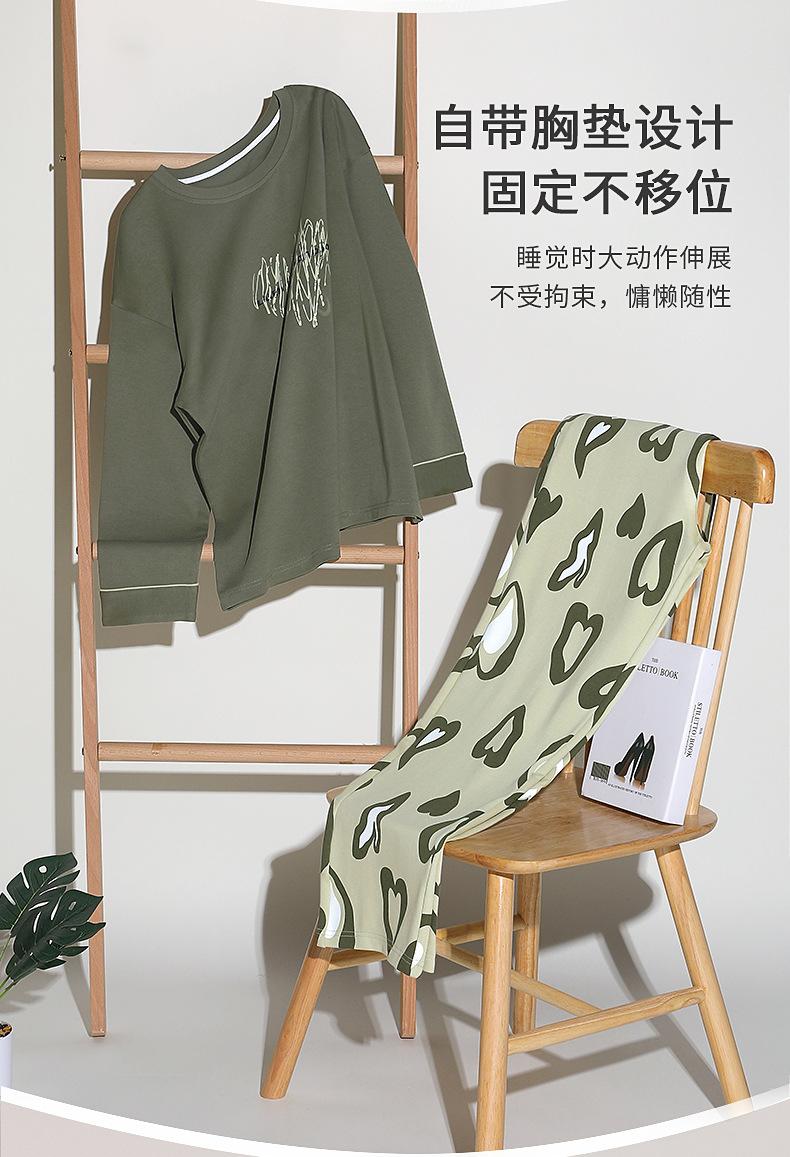 Pijamas de Primavera y Otoño para Mujer Algodón Puro para Dama Manga Larga Fino Estilo Nuevo 2025 con Copas Finas Integradas Conjunto para Estar en Casa