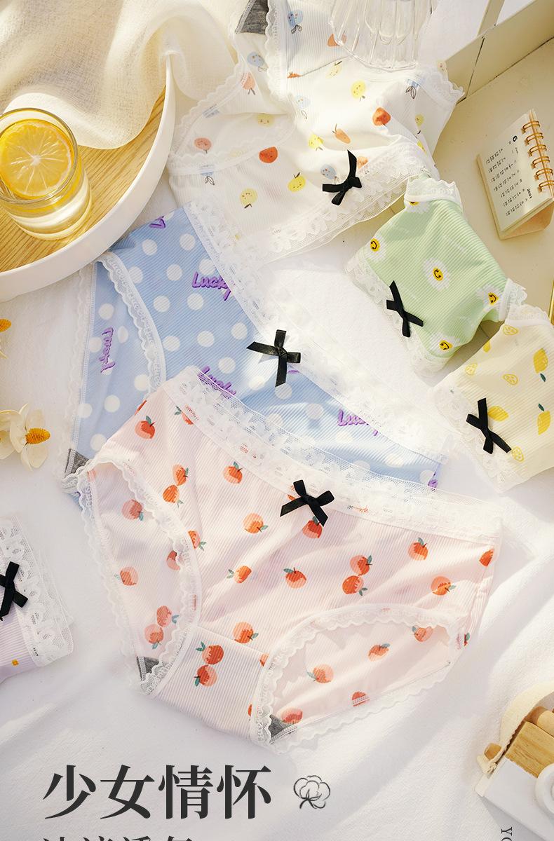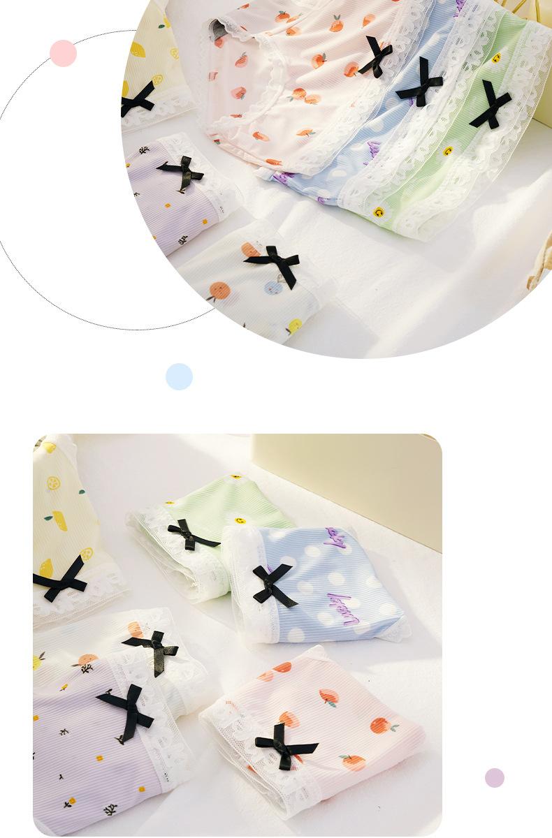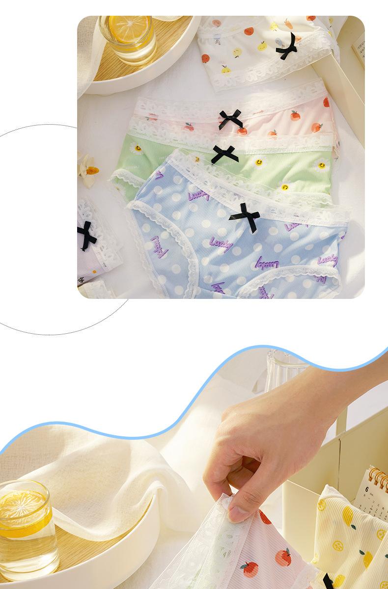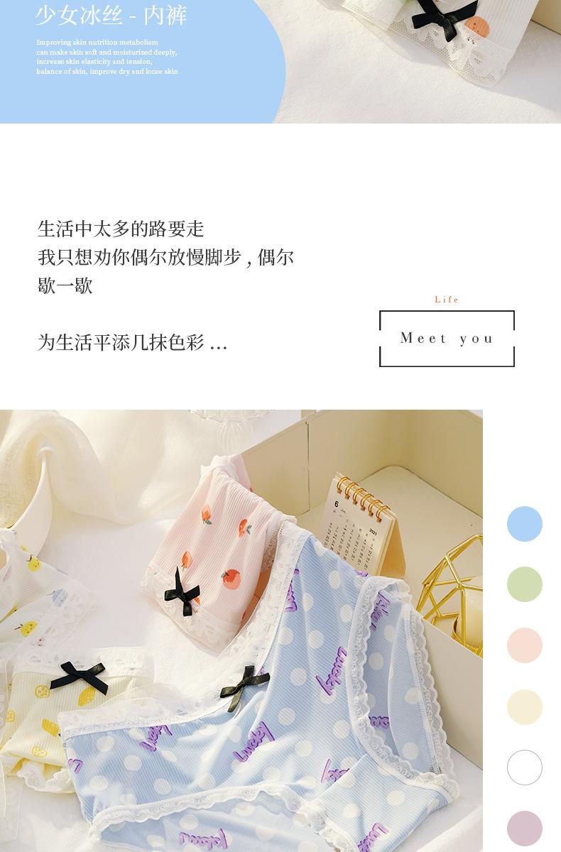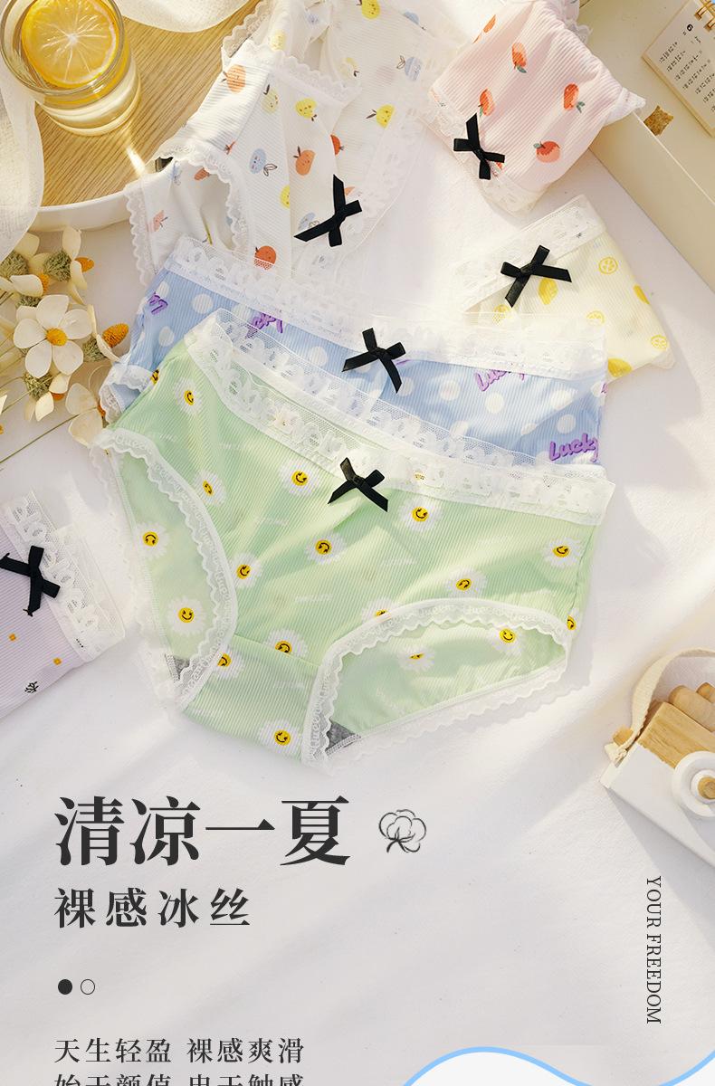Ropa Interior de Seda de Hielo para Estudiantes Graphene Entrepierna Antibacteriana Estampado Estilo Japonés Encaje Lindo Cintura Media Transpirable Calzoncillos para Niñas