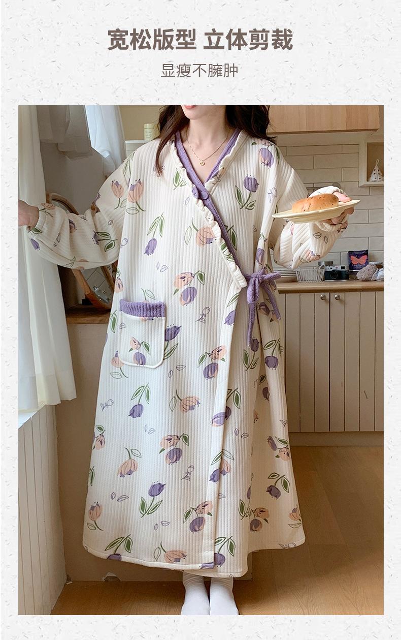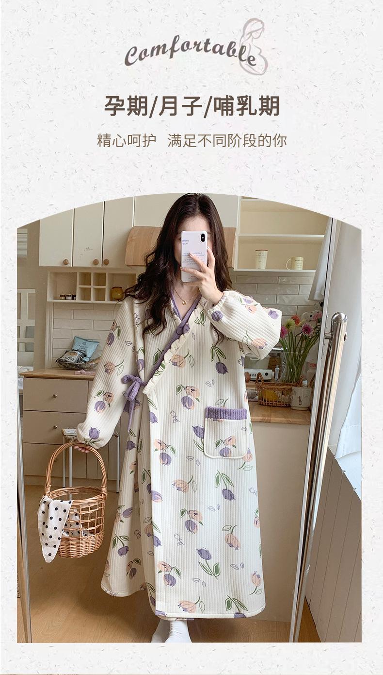 Happy Moon Venta al por Mayor Otoño e Invierno Dulce Encaje con Cordones Algodón Aire Vestido de Maternidad Mujeres Embarazadas Postparto Lactancia Hogar Vestido Largo