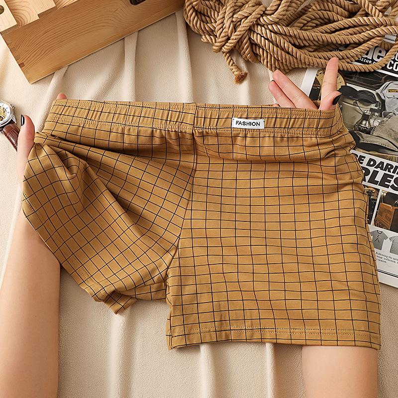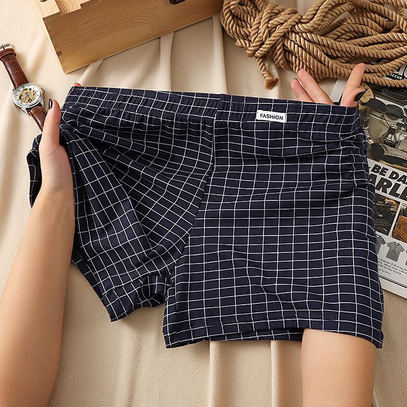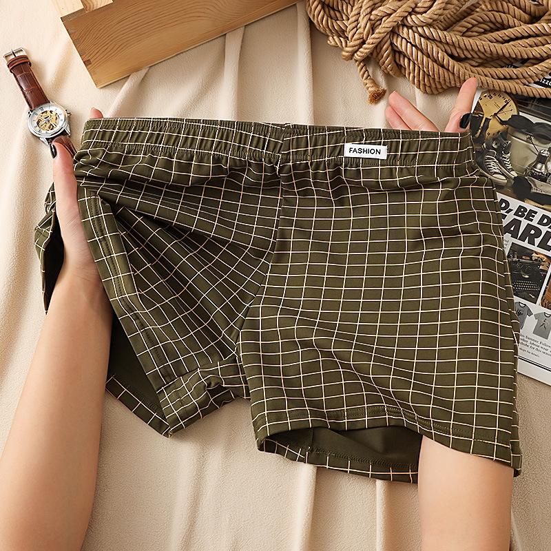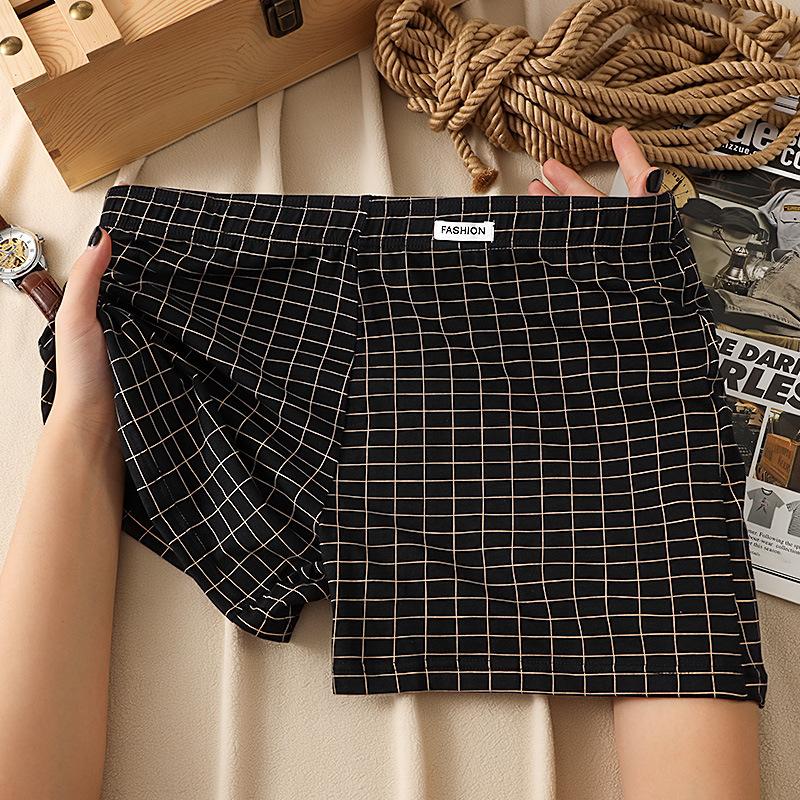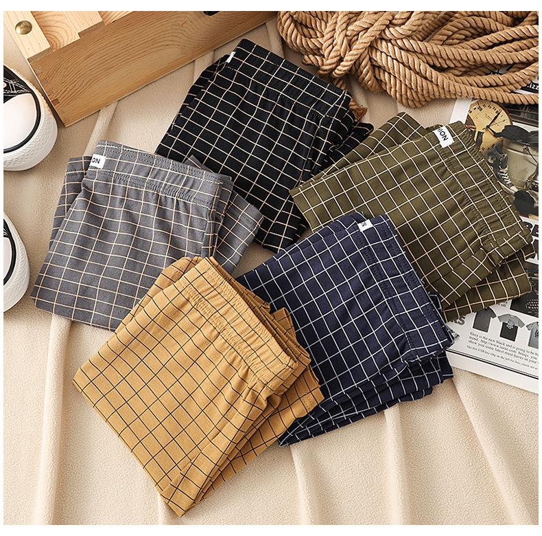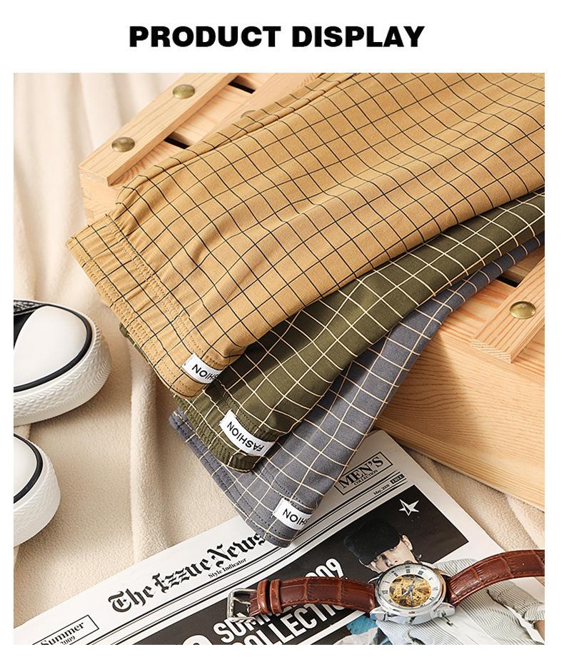 Pantalones Aro de Verano para Hombre Calzoncillos Bóxer Transpirables de Algodón Puro para Hombre Talla Grande Sueltos Calzoncillos de Cuatro Esquinas a Cuadros para Hombre