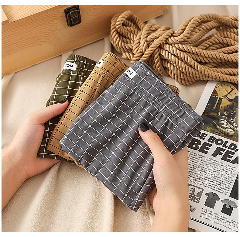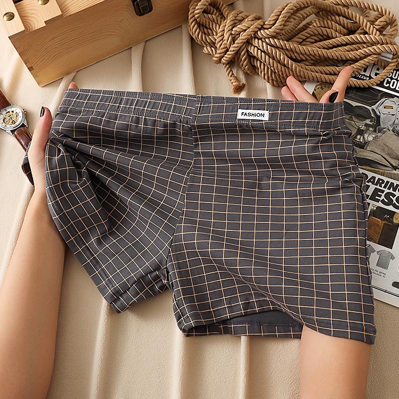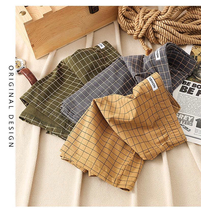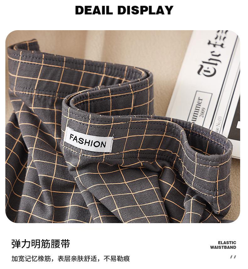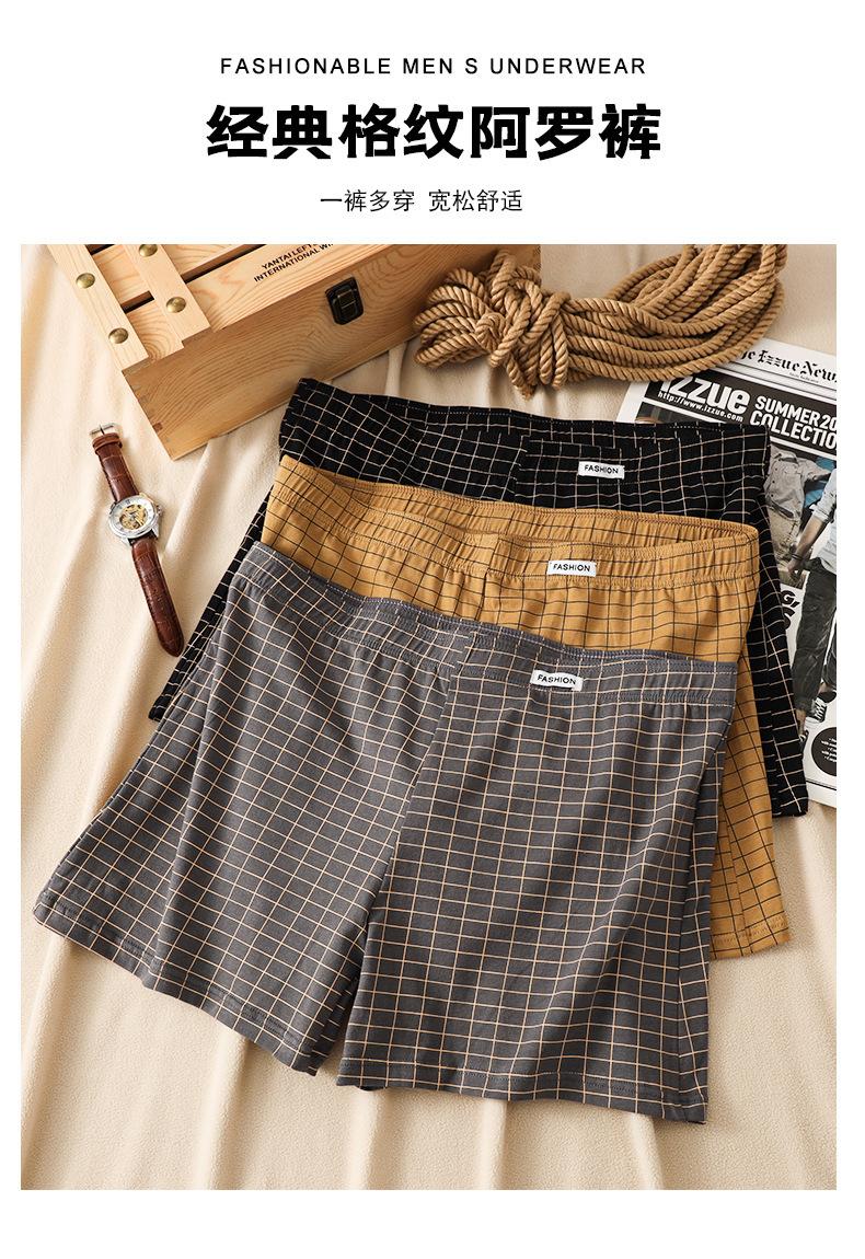 Pantalones Aro de Verano para Hombre Calzoncillos Bóxer Transpirables de Algodón Puro para Hombre Talla Grande Sueltos Calzoncillos de Cuatro Esquinas a Cuadros para Hombre