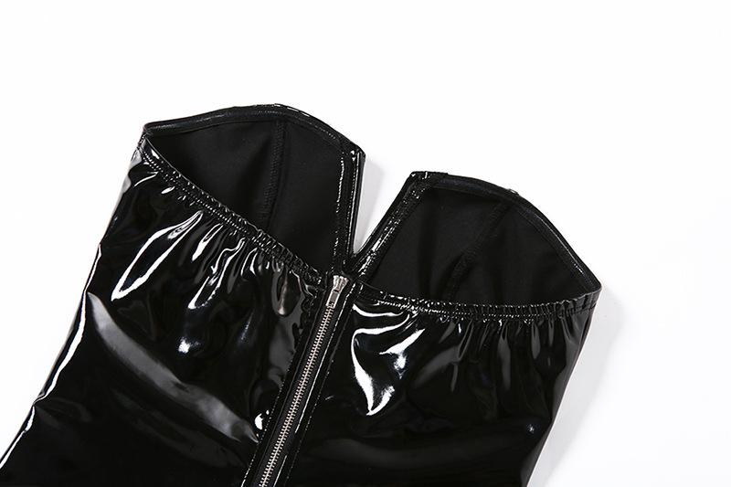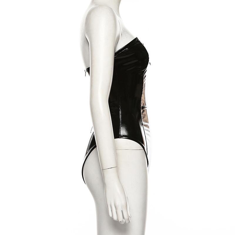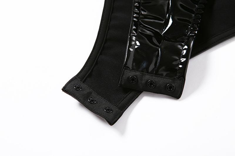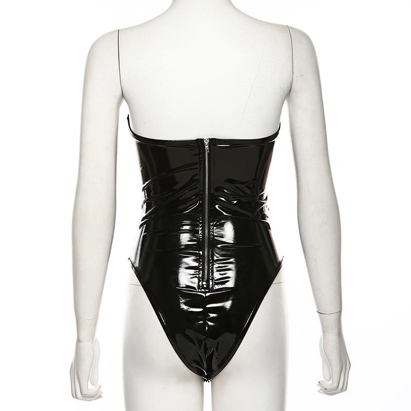 Lencería Sexy Estilo Europeo 2021 Otoño e Invierno Nueva Ropa de Mujer Creativo Sin Espalda Sexy Adelgazante PU Body de Mujer de Una Pieza