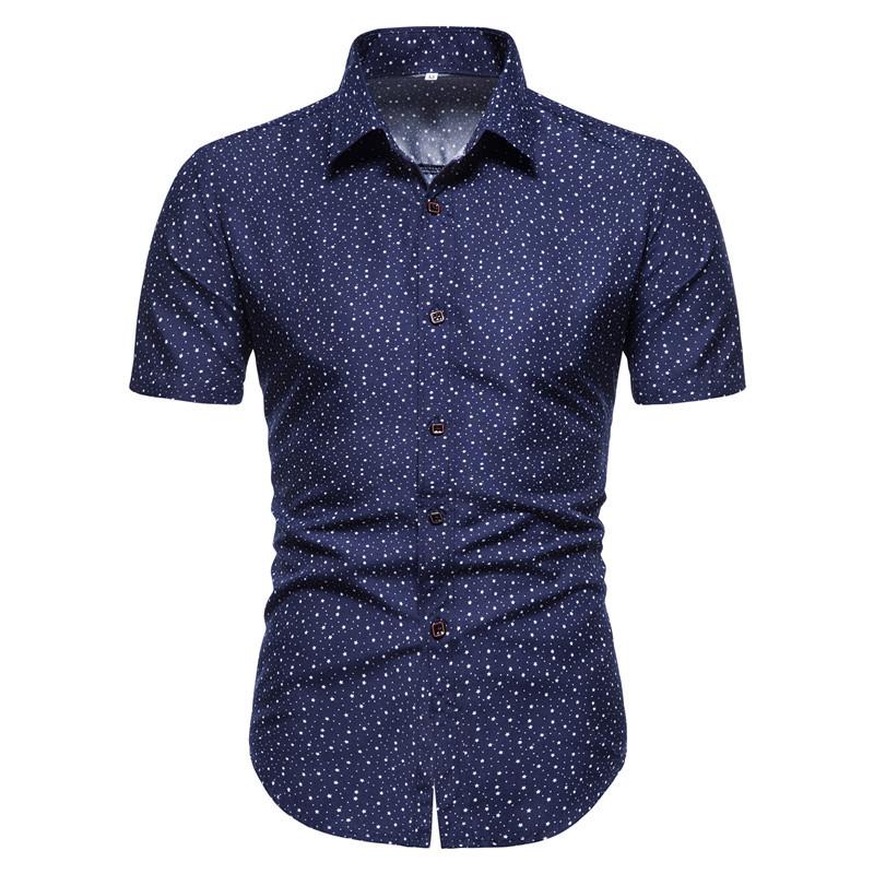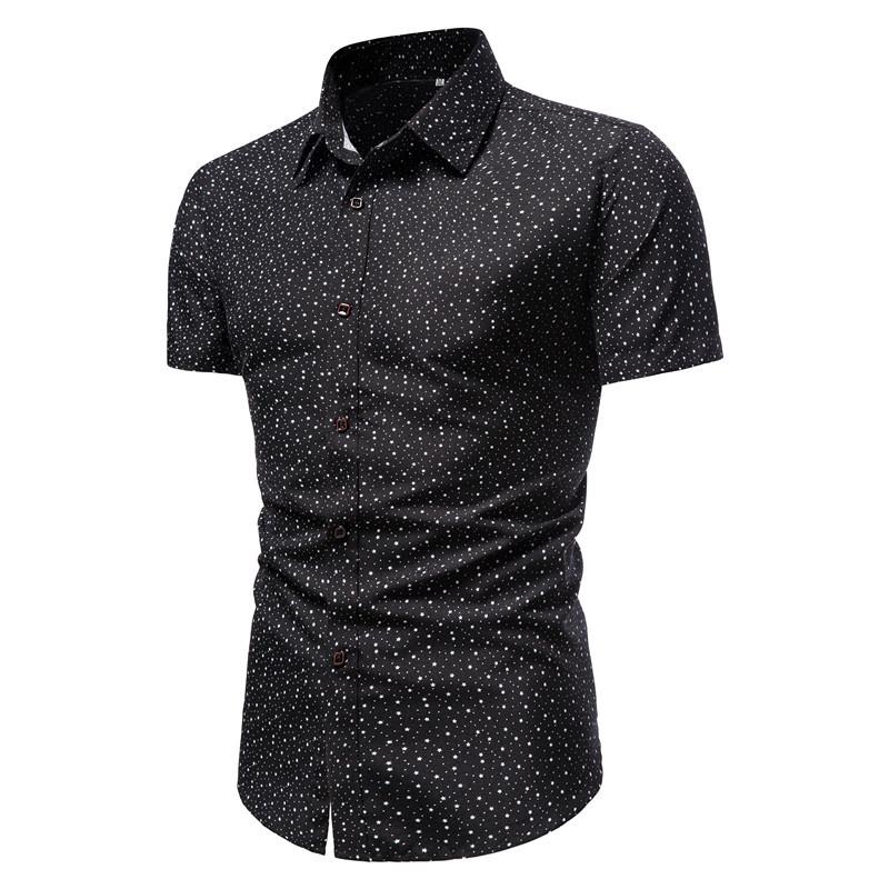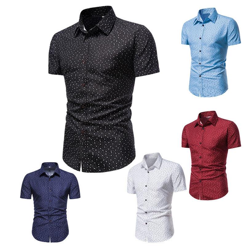 Amazon comercio exterior nueva camisa de hombre marca de moda holgada estampada solapa manga corta camisa hombre