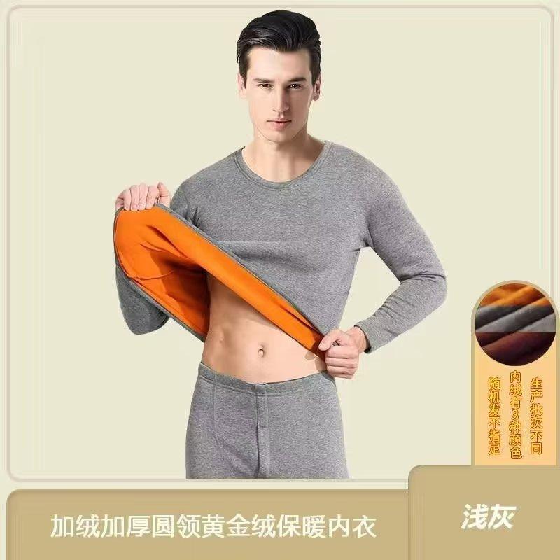 Ropa interior térmica para hombre de terciopelo grueso a prueba de frío para jóvenes, terciopelo dorado de talla grande, ropa de otoño, traje de pantalones de otoño, camisa básica de invierno