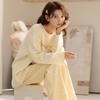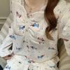 Pijama de Algodón Puro de Manga Larga y Pantalón Largo de Estilo Nuevo Otoño/Invierno 2025 para Mujer, Dulce Dibujo Animado, Ropa de Hogar Confortable y Casual