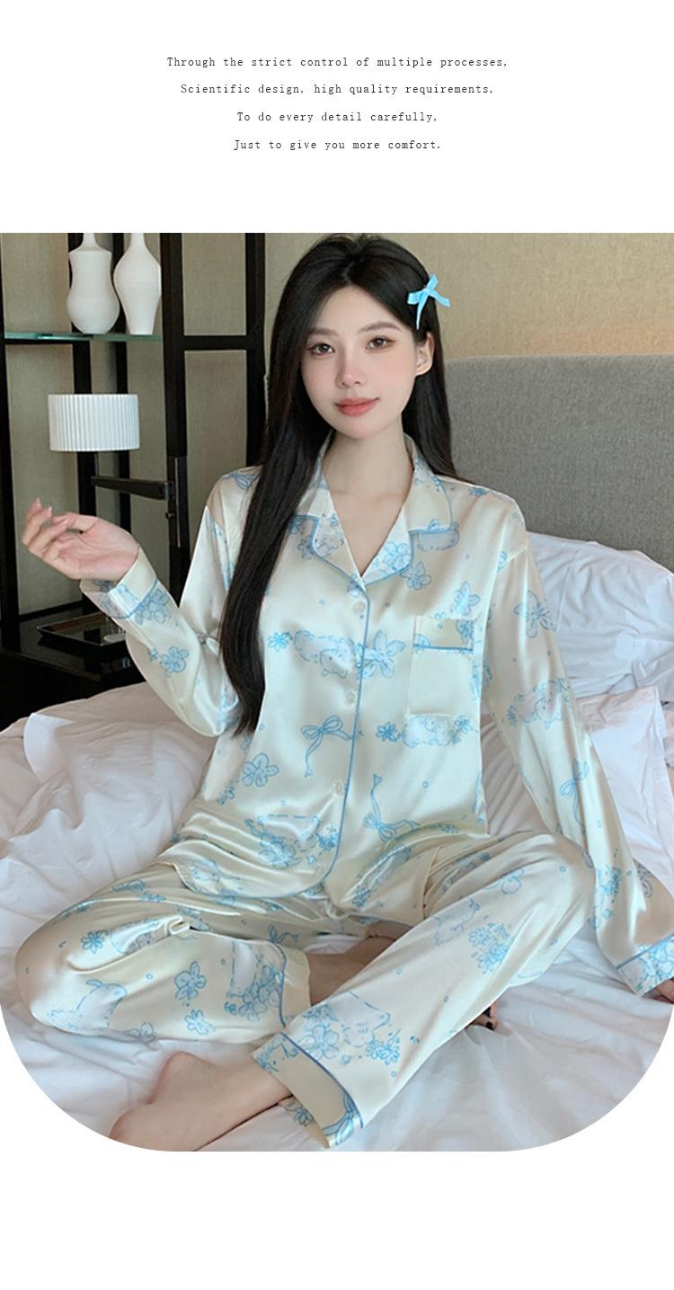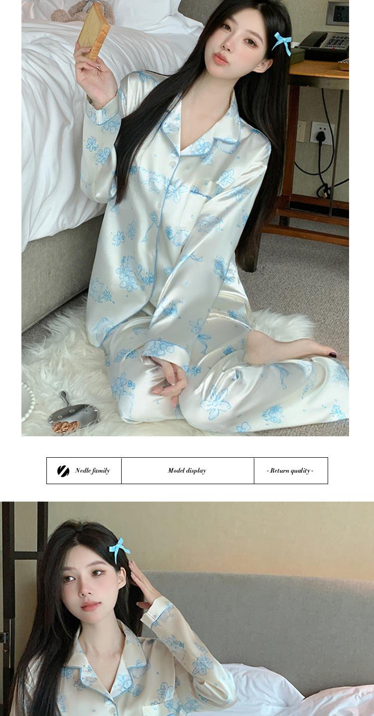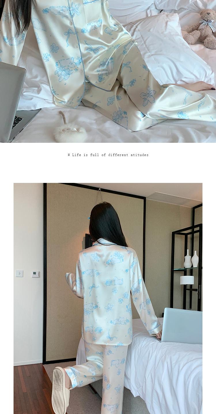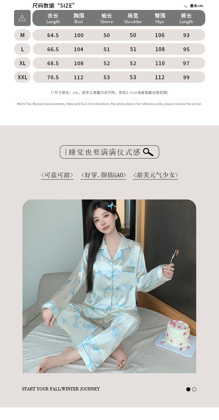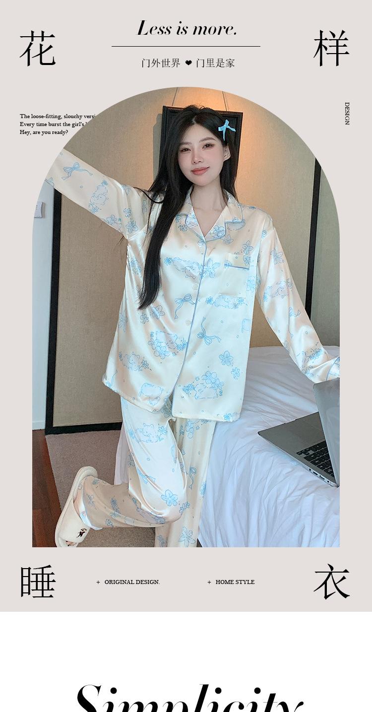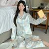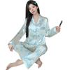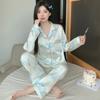 Pijama de seda de hielo fresco estilo ins coreano de lujo ligero para mujer, conjunto de dos piezas de manga larga y pantalón largo fino para primavera y otoño, ropa de casa al por mayor