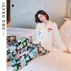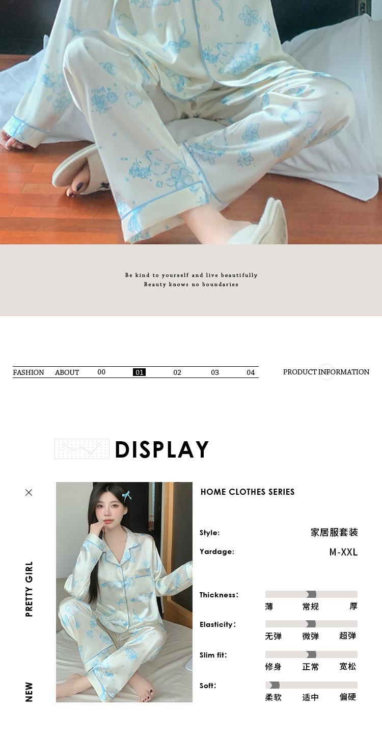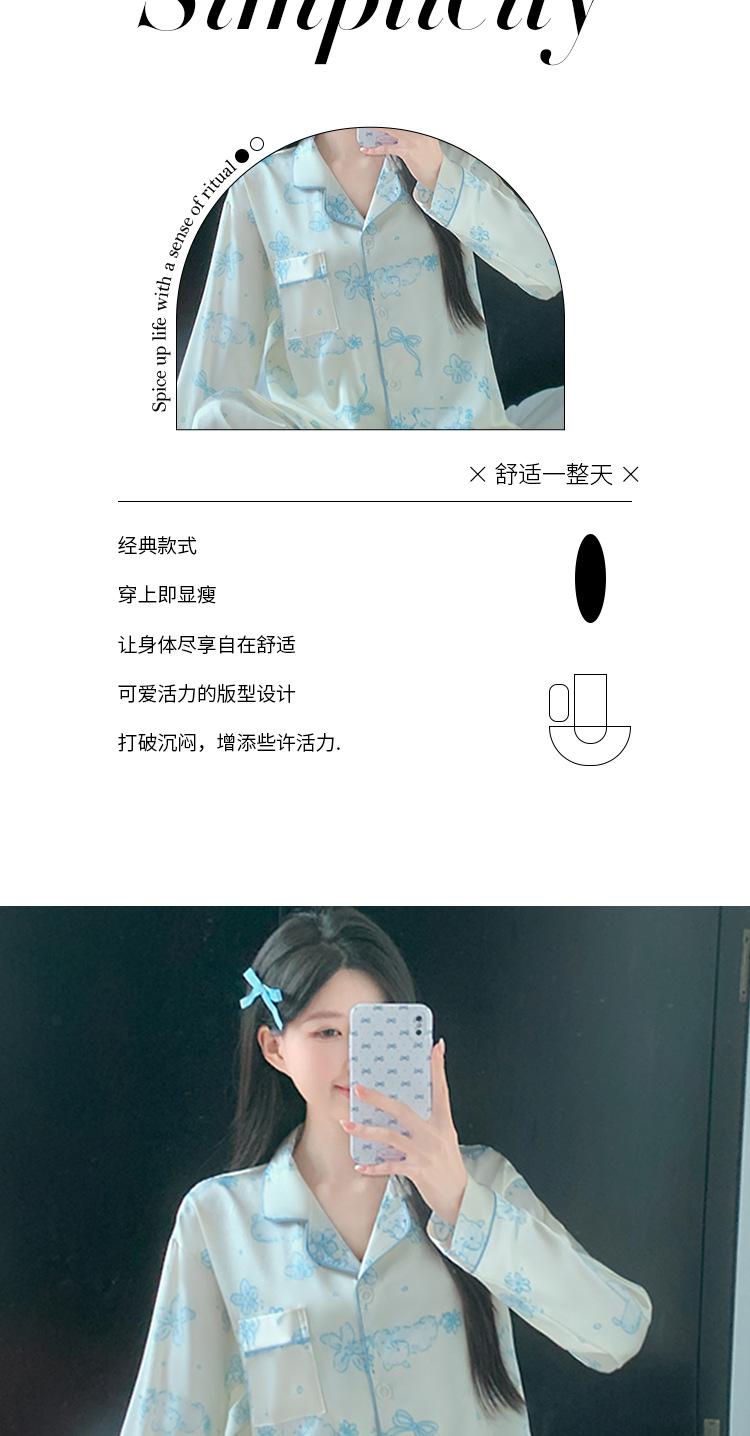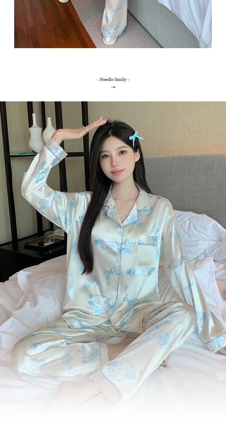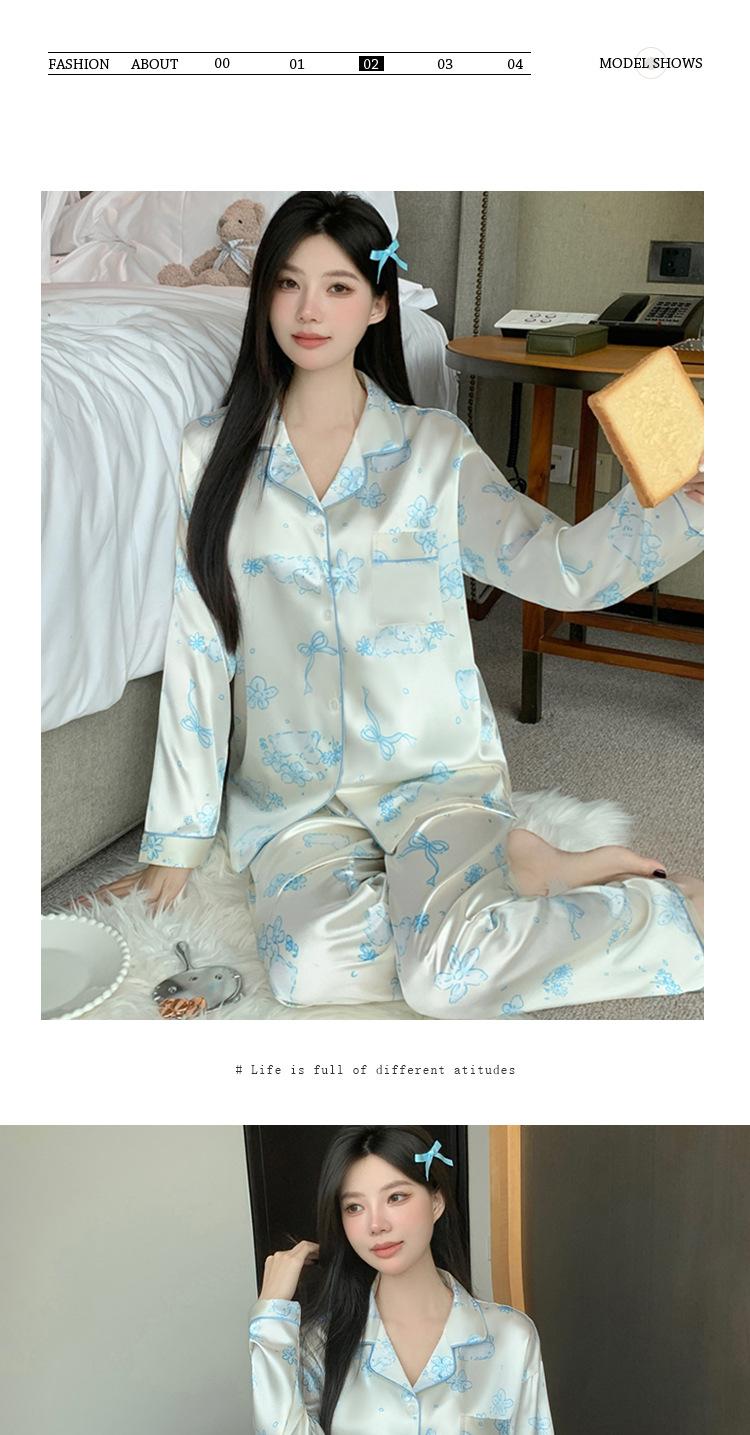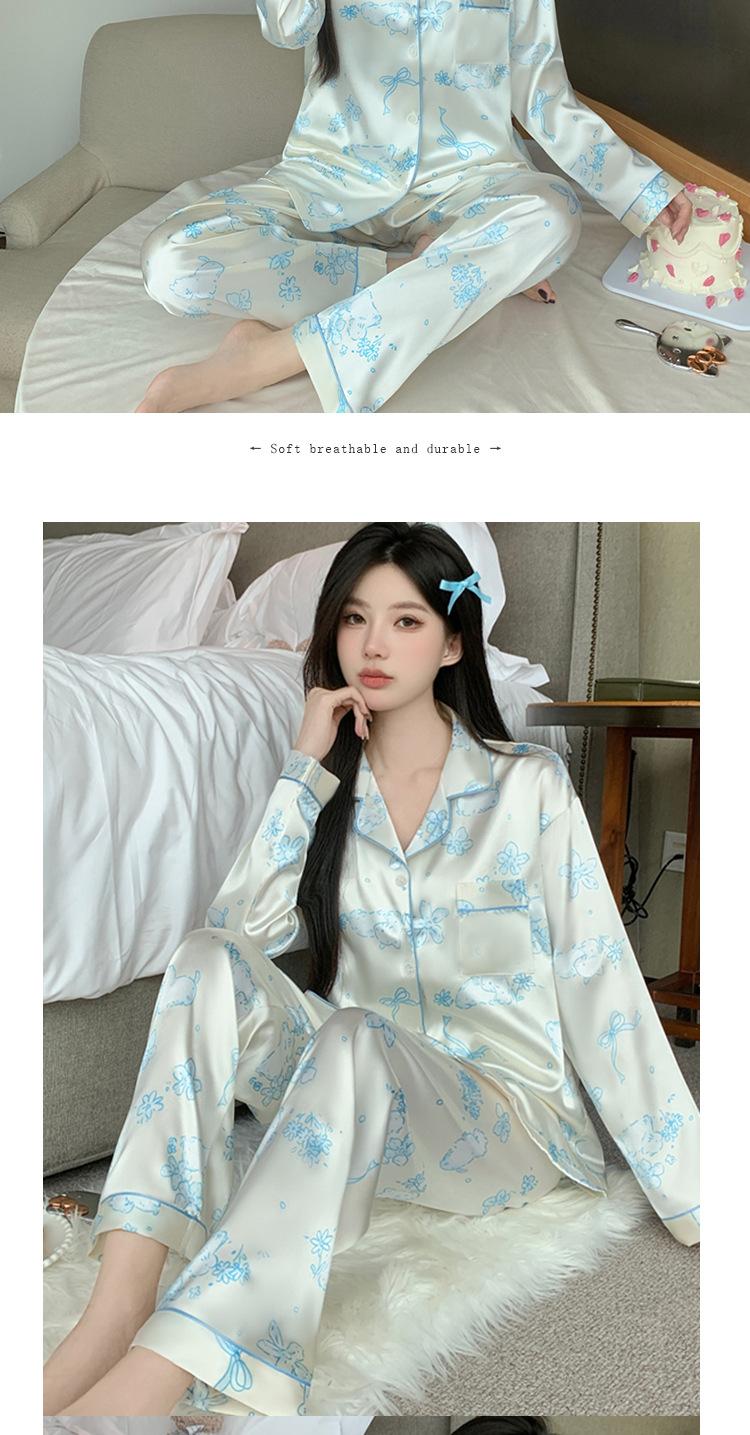 Pijama de seda de hielo fresco estilo ins coreano de lujo ligero para mujer, conjunto de dos piezas de manga larga y pantalón largo fino para primavera y otoño, ropa de casa al por mayor