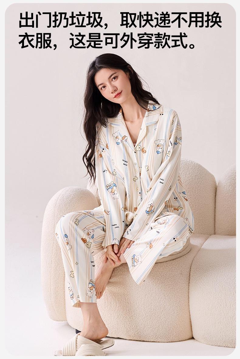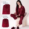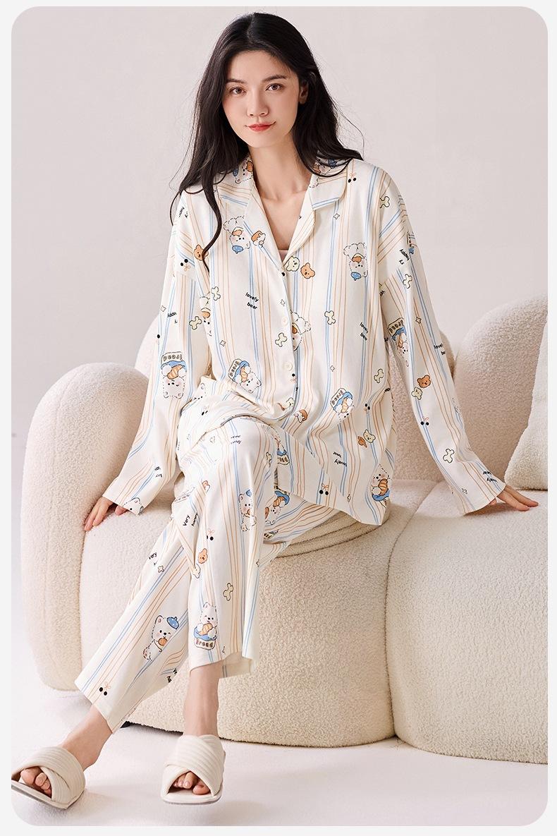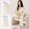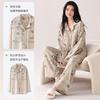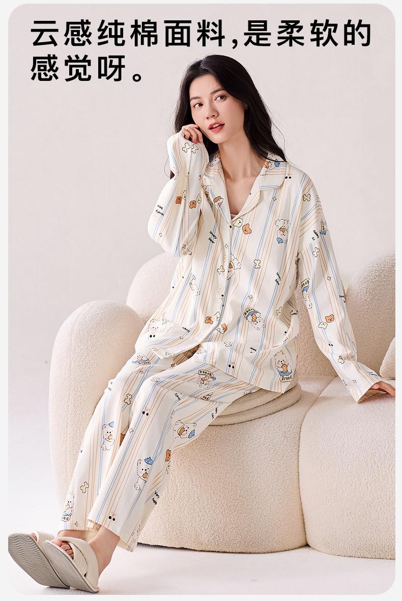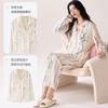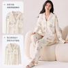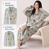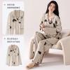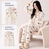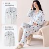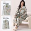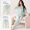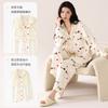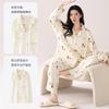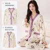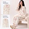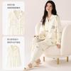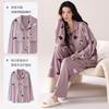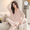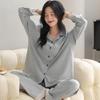 Color sólido al por mayor en stock con almohadilla en el pecho pijama de algodón puro primavera y otoño manga larga pantalón largo cárdigan conjunto de dos piezas ropa de casa todo algodón