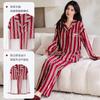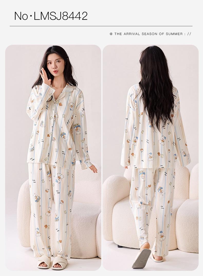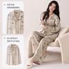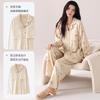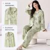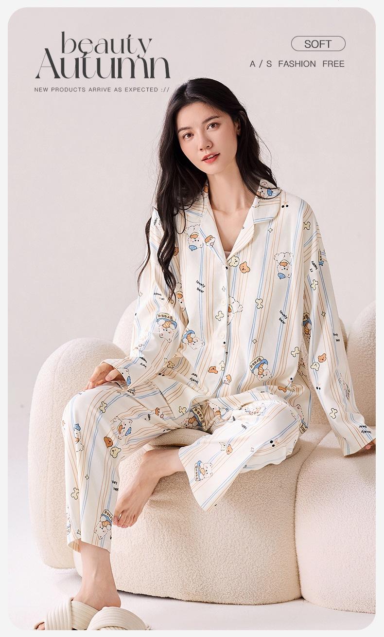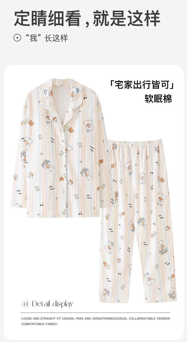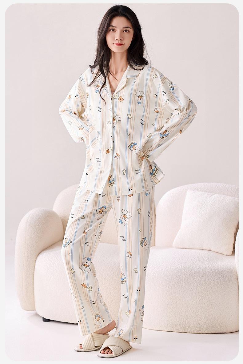 Color sólido al por mayor en stock con almohadilla en el pecho pijama de algodón puro primavera y otoño manga larga pantalón largo cárdigan conjunto de dos piezas ropa de casa todo algodón