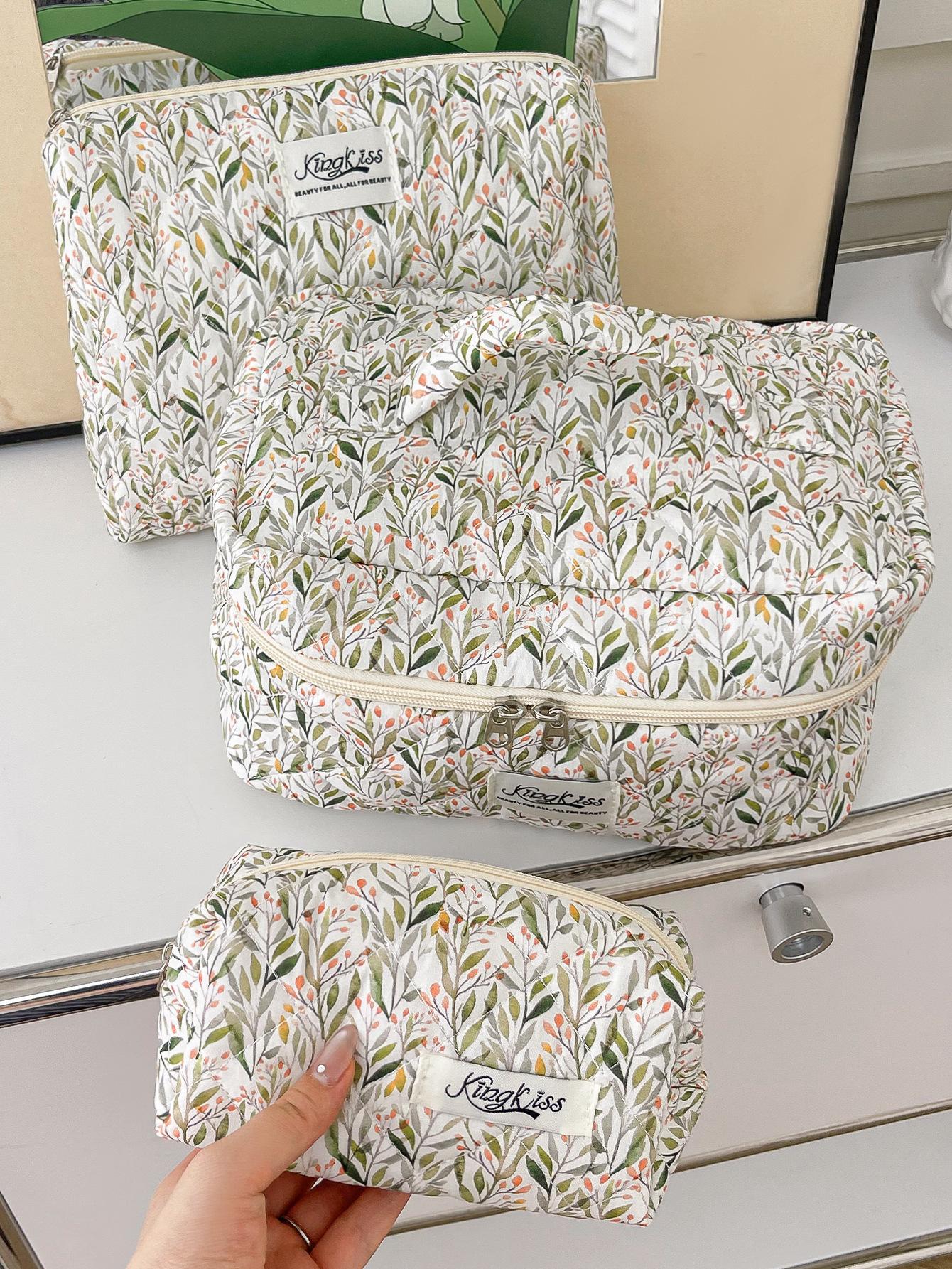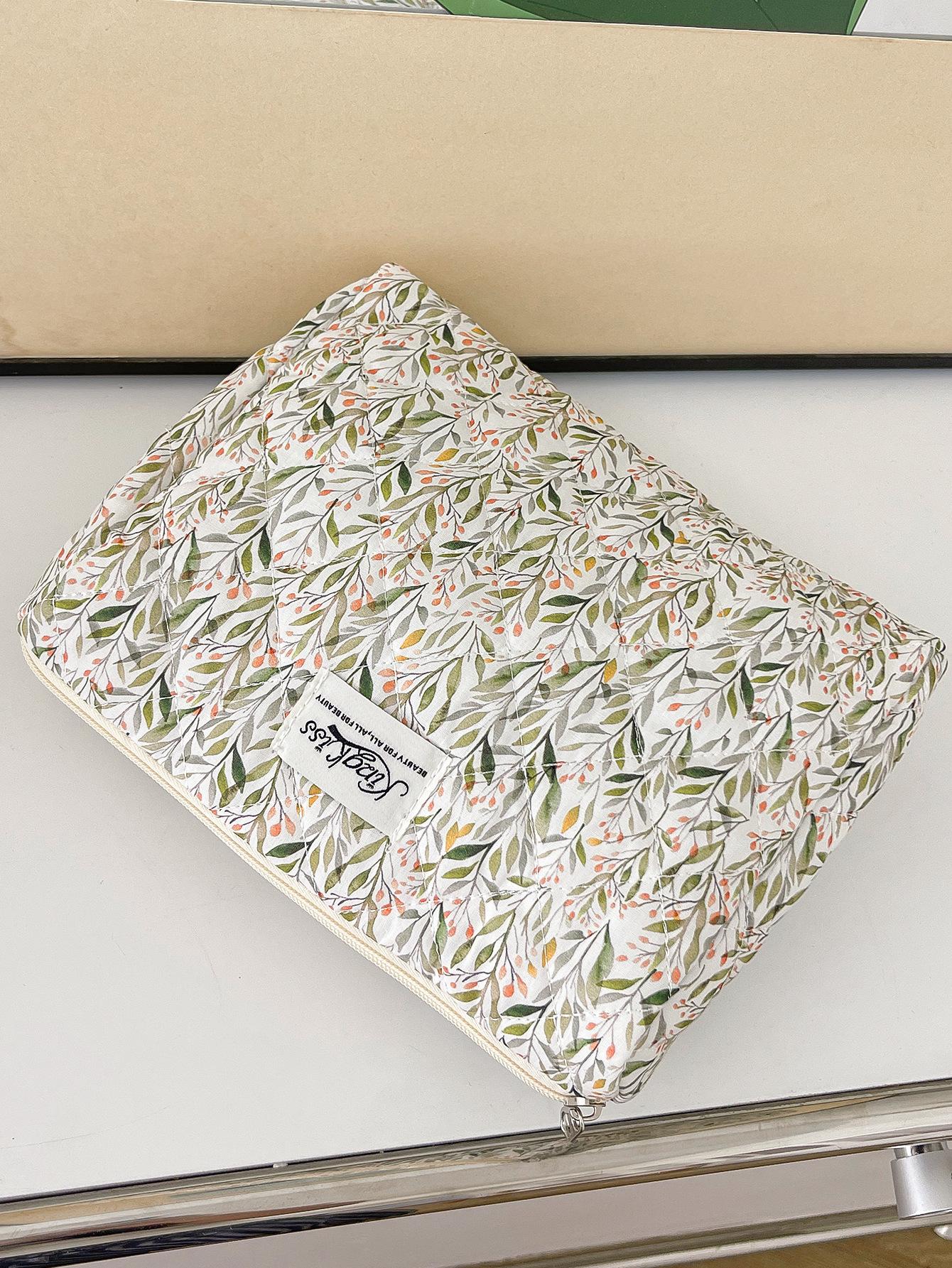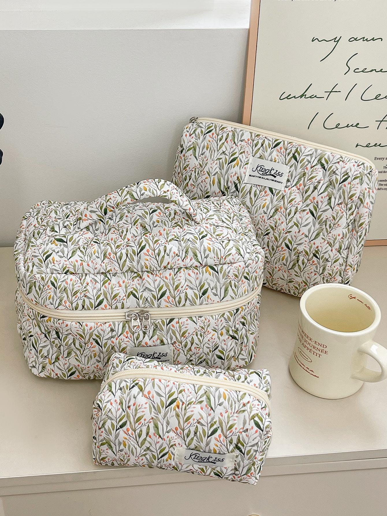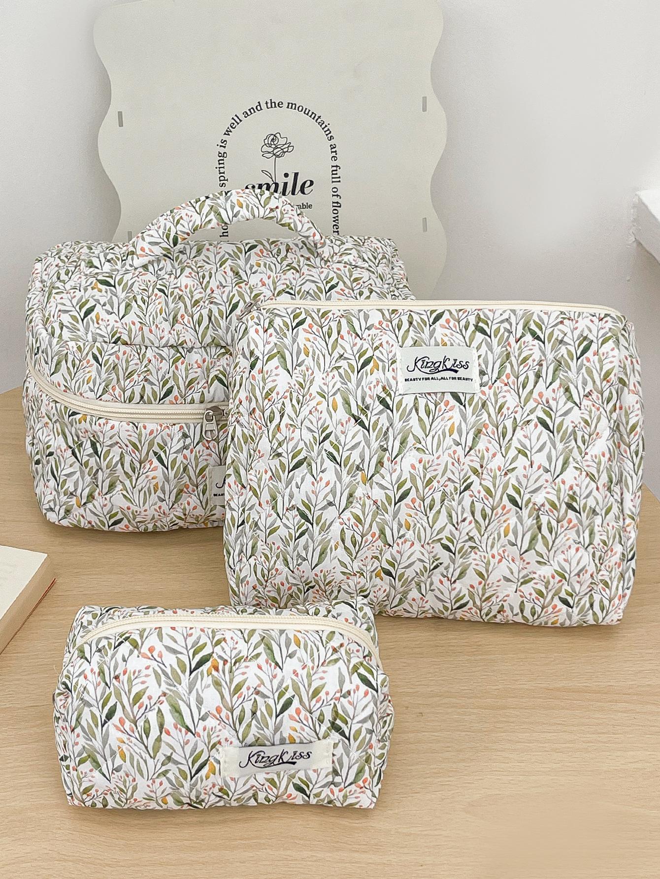 Nueva Bolsa de Maquillaje Portátil Transfronteriza de Gran Capacidad Multifuncional Bolsa de Almacenamiento Verde Estilo Hierba Pequeña ins Bolsa de Aseo