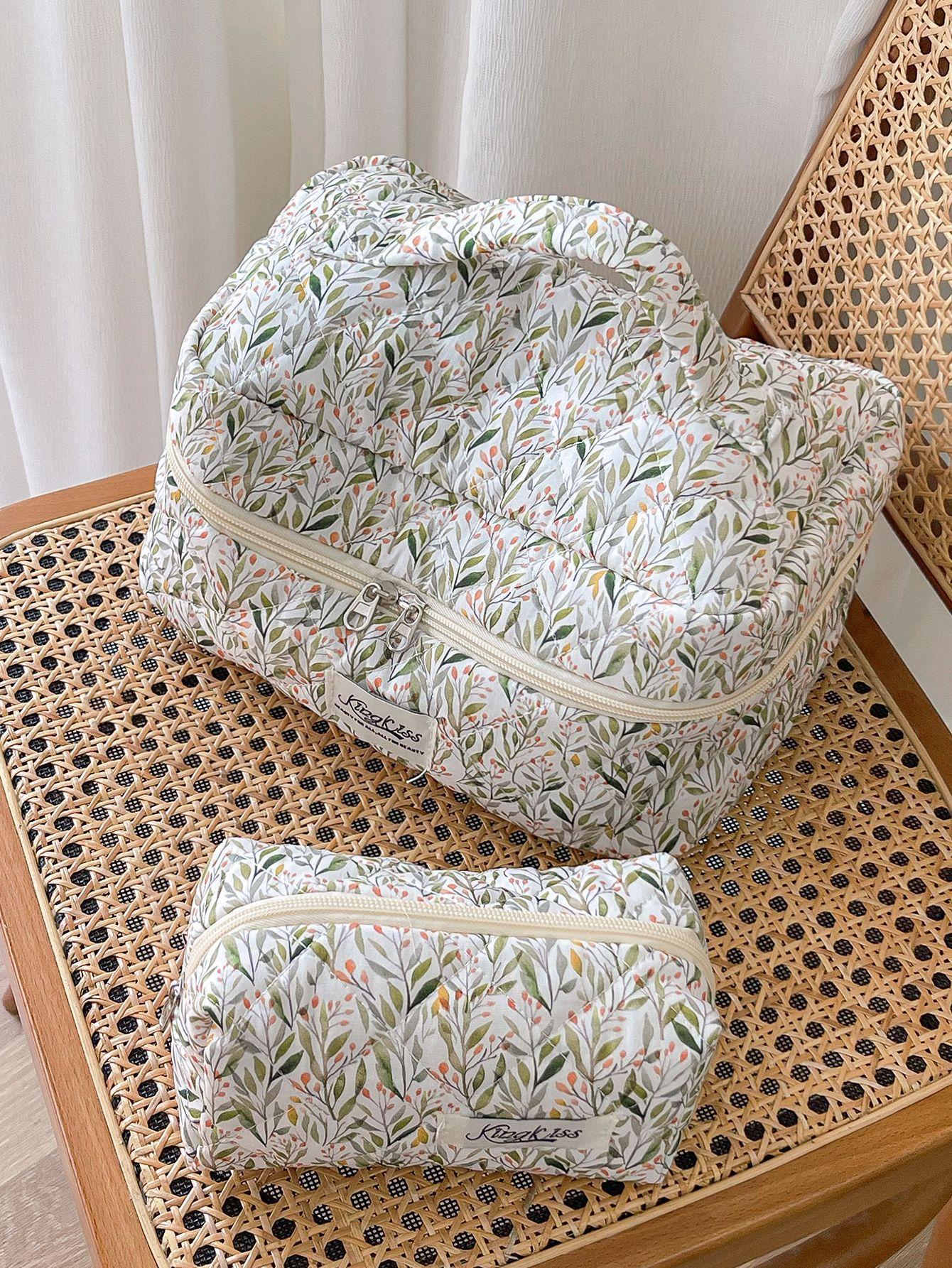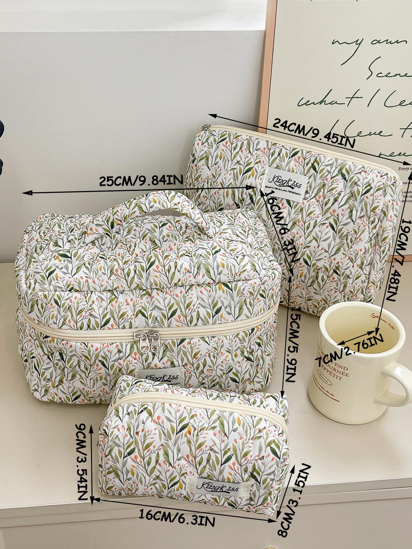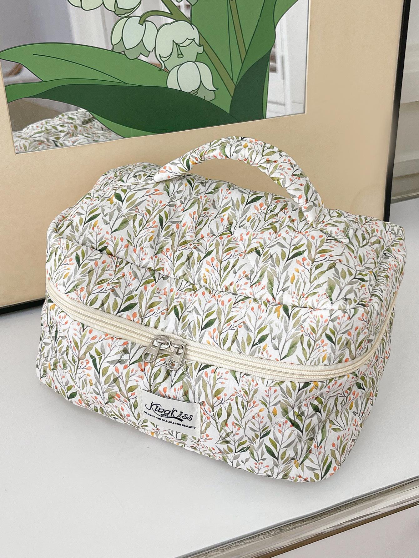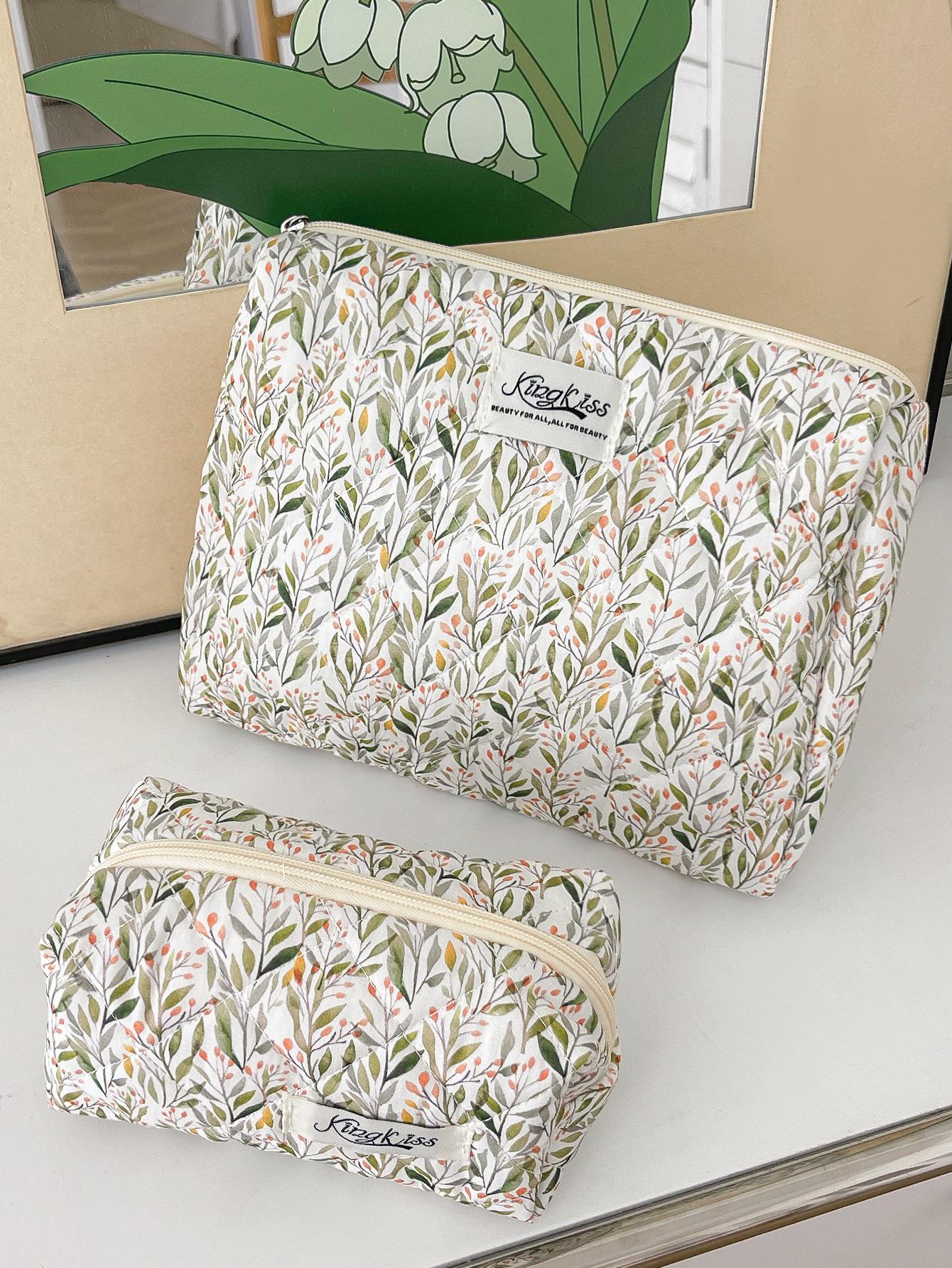 Nueva Bolsa de Maquillaje Portátil Transfronteriza de Gran Capacidad Multifuncional Bolsa de Almacenamiento Verde Estilo Hierba Pequeña ins Bolsa de Aseo