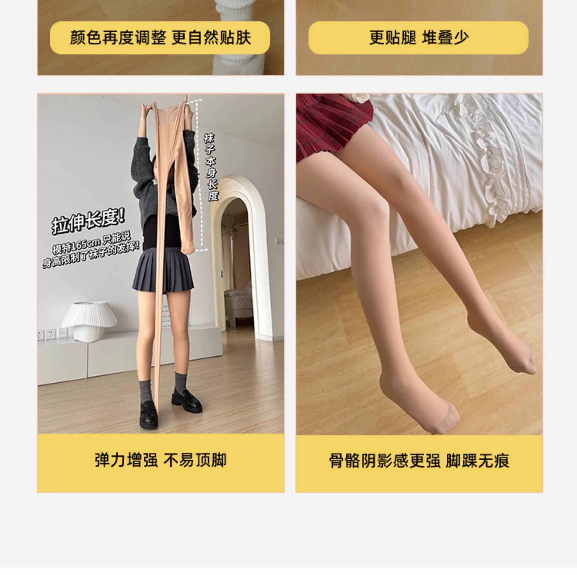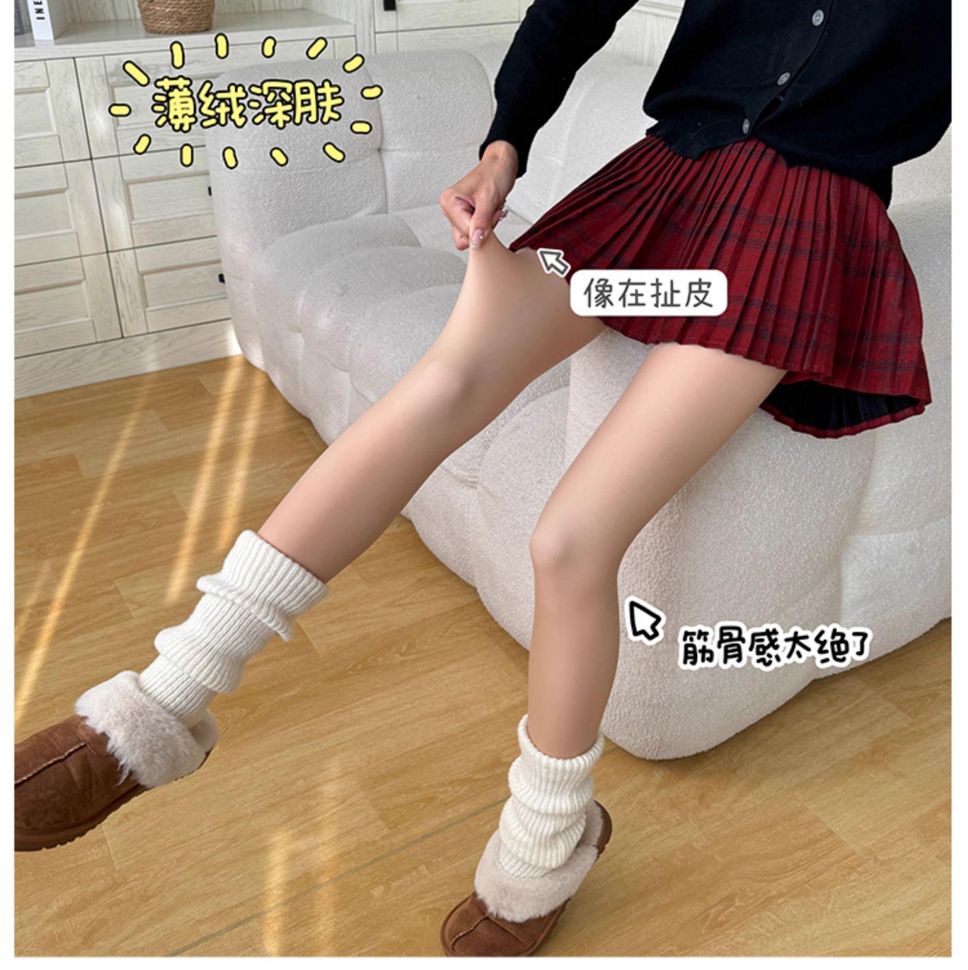 Artefacto de Pierna Desnuda de Doble Capa Otoño e Invierno Calcetines Gruesos Forrados de Lana para Mujer Leggings con Sensación Natural Nude Medias Panty de Tono Piel Removibles