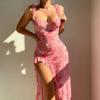 Europa y América 2025 Otoño Nuevo Caliente Vestido Floral con Abertura de Tirantes para Mujer Lencería Erótica Amazon Comercio Exterior