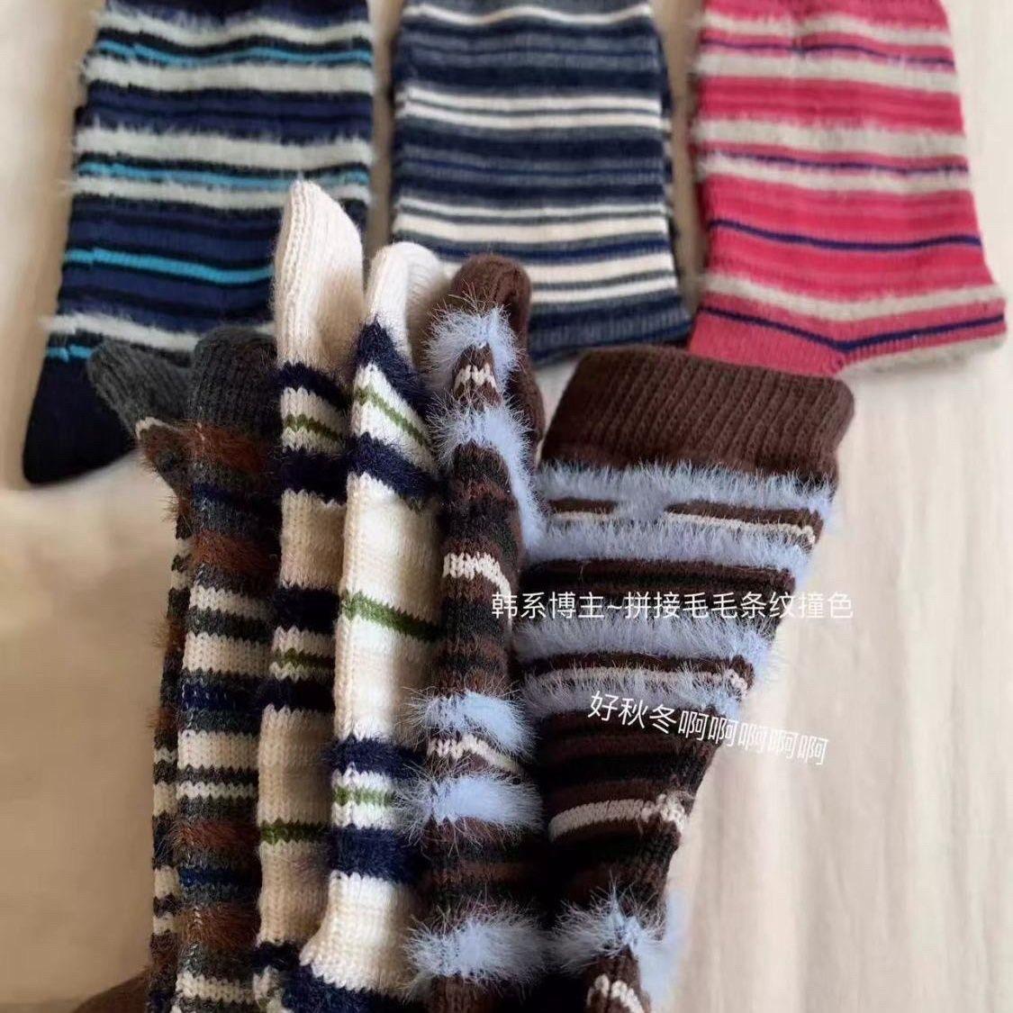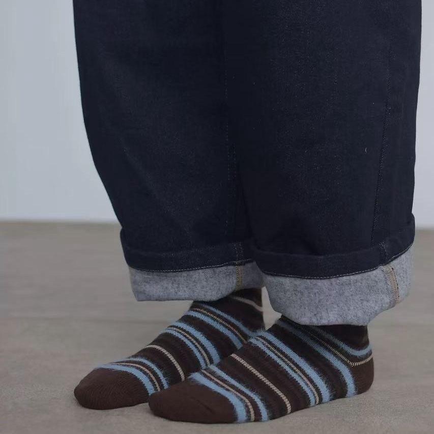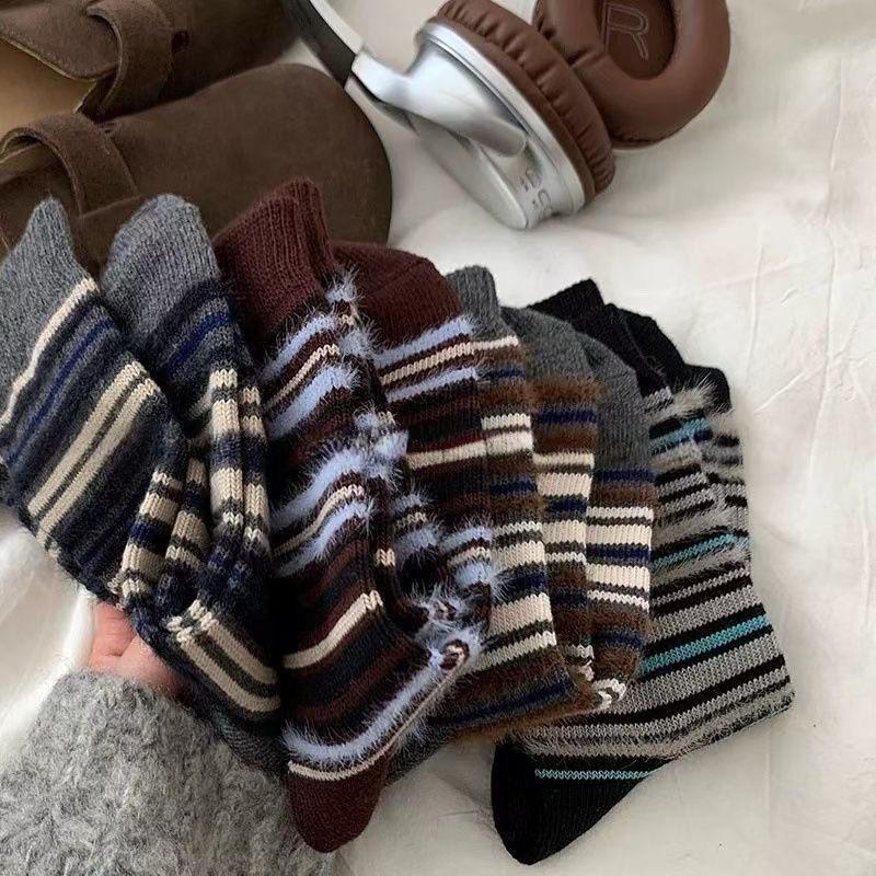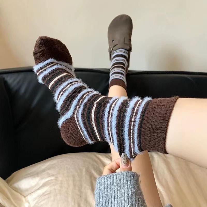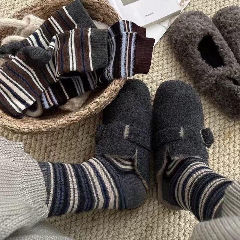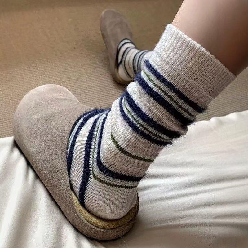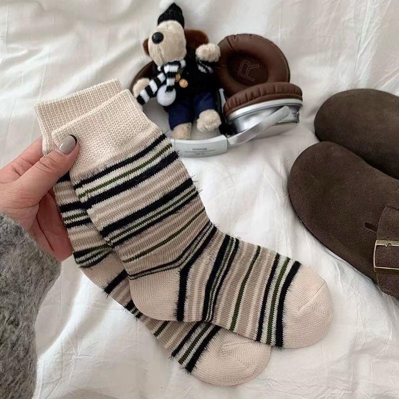 Compra Calcetines modernos retro versátiles de algodón hasta media pantorrilla para otoño e invierno, calcetines de moda japoneses a rayas con bloques de color, patchwork difuso a rayas al por mayor en Joom.pro