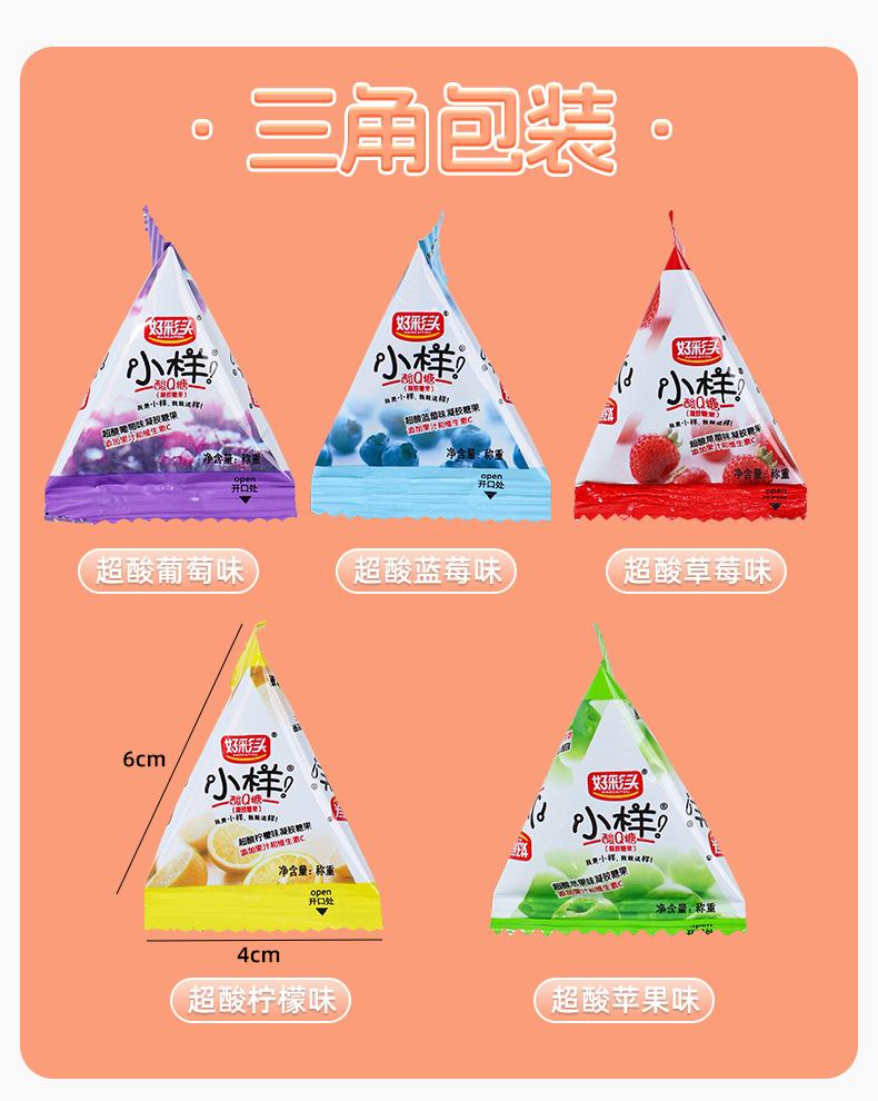 Buen color muestra pequeña agria q bolsa triangular de azúcar a granel regalo de boda dulces al por mayor dulces gomosos dulces para el día del niño bocadillos