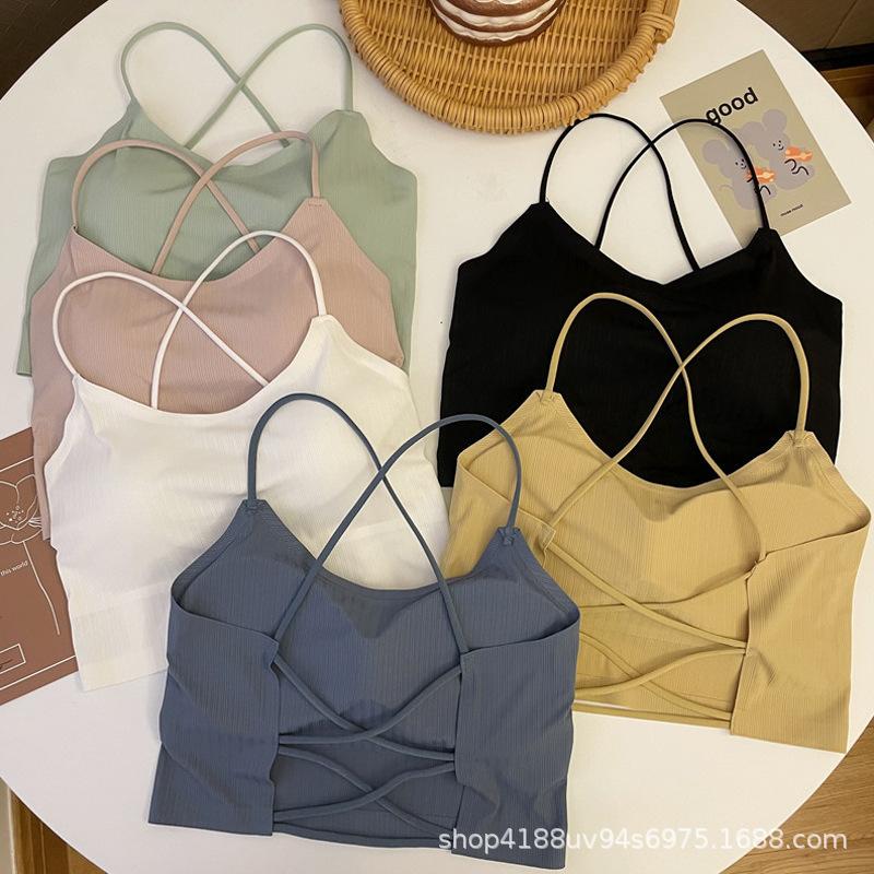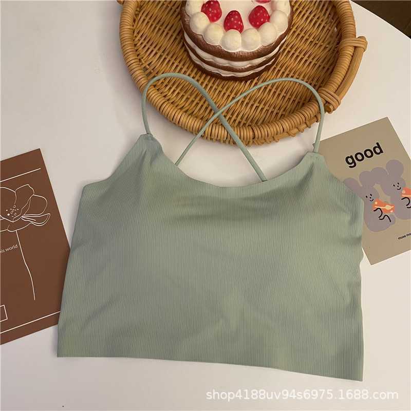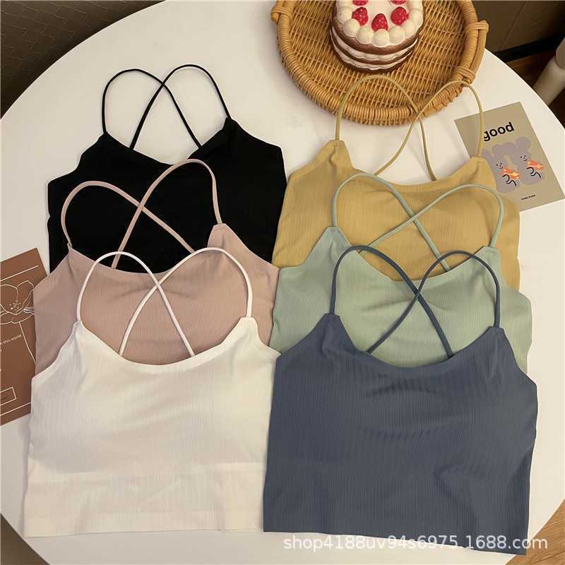 Top de tubo de seda de hielo sin costuras de verano con tirantes cruzados para usar debajo, anti-exposición, ropa interior con almohadillas para el busto, fino, transpirable, envoltura para el busto para mujer